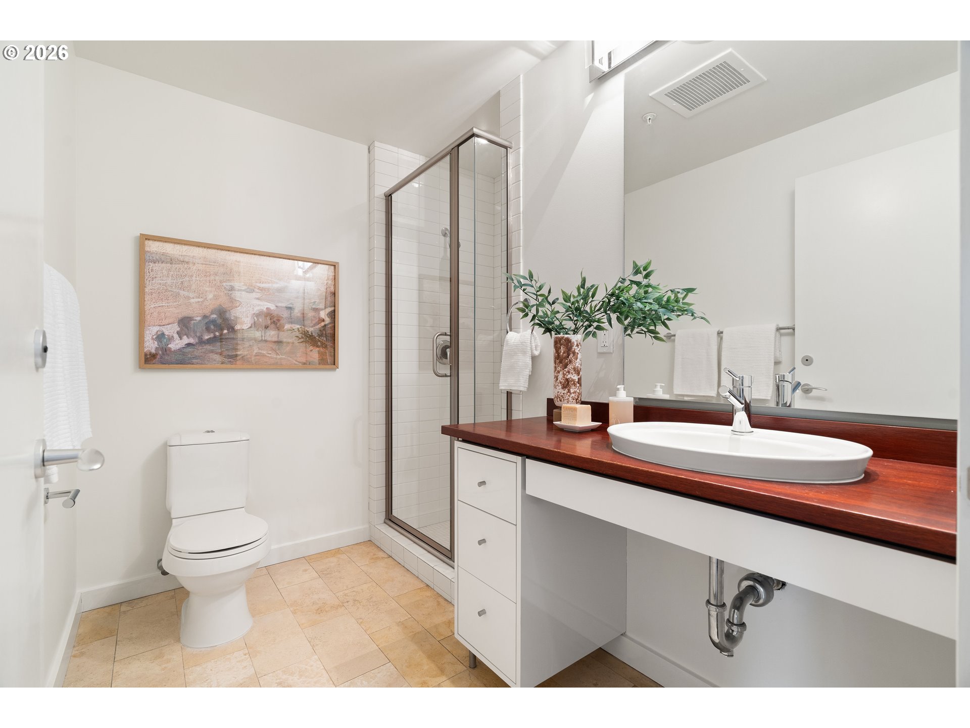 - Beautifully updated two bedroom with panoramic views, 2 parking & storage in the coveted Meriwether in South Waterfront. This lovely home features North to South views of the Willamette River, west hills, city, bridges, and Mt St Helens. Desirable floor plan features a large ensuite primary bedroom, spacious kitchen with pantry & covered balcony. Home has been upgraded & elevated with wood floors throughout & elegant crown moulding. Building amenities include 24/7 concierge, a rentable guest suite, private guest parking & kayak storage. Enjoy life in the beautiful South Waterfront along the river with parks, restaurants, shops, fitness studios, Greenway, OHSU, Streetcar & more.