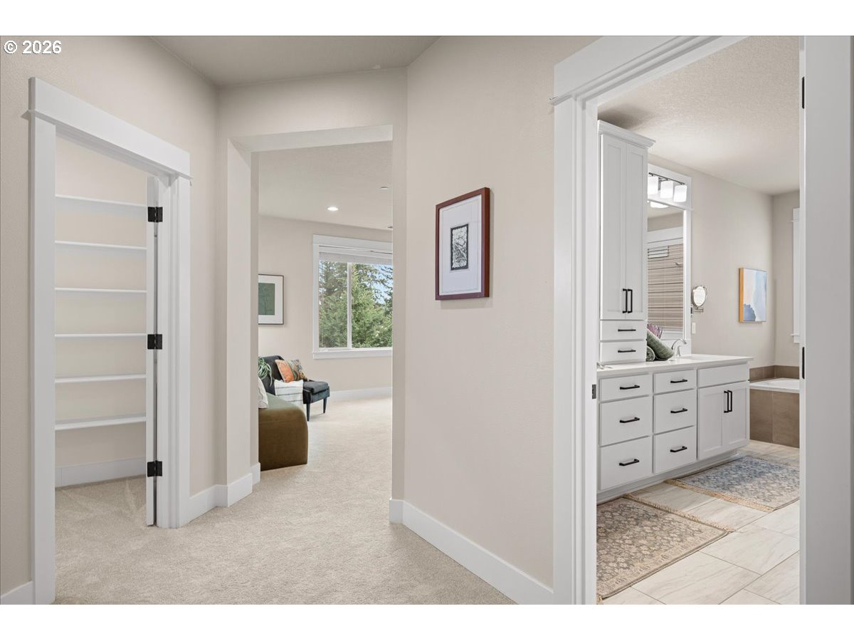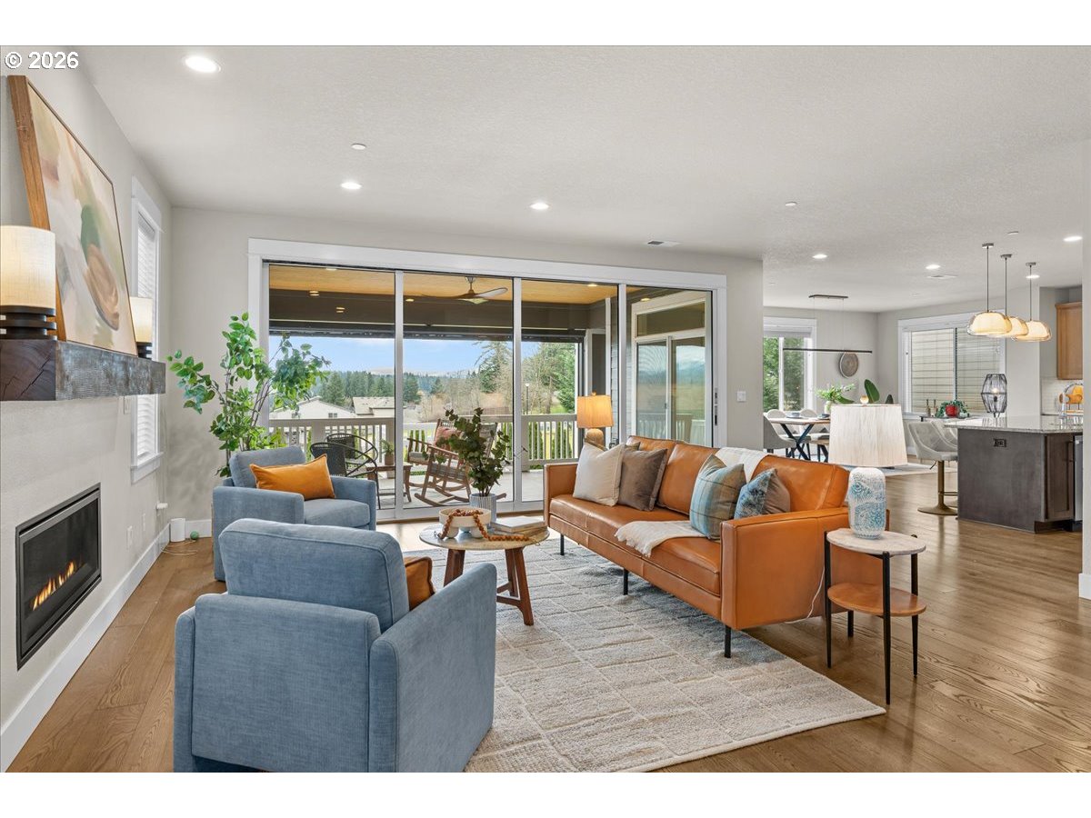 - One of the best lots in this beautiful neighborhood ~ fabulous floorplan, coveted schools, newer construction, and impressive upgrades & improvements. Miles of territorial views are framed by large picture windows in the living room, kitchen, dining & primary bedroom. This peaceful setting is also enjoyed from the outdoor living room; a private covered deck with it's own fireplace. A level, fenced yard - you'll never mow again with astroturf (great for pets, too!) The kitchen is a chef & entertainers dream! Gourmet kitchen with large island, bar, upgraded appliances, double ovens, 6 burner gas stove, full depth pull out drawers, soft close cabinet doors, under cabinet lighting and large pantry. A main floor bedroom and full bath make a perfect office, or accessible main floor bedroom. Are you hoping for fabulous bonus room? You'll love this remarkable space! A wonderful playroom, media room, or BOTH - it's that spacious! The primary suite is 5-star luxury living; a large suite with unbelievable bathroom (endless counterspace, built-ins, soaking tub + shower.) Two additional upstairs bedrooms, and an upstairs laundry. Details & features include: Living room fireplace with thermostat & remote. Custom light fixture in dining room. New carpet with upgraded pad. Indoor sprinkler system. Air purifier. Outdoor deck with full-height power shade/screen. New ceiling fan on covered deck; includes a reversible function to keep area warm during cold weather. Paved area under deck with removable greenhouse panels; perfect workshop, greenhouse, or play area. Front and back irrigation. Raised garden beds. Insulated garage door with new garage door opener in 2025. EV charger in garage. Lockable large storage area off back patio. 50 Amp circuit for hot tub on back patio. Ziply Fiber for fast internet. Don't miss this remarkable home!