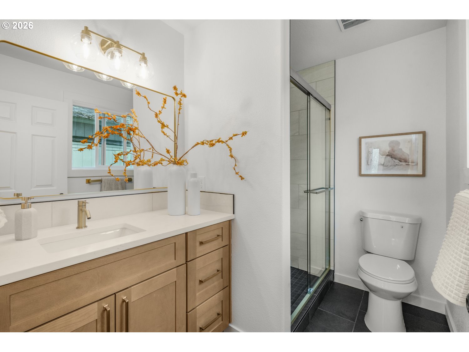- Fully remodeled and move-in ready, this stunning 3-bedroom, 2-bath home offers a brand new kitchen, open concept layout, and designer finishes throughout. Thoughtfully updated from top to bottom, every detail has been carefully selected to blend modern style with everyday comfort. With 1,938 square feet of beautifully refreshed single-level living, this home is truly turnkey.The heart of the home features a brand new kitchen complete with quartz countertops, luxury vinyl plank flooring, a butler pantry, and seamless flow into the spacious living and dining areas, perfect for entertaining. The oversized bonus/family room provides incredible flexibility for a media space, playroom, or home theater.The private primary suite is a true retreat with vaulted ceilings, a generous walk-in closet, and a spa inspired en suite featuring a modern tile walk-in shower and stylish finishes.Step outside to enjoy fresh landscaping, a large fenced backyard, and an expansive deck ideal for summer gatherings, relaxing evenings, or weekend BBQs with gas hookup. Additional updates include a brand new roof (2019), giving peace of mind for years to come.Conveniently located with quick access to I-5 and SR-500, this home offers easy commuting while still providing comfort, space, and modern design in a beautifully updated setting.