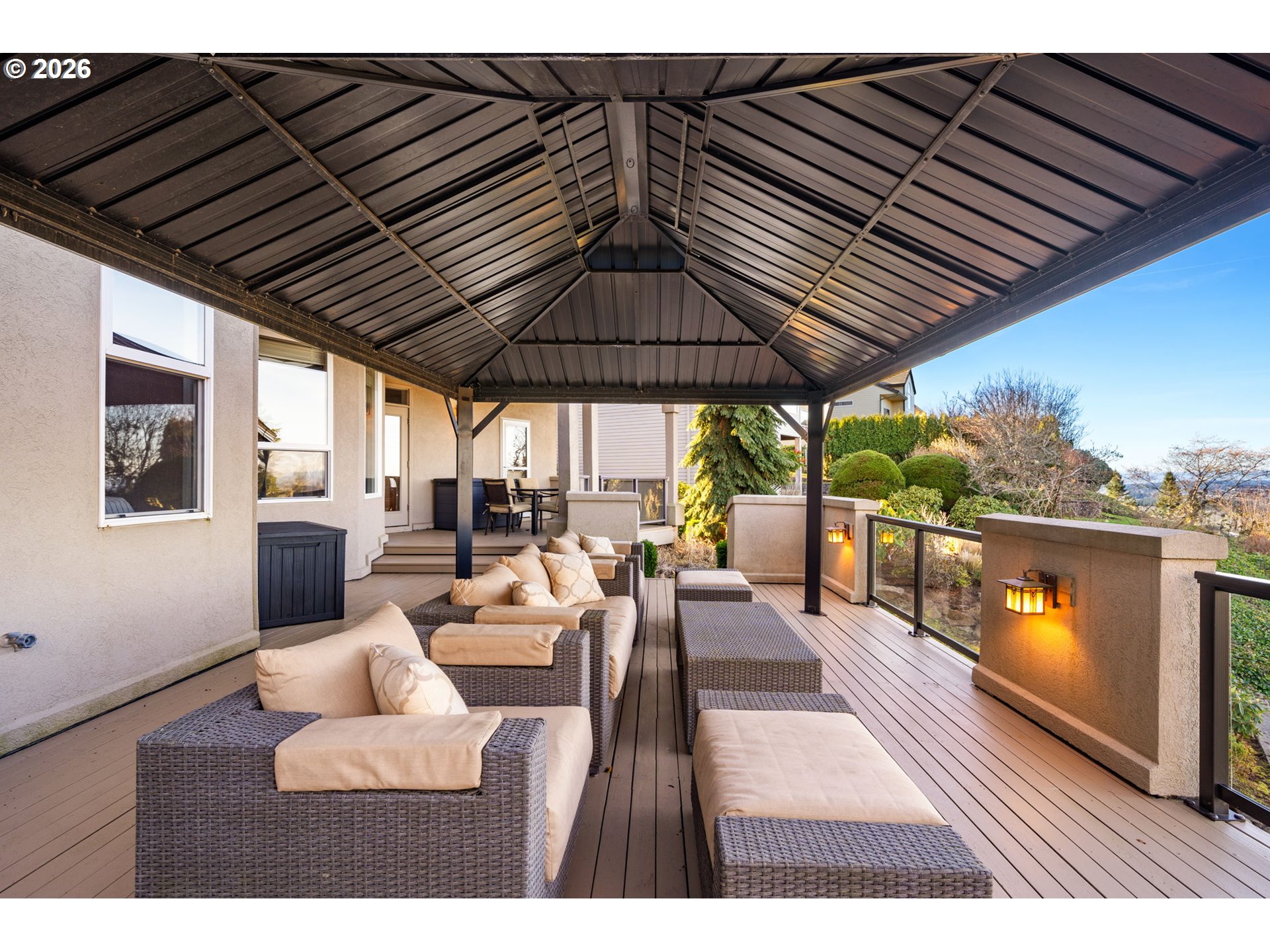 - This one has it all - views, versatility, and major upgrades. Enjoy a main-floor primary suite with spa-like bath featuring heated tile floors, gas fireplace, jetted tub, and dual sinks, all overlooking vast mountain views. The updated kitchen shines with brand-new gourmet appliances, new vent-hood, and hardwood floors flowing through the kitchen, dining nook, and bar. Soaring 15’ ceilings, surround sound, gas fireplace and dimmable lighting elevate the living room, while a dream main-floor office with built-ins makes working from home effortless. Step outside to a huge covered back deck with gazebo seating, formal dining space, and gas hookups for endless entertaining.The lower level offers ideal multi-generational living potential, with two bedrooms, a Jack-and-Jillbath, additional bathroom, office/workout room with private sauna, and space ready for a secondlaundry. Energy-efficient heat pump on the main floor, separate lower-level furnace, full foundationwaterproofing, elevator-ready design, and a 3-car garage with WiFi control complete thisexceptional Camas home.