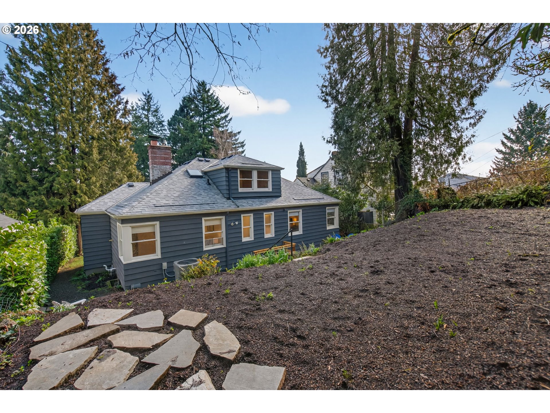 - Positioned above the street, this rad 1940's bungalow delivers so much personality and a cool mid-century vibe. The pictures are great--but this one is even better in person! Generous windows let the natural light just pour in, giving the home an effortless, airy energy. Charming? Duh. Updated? You bet! Recent improvements include a new tear off roof, high-efficiency furnace and A/C, refinished hardwoods, a thoughtfully redesigned kitchen and main-floor bath, a refreshed half bath, and modern fixtures and hardware. Two generously sized bedrooms are on the main floor with excellent light and impressive closet space. The main floor bathroom is really quite beautiful. An additional hideaway bedroom suite upstairs that is private and unexpected. It has a walk-in closet and a sweet half bath. The kitchen. Ah, the kitchen. This beauty opens seamlessly to the dining area, creating an easy, social flow with clear sightlines into the living room. The sun-soaked coffee nook will be an instant favorite. Just off the kitchen, the mudroom/laundry room, with exterior access, includes a pantry and clever built-ins to keep daily life organized. Downstairs is a super cozy, carpeted family room. A separate bonus space with its own exterior entrance offers flexibility—studio, workshop, hobby room, or some serious storage. Low-maintenance terraced front yard with a lovely view, a back patio perfect for lounging, and a yard with space to garden or play. The two-car tandem tuck-under garage adds everyday convenience. Location-wise, it’s hard to beat. Steps to George Himes City Park, Hillsdale downtown and farmer's market, popular schools, OHSU, and highway access to pop downtown PDX. The neighborhood is awesome, and definitely one to explore.