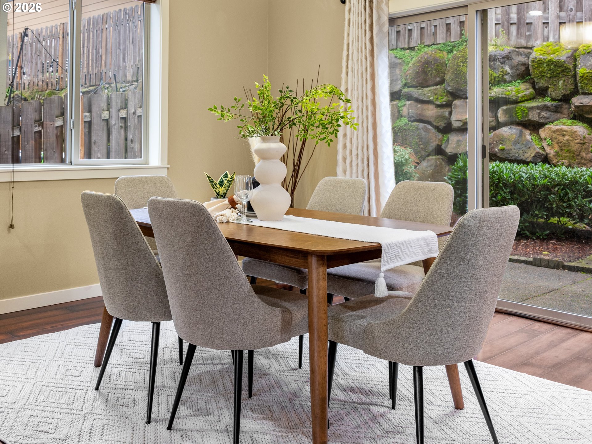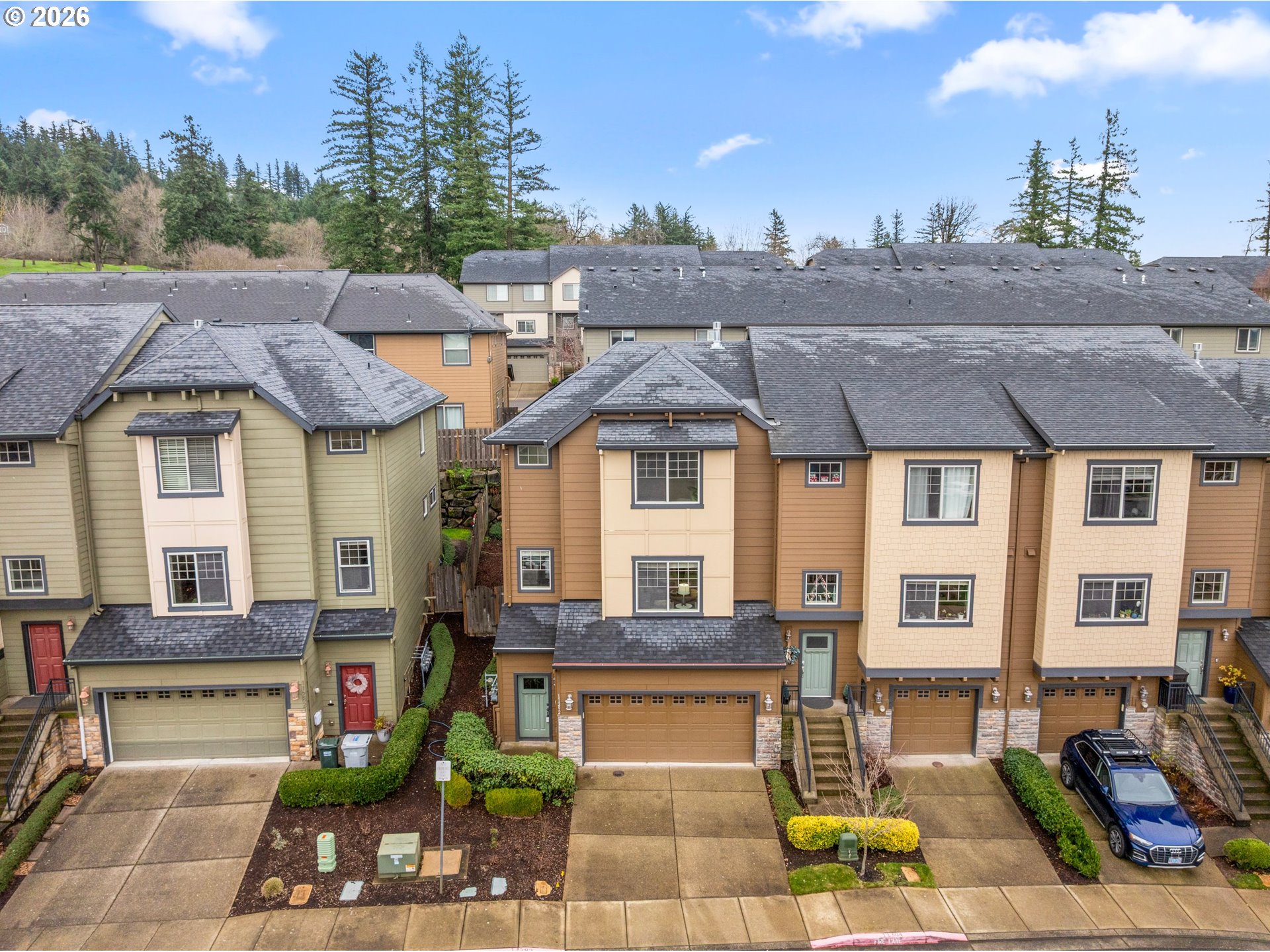 - Welcome to this end unit townhome in ultra desirable community of Happy Valley, where light, space, and value all show up and actually deliver. First things first: this home has a true 2 car garage. Not a “maybe one car plus vibes” situation but a legit two car garage, which is a BIG deal in this community. Add in paid off solar panels (no lease, no loan, no extra monthly payment), and you’re already winning before you even walk inside. The ground level offers a private entry and landing, then upstairs you’ll find the heart of the home. Thanks to the west facing orientation and large windows, the main living level is filled with natural light all day long. The kitchen brings both style and function with granite countertops, a large island with bar seating, a generous pantry, and plenty of room for cooking, hosting, or casual weeknight dinners. The dining and living spaces flow effortlessly, anchored by a gas fireplace that makes chilly PNW evenings extra cozy. Up on the third floor, you’ll find three bedrooms, two full baths, and laundry right where it belongs... near the bedrooms. The primary suite is the real showstopper, offering miles and miles of PNW views that remind you exactly why people move here in the first place. A whole home vacuum system adds another layer of everyday convenience.And then we get to the HOA… which honestly feels more like a resort perk list. Owners enjoy access to a 27-hole par-3 golf course, a 36-hole putt-putt course, and a clubhouse with a fully equipped gym because balance matters. Close to cafes, restaurants, easy access in the interstate and quick jaunt to the Clackamas Towne Center for shopping and a movie. This is a fantastic opportunity for someone to live easy and low maintenance in a fantastic location.