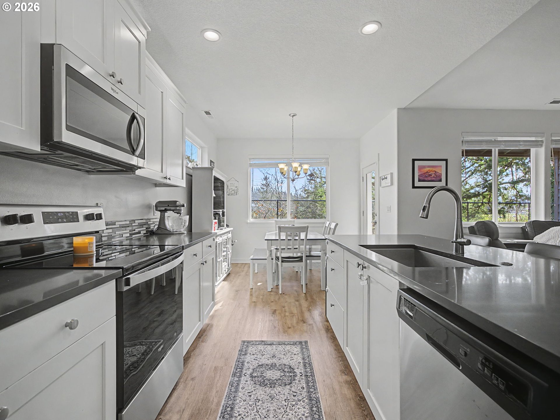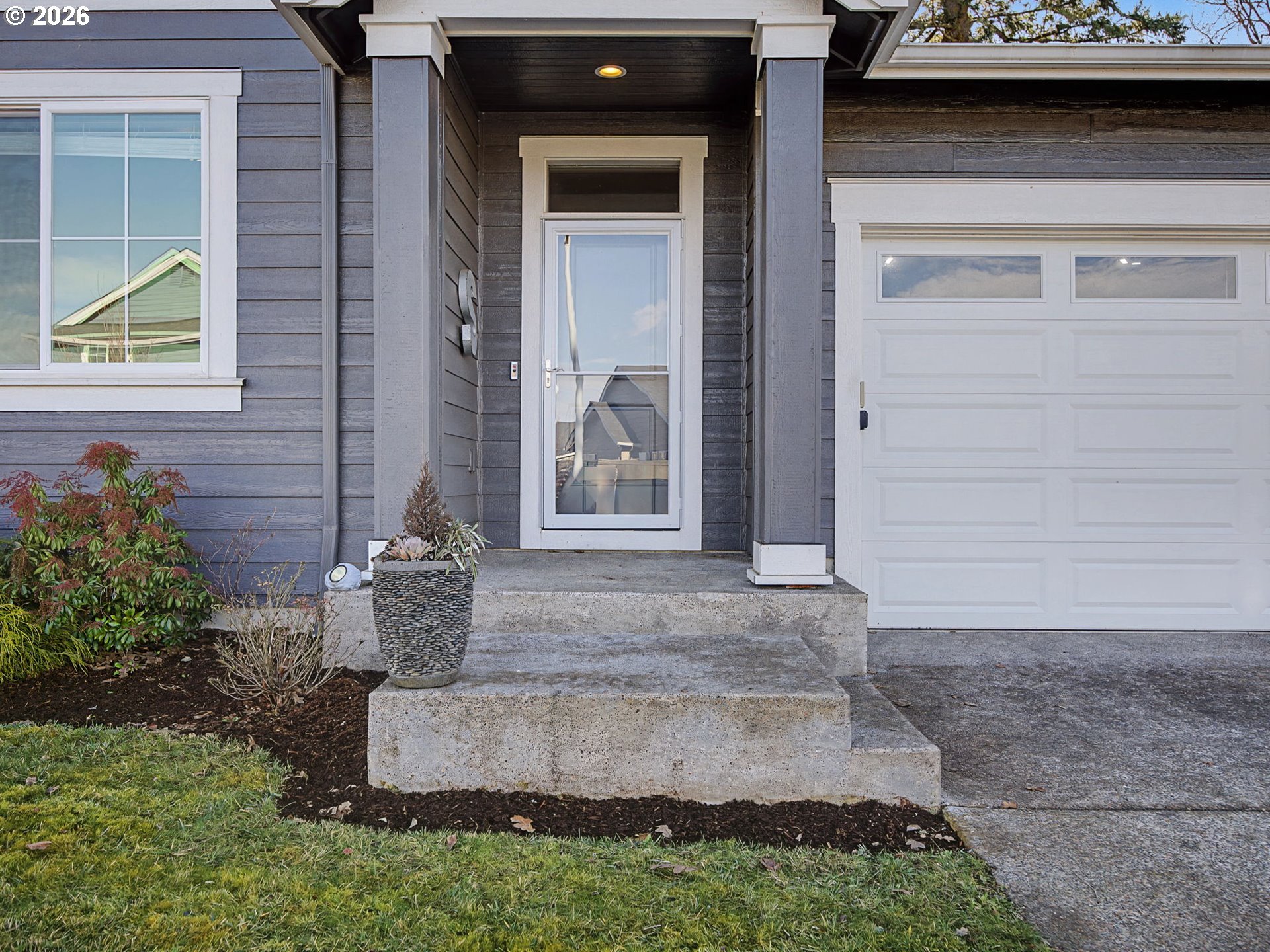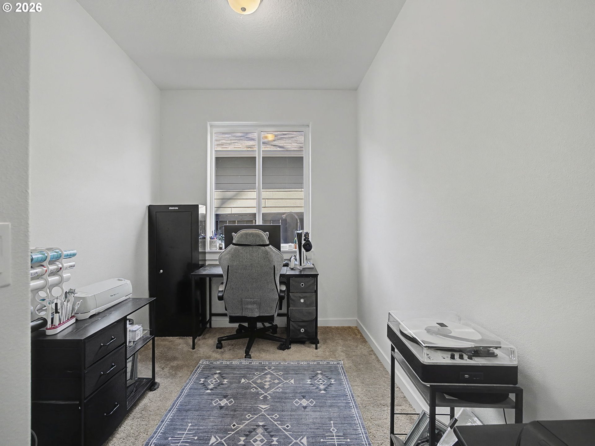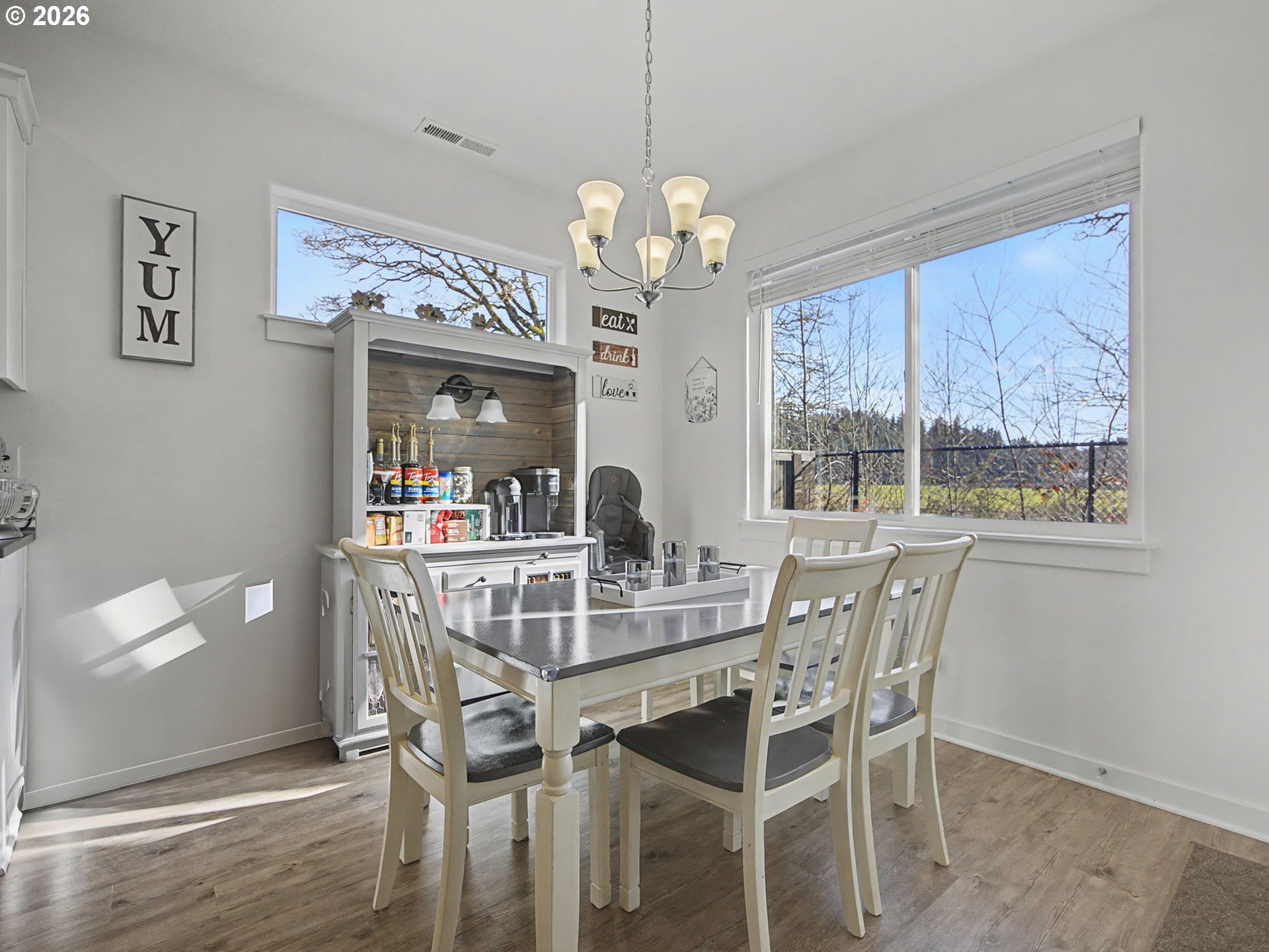 Well-kept one-level ranch featuring 4 bedrooms, including one that works well as an office. Wide hallway and vaulted ceilings make the main living area feel airy and comfortable with the electric fireplace adding a cozy touch. The kitchen offers quartz countertops, stainless steel appliances, and a pantry. The primary suite features its own vaulted ceilings, a double vanity, walk-in shower, and a spacious walk-in closet.The fenced backyard is low-maintenance with turf, raised garden beds, and NO neighbors behind—just trees and an open field for added privacy. Located on the edge of the neighborhood, this home has easy access in and out. Move-in ready and in great condition.