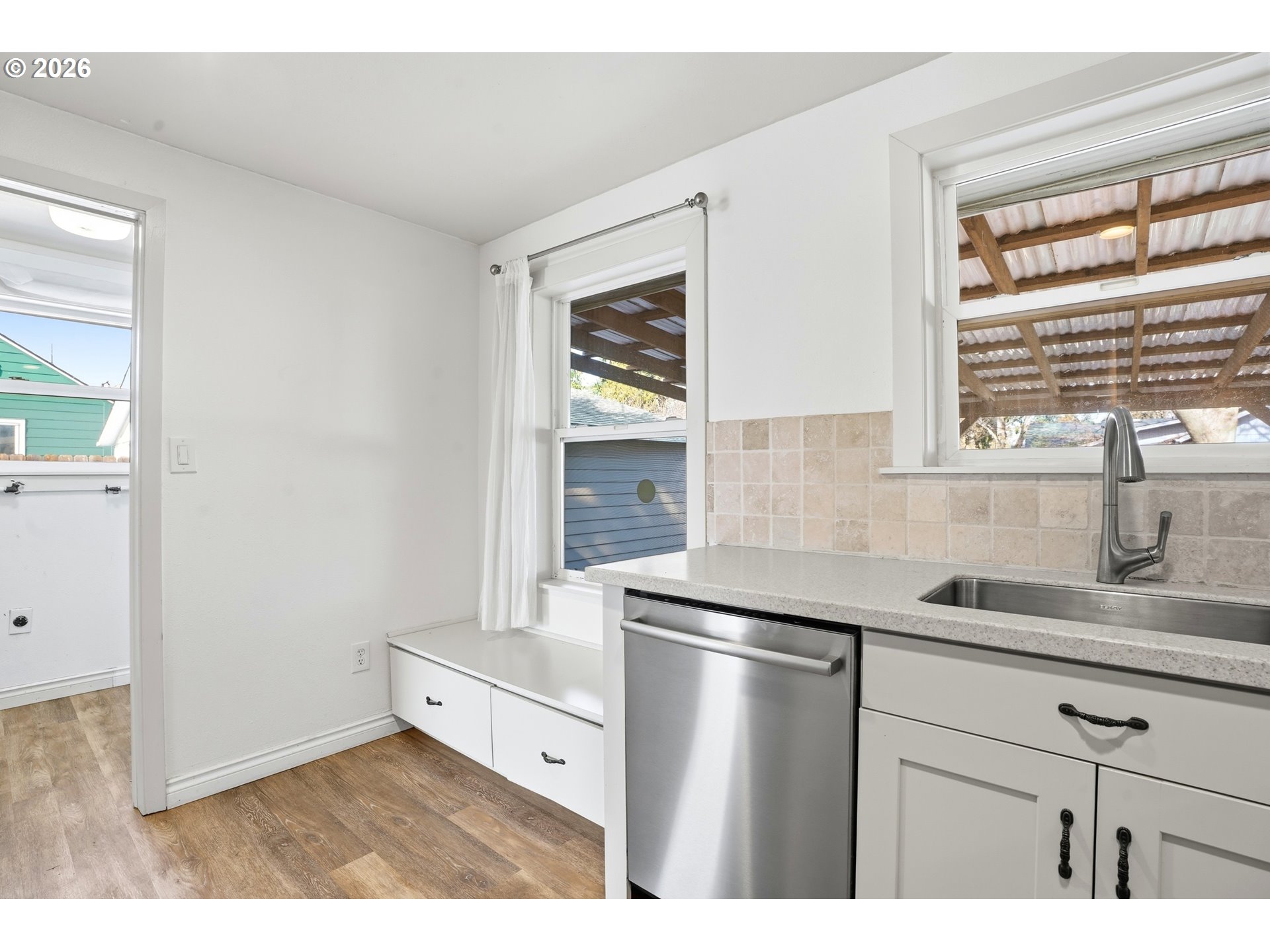 Beautiful 2-bedroom, 1-bathroom, 884-square-foot home WITH a large level lot, located just minutes away from downtown Vancouver! Enjoy a spacious living room providing tons of natural light! The gorgeous kitchen features updated cabinets, countertops, and modern stainless steel appliances! This property includes a utility room with washer and dryer hookups, a detached one-car garage, and a fully fenced backyard with a covered patio perfect for entertaining! Extra-long driveway, perfect for RV or boat parking. This home is conveniently located just minutes away from downtown Vancouver, Clark College, easy I-5 and SR-14 access, and much more!