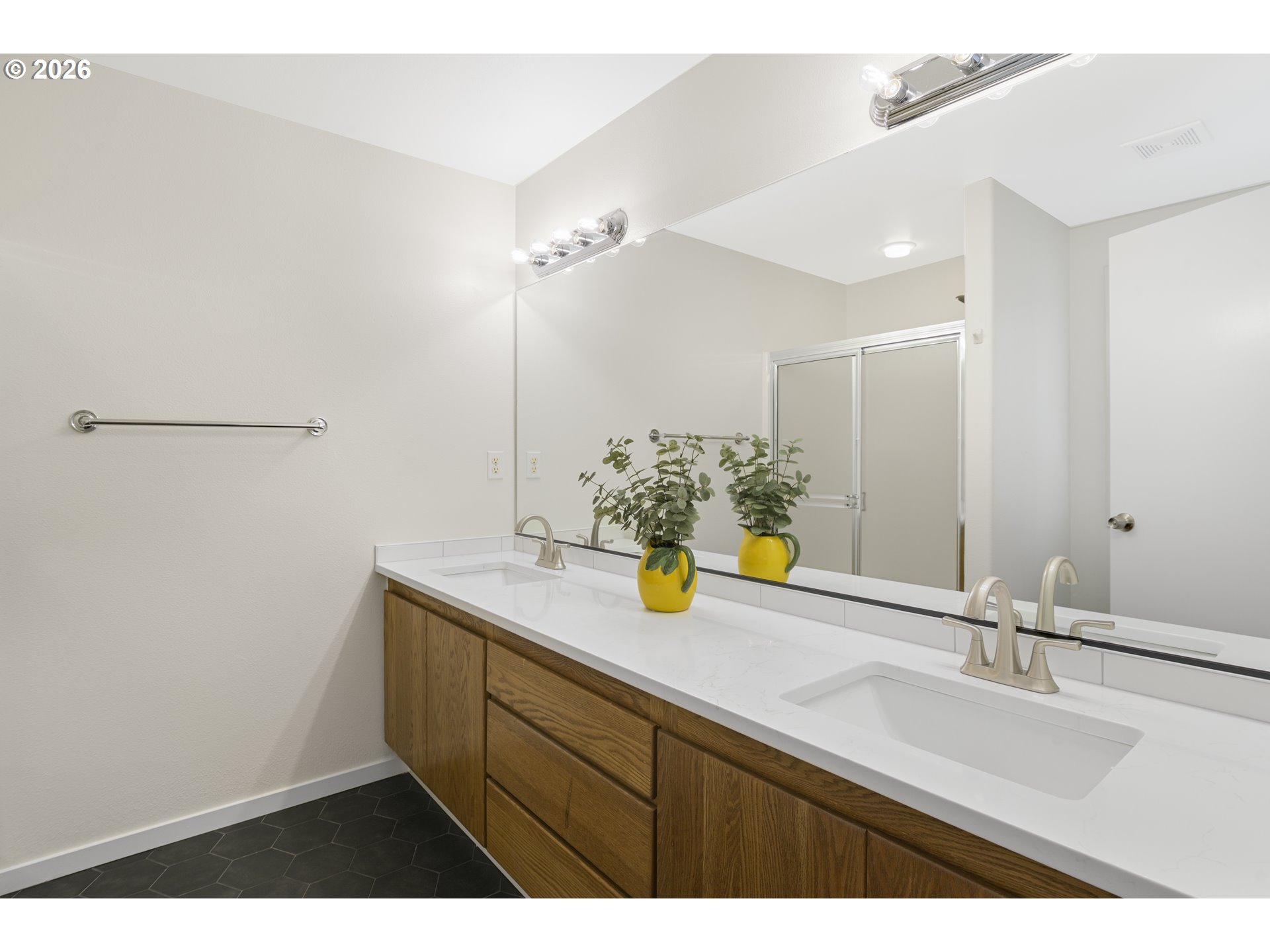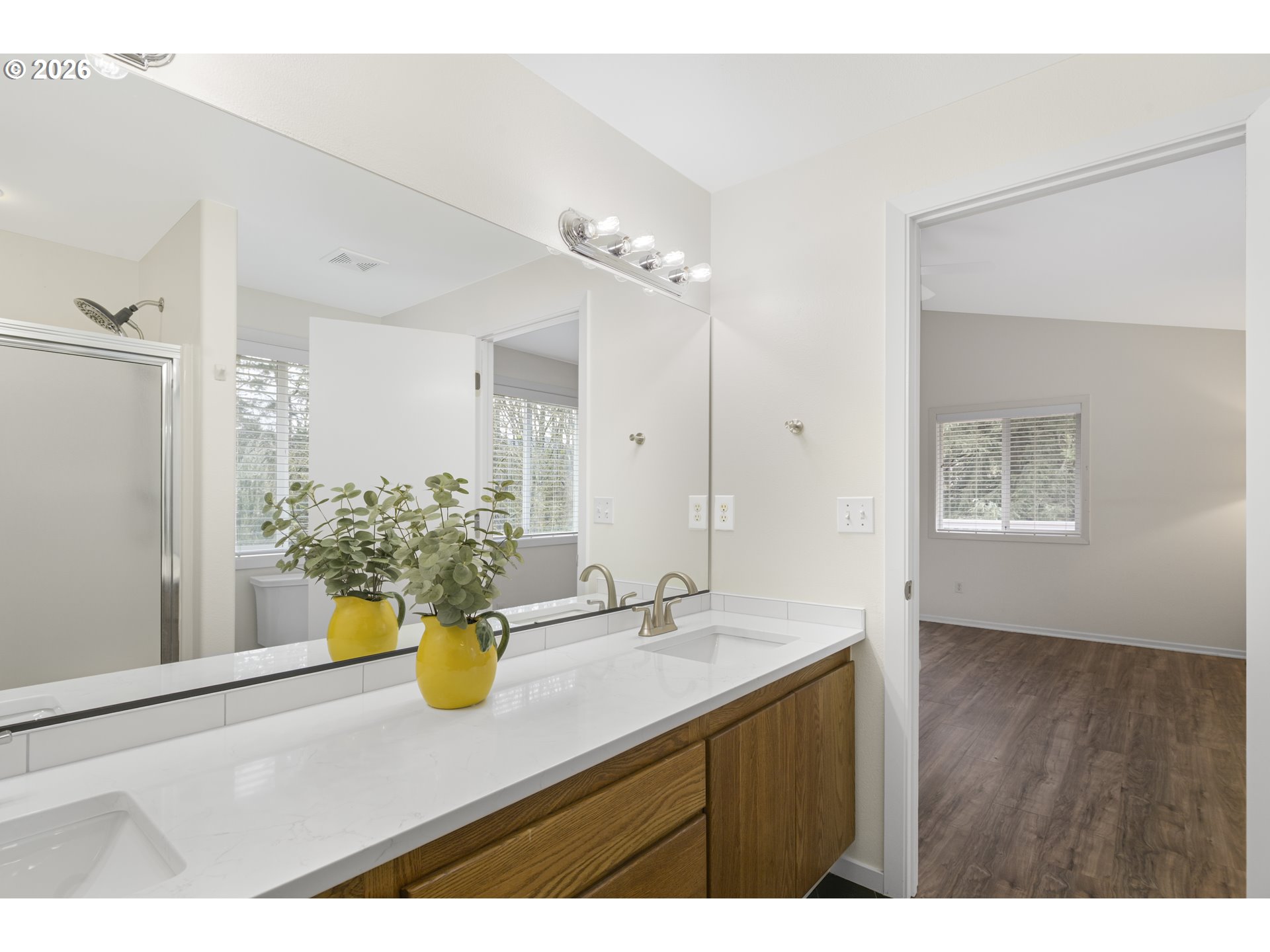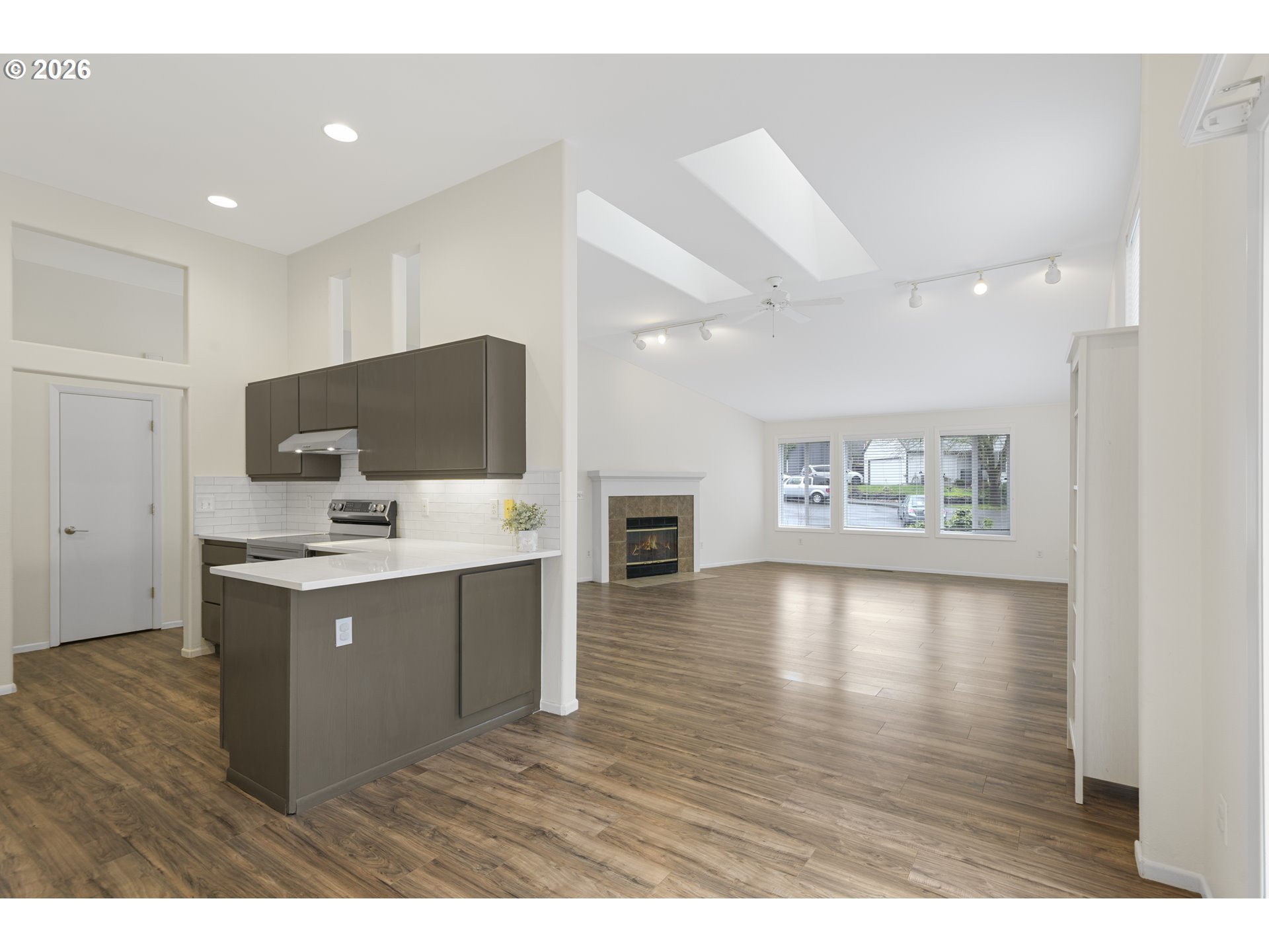 - This amazing single level home is Camas has a spacious layout that provides ample room throughout, complemented by an abundance of natural light that pours in through the large windows. Gleaming hard surface flooring extends across the main living areas, adding warmth and elegance. The recently updated kitchen features a wealth of cabinetry for storage, along with modern appliances, new quartz counter tops and backsplash that create a functional and well-equipped cooking space. Ample counter space and bright lighting further enhance the utility of this area. An adjacent dining space provides a dedicated area for meals and entertaining. The primary bedroom features a spacious design, offering a comfortable retreat. The en-suite freshly updated bathroom provides a spa-like experience with a bright and airy atmosphere. The two additional bedrooms are well-proportioned, offering flexible options for use. Stepping outside, the home is situated on a sizable lot with a spacious backyard that includes a detached shed for additional storage. The well-maintained landscaping and lush greenery create a peaceful, wooded setting, providing a private oasis. A spacious deck offers an inviting space for outdoor relaxation and entertaining. Throughout the home, updates have been made, including new quartz countertops, updated bathrooms, and a freshly painted interior, ensuring a move-in ready condition. The vaulted ceilings and skylights add to the bright and airy ambiance, while the cul-de-sac location offers a sense of privacy and tranquility.