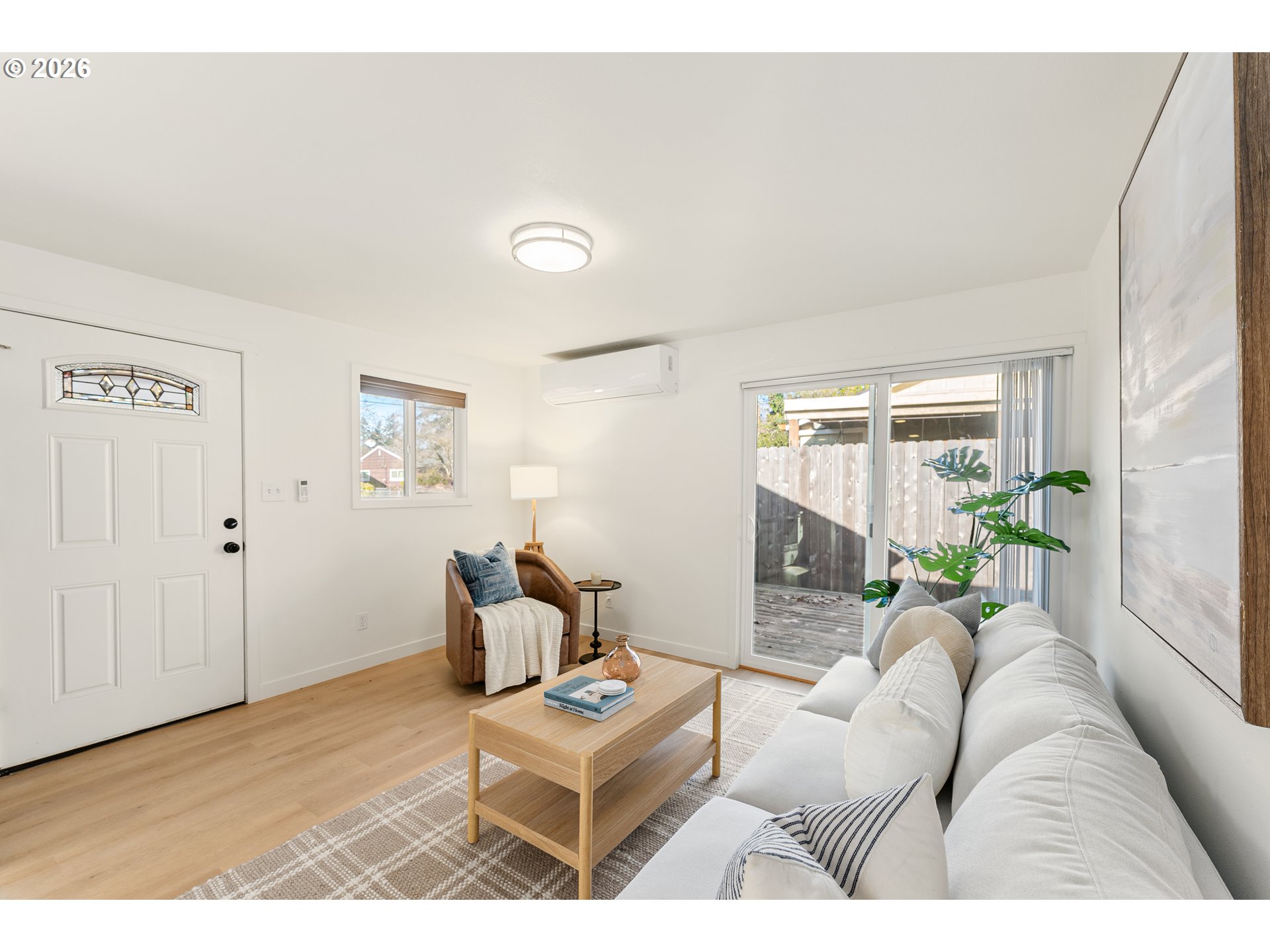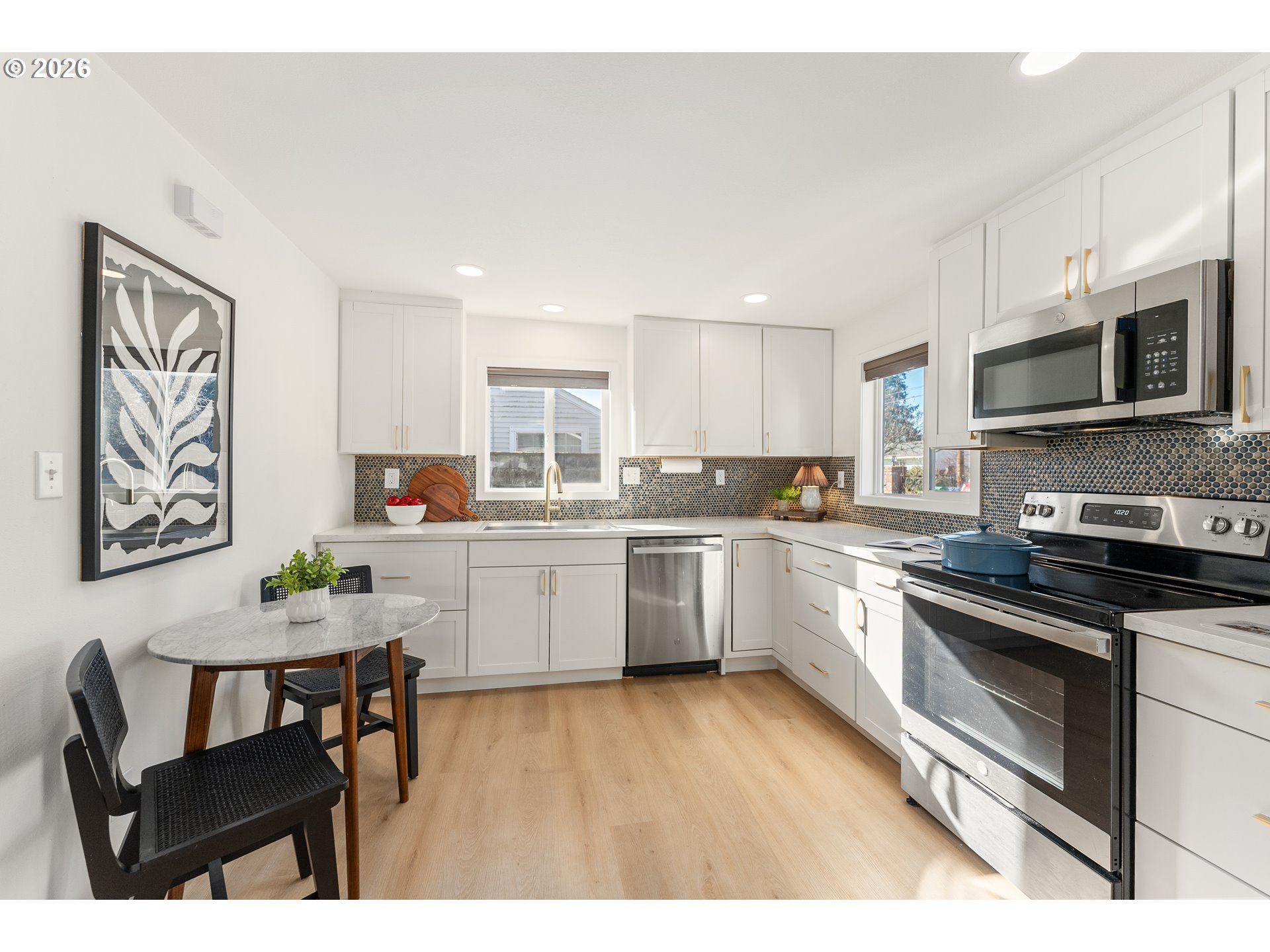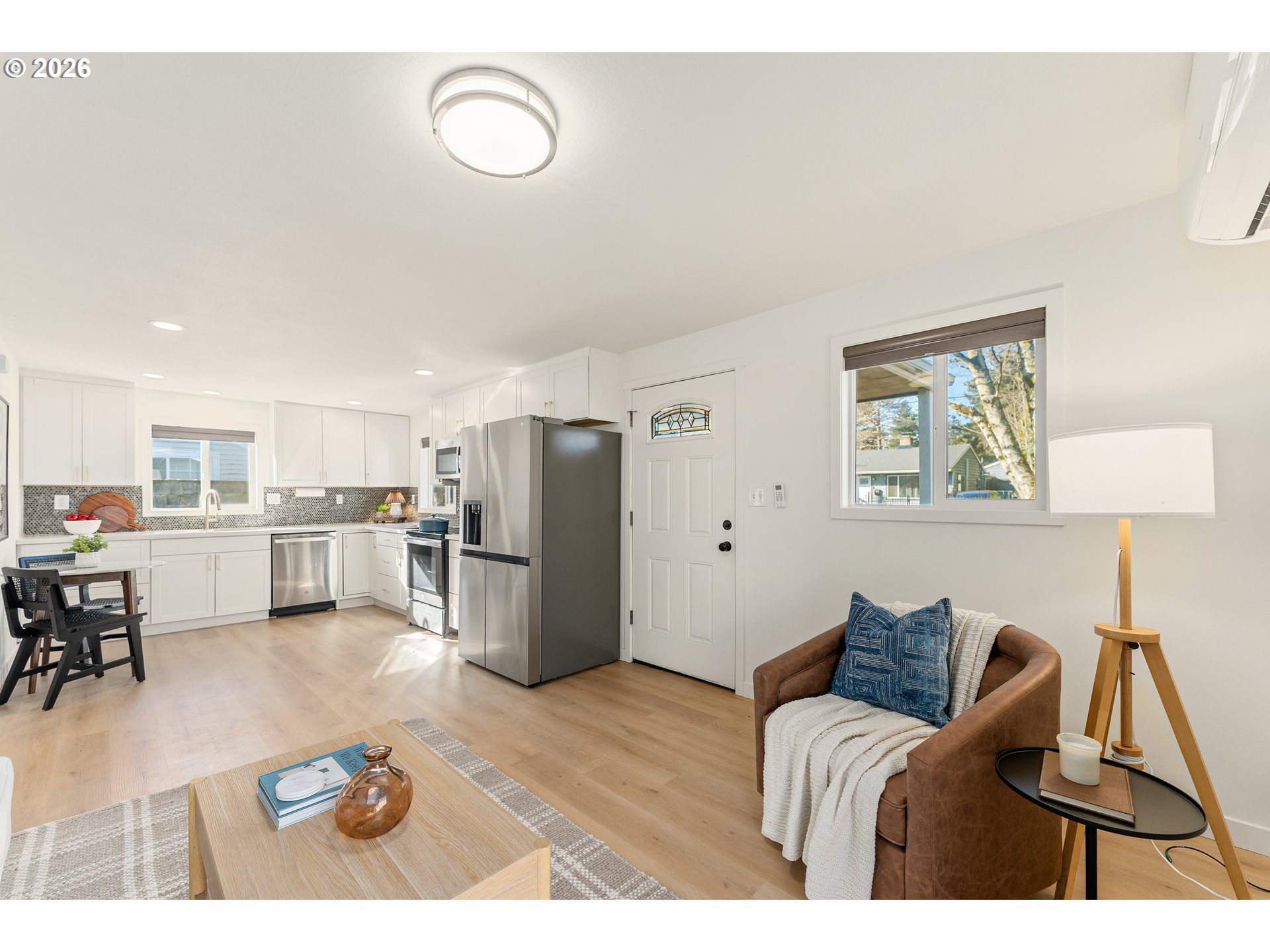 - Fully remodeled, turn-key condo alternative on a fantastic lot in prime Brentwood-Darlington! Open living, dining, and kitchen spaces make this home feel much larger than its square footage. Sliding doors from the living room lead to a private deck, perfect for entertaining or relaxing outdoors. The kitchen features quartz countertops, a tile backsplash, and stainless steel appliances including GE dishwasher, GE smooth-top electric range, GE over-the-range microwave, and LG refrigerator. Two bedrooms with plush carpet and a full bathroom on a single level make everyday living easy. Expansive front and back yards plus a detached shed provide space to garden, play, or store. Nearby parks and local amenities make this move-in ready home a rare find in a prime location. [Home Energy Score = 9. HES Report at https://rpt.greenbuildingregistry.com/hes/OR10204869]