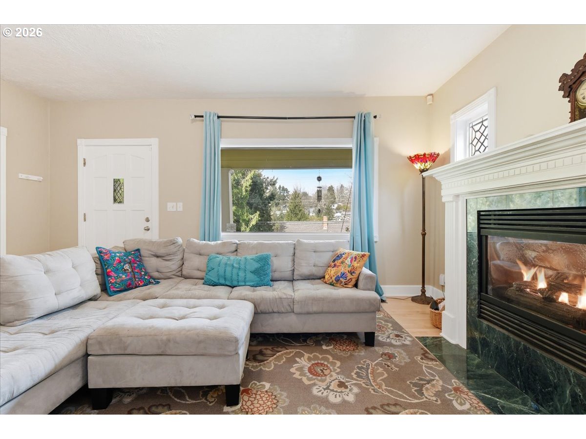 - Sought-after Maplewood neighborhood! Perched high above the street, this charming and peaceful Portland bungalow welcomes you with a spacious covered front porch—perfect for slow mornings and evening conversations. Inside, high ceilings and beautiful natural light create an airy, uplifting feel from the moment you step through the door. The easy, flowing layout allows rooms to connect effortlessly, offering space to gather, unwind, and entertain. The gas fireplace adds warmth and ambiance to both formal and casual living.Thoughtful updates, including newer windows, updated bathrooms, and stainless steel appliances, enhance comfort and efficiency, making this home truly move-in ready.The backyard is a private retreat—fully fenced with lush green grass, raised garden beds, and a bounty of fruit, including apple and pear trees, plus strawberries, raspberries, and blackberries. Whether you’re hosting summer dinners or tending your garden, this space offers both beauty and function.Ideally located near Gabriel Park and just moments to the shops and restaurants of Multnomah Village, Maplewood is known for its community feel and access to some of Portland’s most desirable schools. This is the kind of home that feels good the moment you arrive. [Home Energy Score = 1. HES Report at https://rpt.greenbuildingregistry.com/hes/OR10204797]