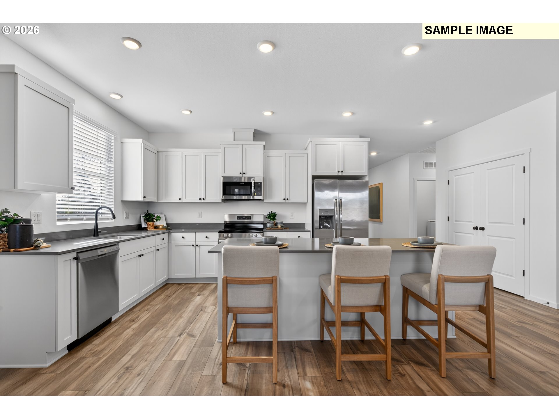 - Welcome to the brand-new Everett floorplan by Lennar in the highly anticipated Bonnie Meadows community in Estacada—where modern comfort, thoughtful design and everyday functionality come together in one beautifully crafted single-story home. Step inside this beautifully designed home of thoughtfully crafted living space. The open-concept layout seamlessly connects the great room, dining area and kitchen—creating the perfect setting for both daily living and entertaining. The kitchen shines with quartz countertops complemented by a full stainless steel appliance package that includes a refrigerator, along with elegant finishes designed for both style and convenience. Designer-selected features enhance the home throughout, including luxury vinyl plank flooring in the main living areas, plush designer carpet in the bedrooms, horizontal faux wood blinds and coordinated exterior color schemes for added curb appeal. The private owner’s suite offers a relaxing retreat with its own ensuite bath, while three additional bedrooms provide flexibility for guests, hobbies or a home office. A spacious two-car garage adds everyday practicality and ample storage. Enjoy indoor-outdoor living with a patio just off the main living space—ideal for morning coffee or evening gatherings. Located in serene Estacada with easy access to outdoor recreation, nearby amenities and urban conveniences, Bonnie Meadows offers a peaceful lifestyle without sacrificing convenience. Homes with this level of style and value are in high demand—schedule your tour before it’s gone! Front photo is an artist's rendering. Interior photos are of a similar/model home - finishes & features may vary. Homesite #50, estimated Summer completion. Grand opening special - Flex credit/closing cost incentive available when financing with preferred lender! Use towards rate buydown and closing costs.