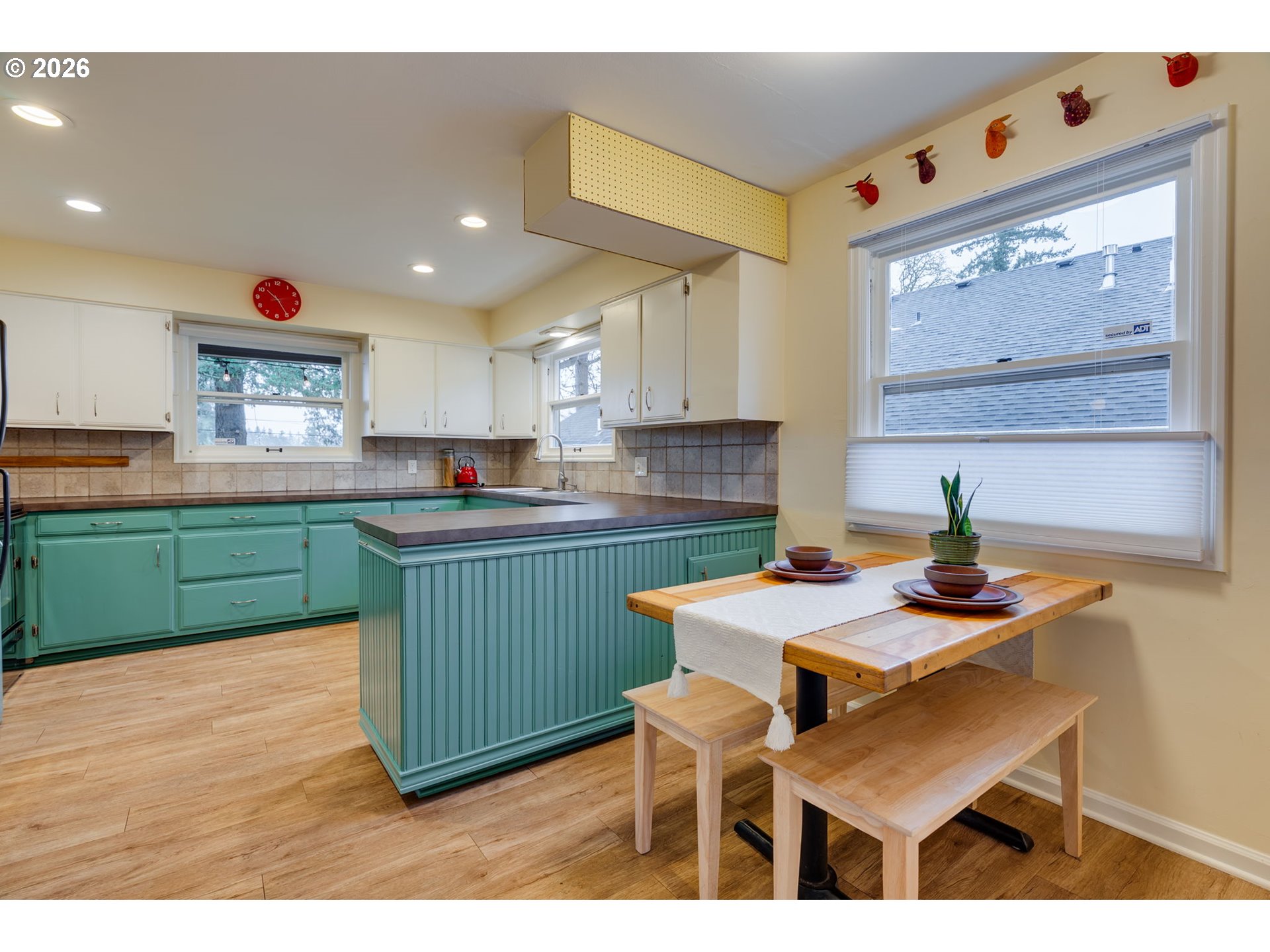 - Spacious mid-century home in the Oak Grove neighborhood of Milwaukie. Set back from the street on a large, fenced lot with mature landscaping, a beautiful deck, patio, porch, and separate artist studio. The bright and airy living room and attached dining room offer original hardwood floors, period fireplace, and picture windows. The home provides a spacious kitchen complete with a second dining space/breakfast nook. Two bedrooms and an updated full bath complete the main level. Upstairs offers two additional bedrooms and a full bath. An expansive full basement features high ceilings with a washer/dryer, storage space, and a recently finished hobby studio. The separate art studio has a new floor, finished walls, and a new electric panel. The backyard boasts a newly built, top-of-the-line bird aviary. The home offers a high-efficiency gas furnace, fresh interior paint, new flooring upstairs, a newer sewer line, 9-year-old roof, and a radon remediation system. Conveniently located, close to Milwaukie Village and just a short walk to the MAX station.