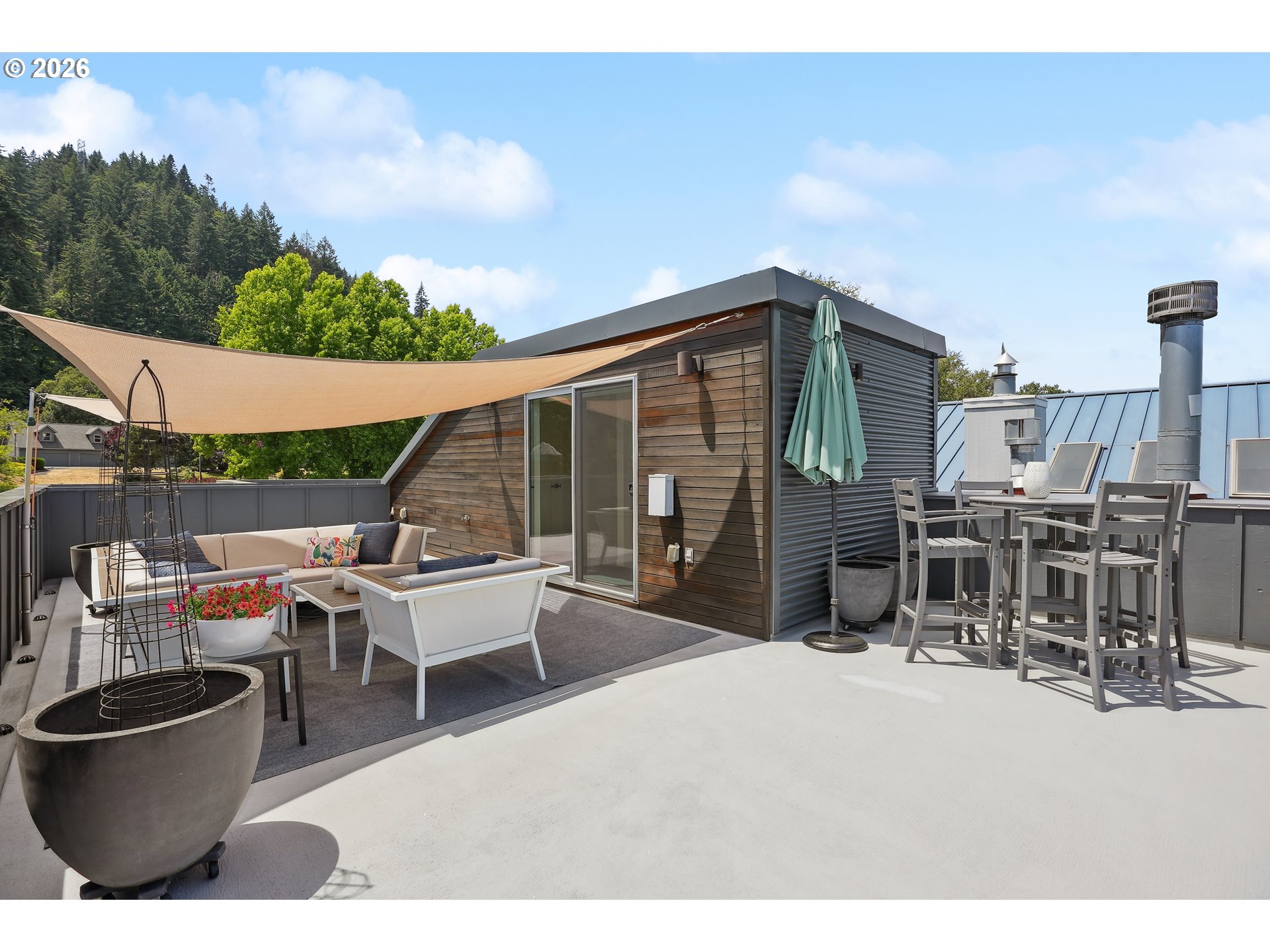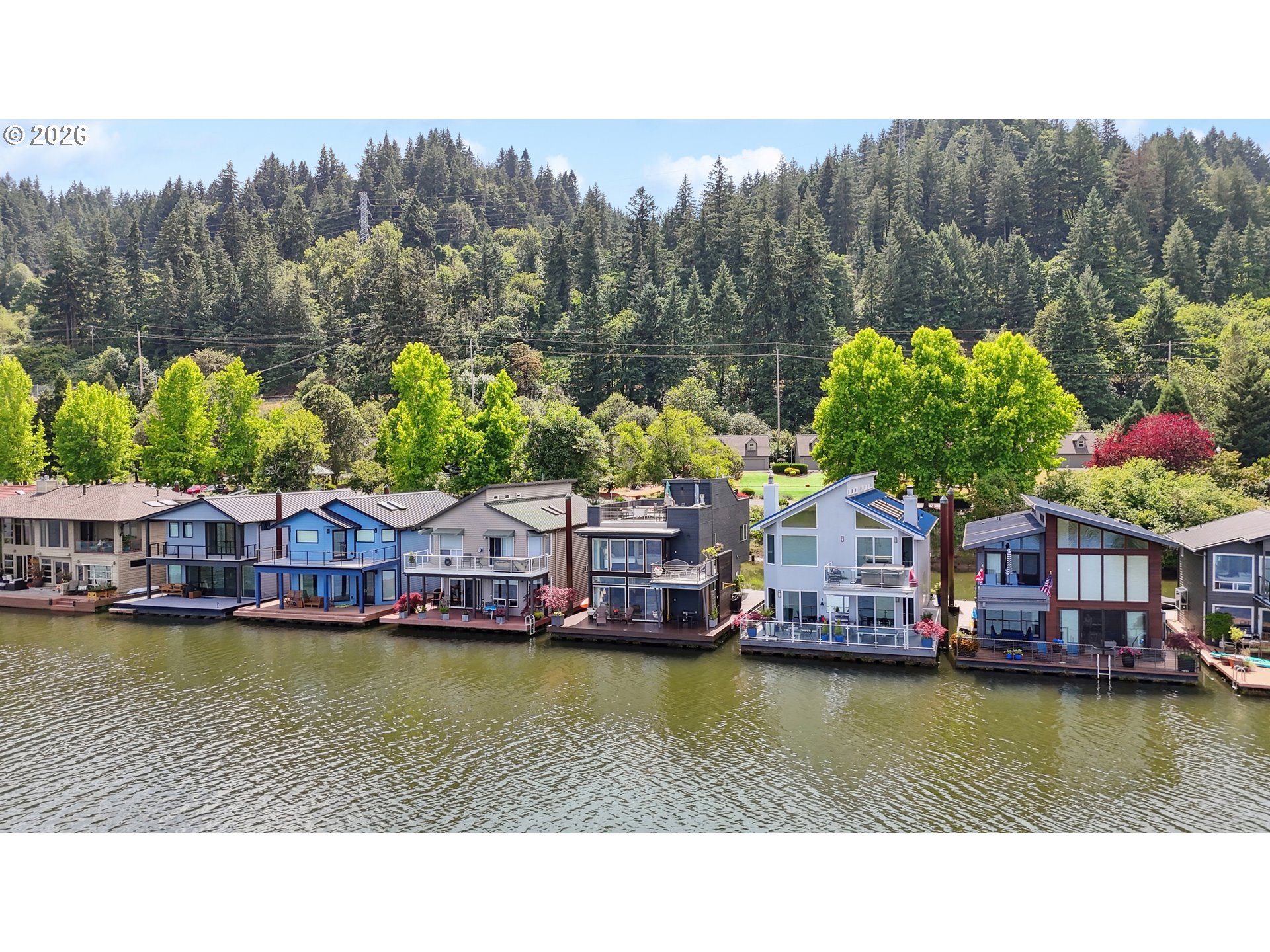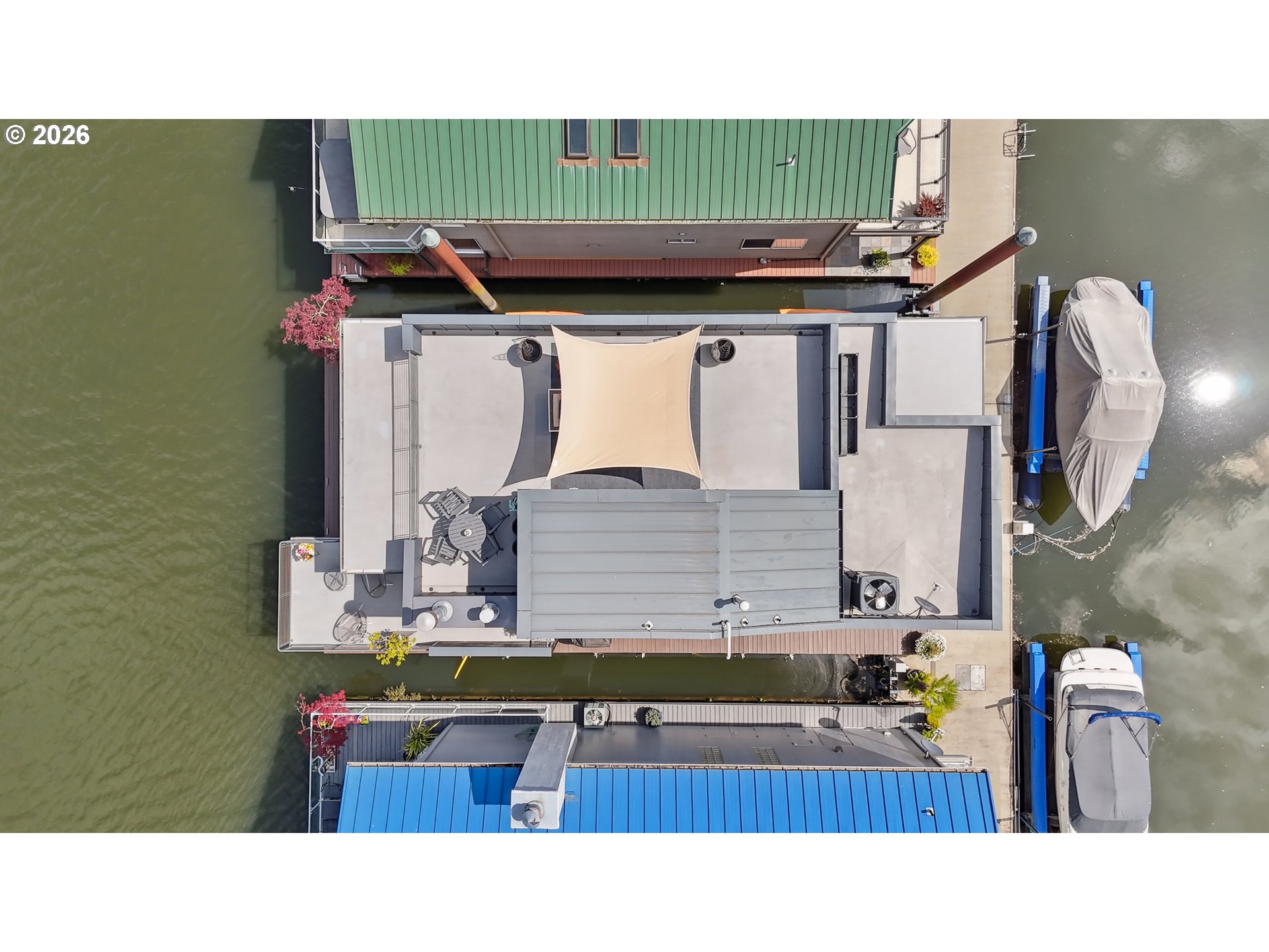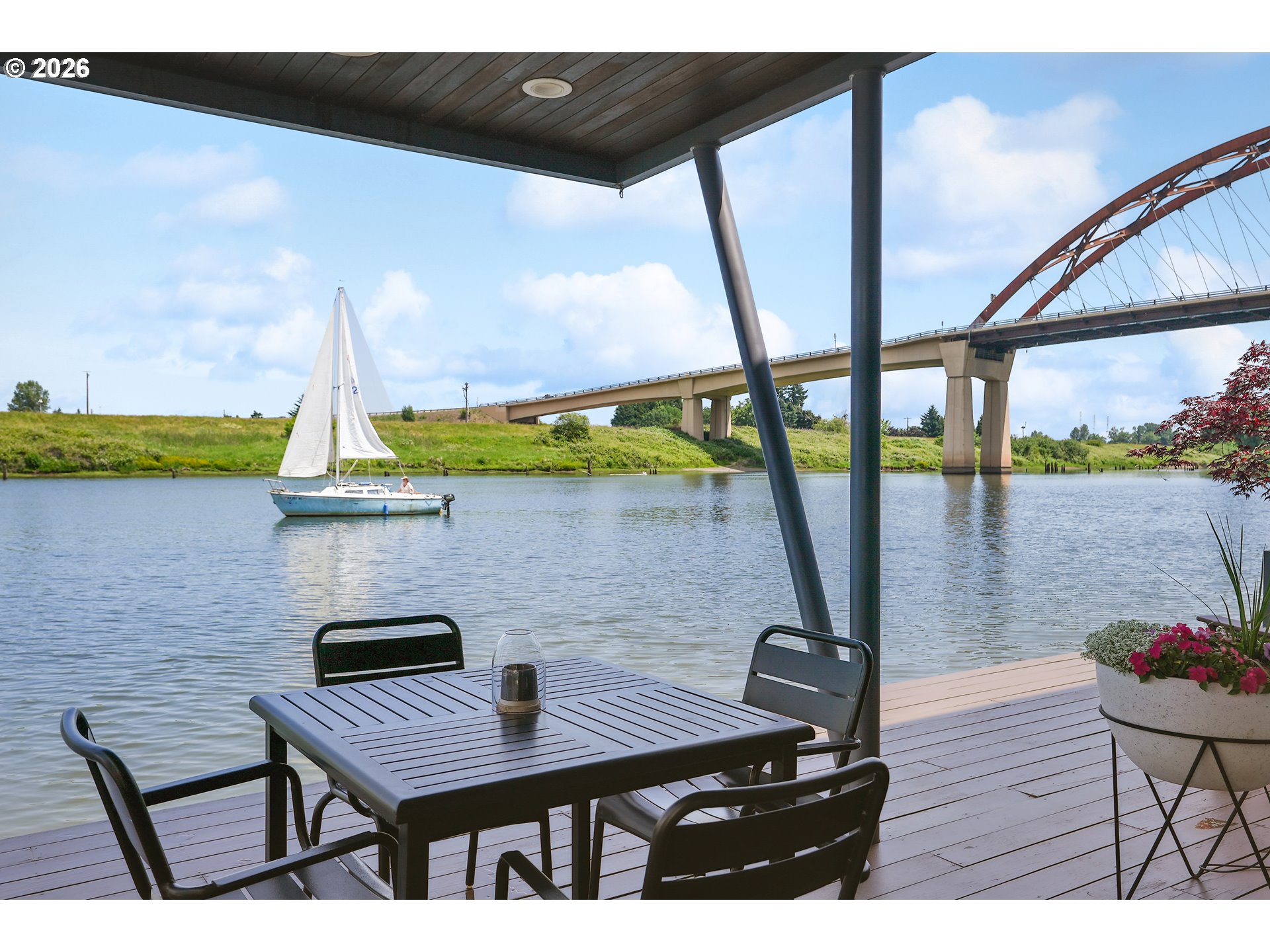 - One of those floating homes that rarely comes on market, an absolute must-have with standout design, craftsmanship, and an unbeatable marina. Located at Channel Island Marina - the premier floating home moorage in the Portland area, this home is just minutes from the city, yet offers a true sense of privacy and serenity. The sale includes slip ownership, currently valued at approximately $350,000, with extremely strong potential for continued appreciation value. Slip ownership also includes a two-car garage with a finished loft, rights to both sides of the dock, and all of the surrounding upland area, all professionally maintained, along with access to a private community gym and boat storage. Featured in top design publications and built by Even Construction, this Channel Island masterpiece blends bold architecture with timeless craftsmanship. Wrapped in sleek horizontal metal siding with warm wood accents, the home features floor-to-ceiling windows that fully capture the river. Inside, enjoy a slab tile entry, oak hardwood floors, custom cherry cabinetry, and a chef’s kitchen with high-end stainless appliances and a granite island. Designed for both entertaining and everyday living, the home features bars on all three levels, multiple upper decks, and a full rooftop deck. The primary suite offers stunning river views, a fireplace, soaking tub, private deck, and access to upper decks on both sides to enjoy both sunrise and sunset every morning and evening. With 3 bedrooms, 3 full baths, and flexible living space, including a guest room with a Murphy bed, this home offers comfort and versatility. Channel Island is one of the most exclusive and sought-after floating home communities on the river, offering a level of ownership, amenities, and overall experience that is truly unmatched. Renowned for its strong sense of community, pride of ownership, and beautifully maintained setting and neighborhood, it delivers an exceptional river lifestyle minutes from the city.