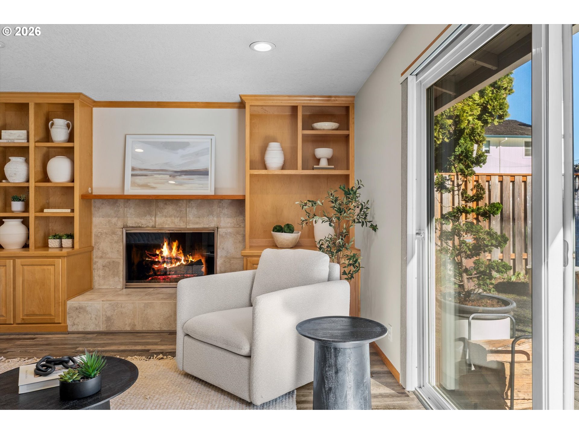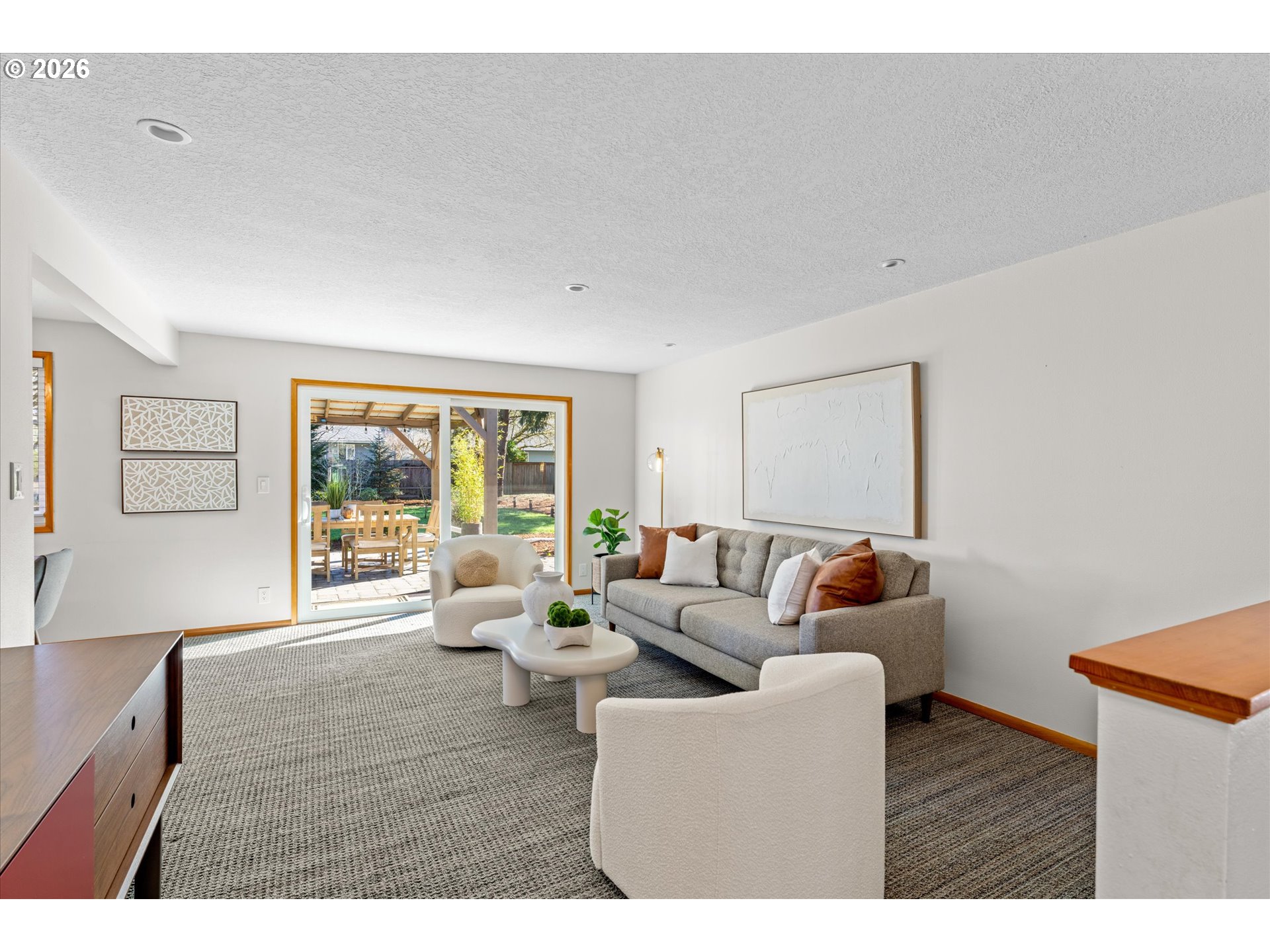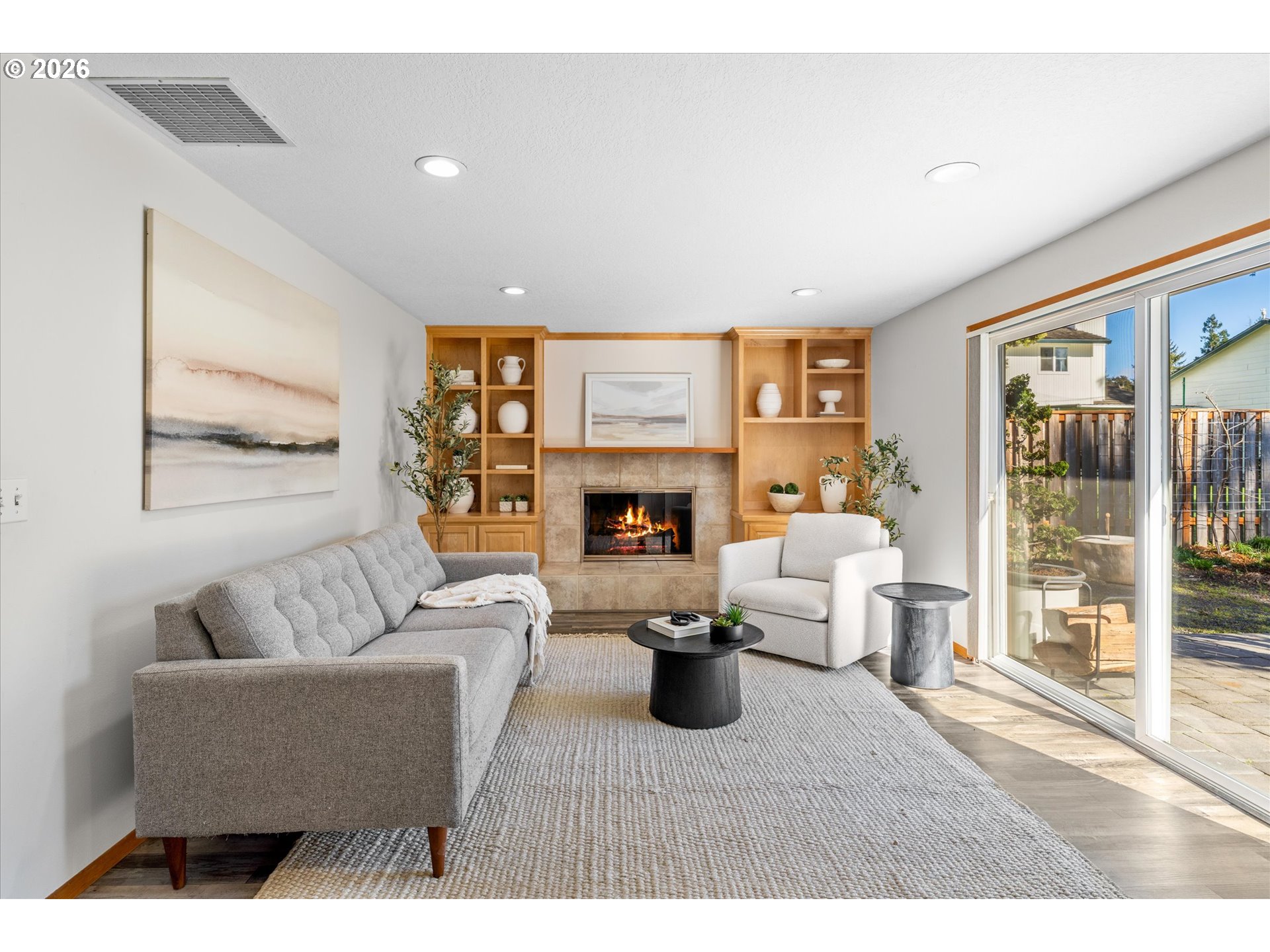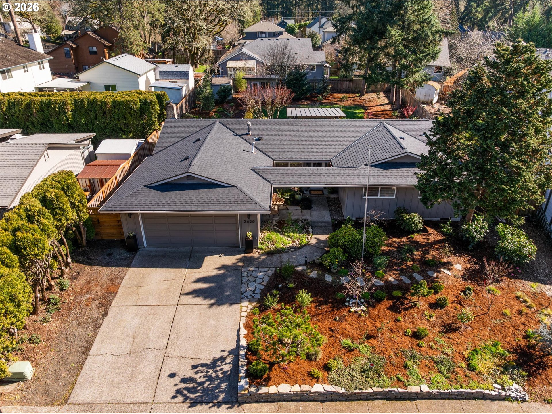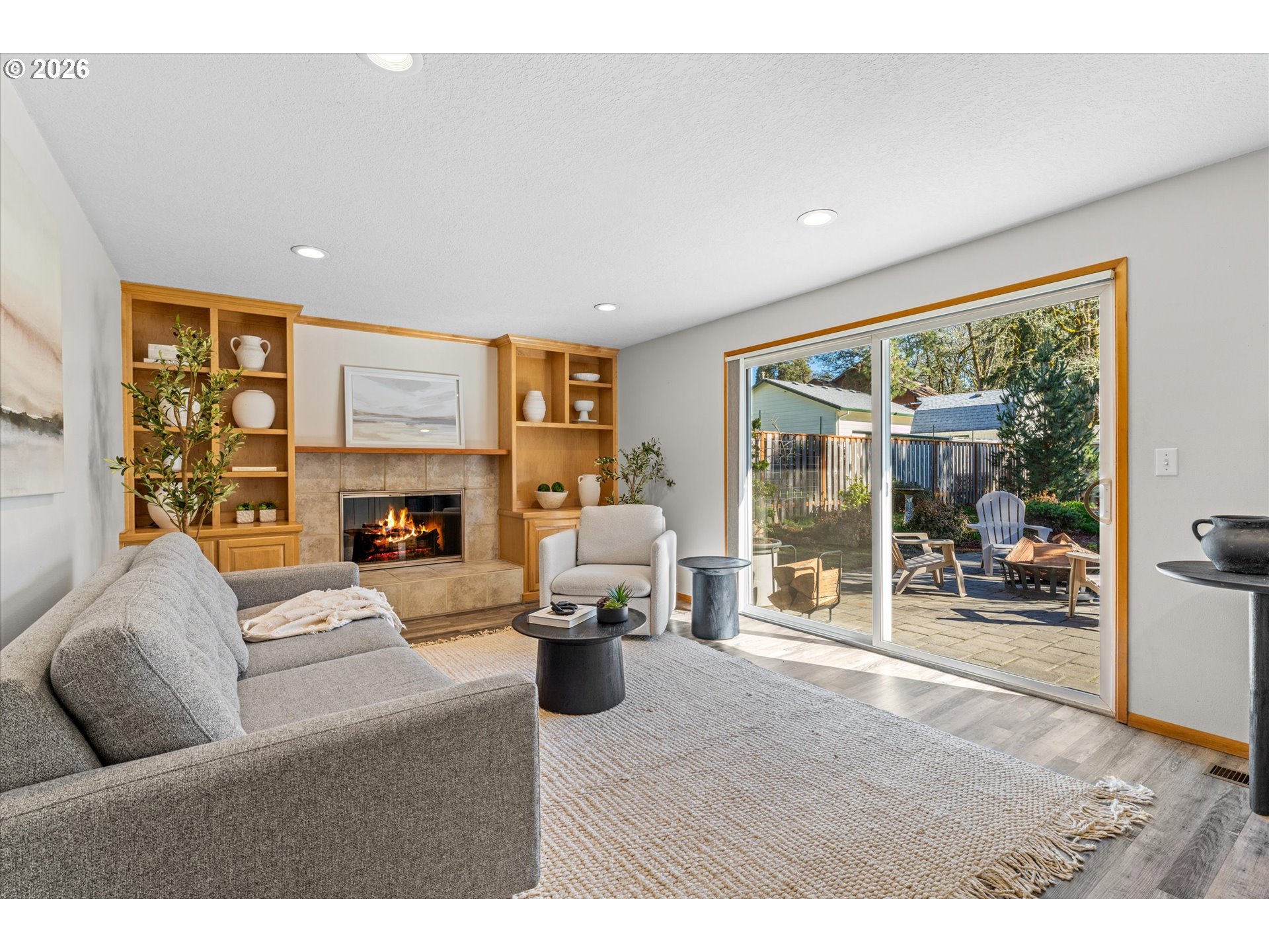 - Absolutely stunning one-level home with a true mid-century vibe—this one is a must-see. Situated on .28 acres in a highly desirable location, this 4-bedroom, 2-bath home is filled with natural light and offers seamless indoor-outdoor living.The inviting family room features a cozy wood-burning fireplace, and both the family and living rooms showcase oversized 8-foot sliding doors that open wide to the patio and backyard—perfect for entertaining or simply enjoying the view. Recent updates include a new 30-year roof and a beautifully built pergola that extends your living space outdoors.The kitchen offers stainless steel appliances, including a new microwave and new dishwasher, along with a new sink and updated hardware throughout the home for a fresh, modern feel. There’s also a dedicated laundry/utility room for added convenience.The private backyard is a standout, complete with mature landscaping, a spacious patio, a large pergola, and a pollinator-friendly garden that adds color and charm throughout the seasons.All of this just minutes from Nike, shopping, dining, and nearby walking trails—offering the perfect balance of comfort, style, and location.