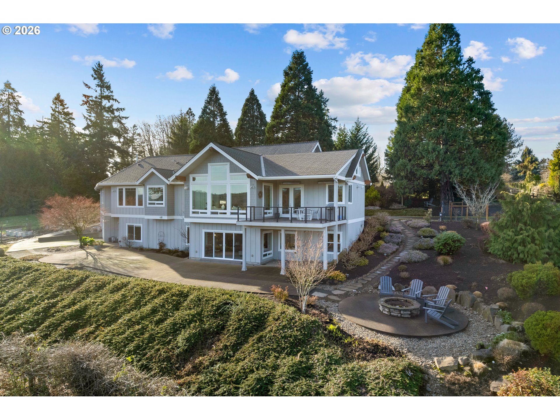 - Discover the perfect blend of modern luxury and private tranquility on this private 2.37-acre retreat. Designed for modern living and gracious entertaining, this custom home offers an open, flowing layout with expansive views of rolling hills and distant Mt. St. Helens. Built with meticulous attention to detail, the home features a vaulted great room with soaring ceilings, hand-scraped hardwood floors, and classic wainscoting throughout the main level. The light-filled design creates a seamless connection between indoor spaces and the surrounding landscape.The chef’s kitchen is both beautiful and functional, showcasing high-end appliances, custom cabinetry, and generous countertops—ideal for entertaining or daily living. The thoughtfully designed floor plan includes a main level owner’s suite, along with dedicated work-from-home and flexible living spaces. Outdoor terraces and covered patios boast views of surrounding acreage perfectly set for gardens, small livestock, or hobby farming, all while preserving privacy and open views. Additional amenities include a whole home generator, dog wash in garage bathroom, along with lower-level 2nd garage for tractor storage and workshop with roll-up door. This exceptional home blends a rare combination of refinement and freedom—truly a sanctuary for those who value space, privacy, and modern elegance. Conveniently located with easy access to I-205, Lake Oswego, Wilsonville, and nearby amenities.