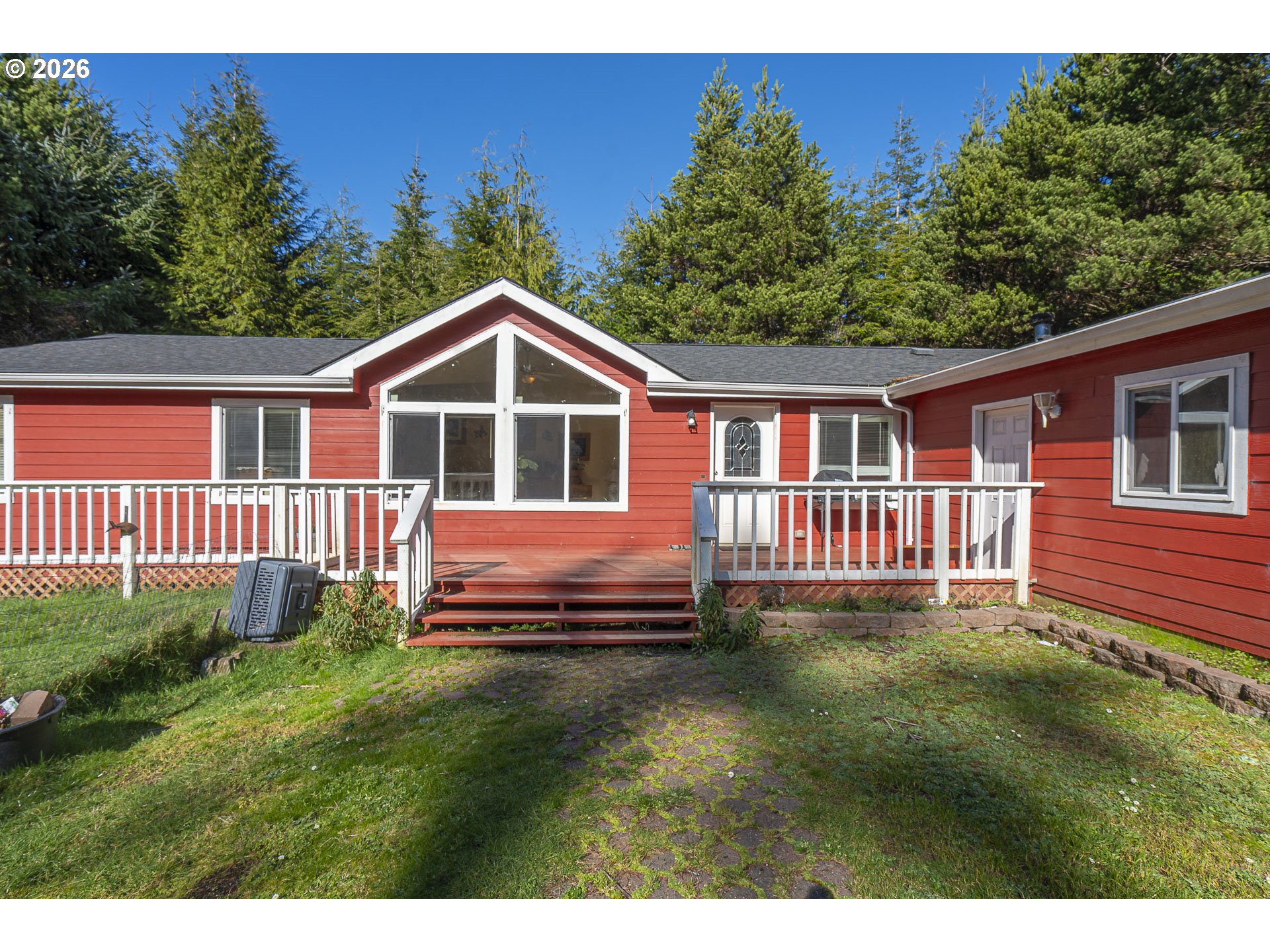 - Private one acre retreat in Waldport Oregon just five minutes to beach access in a quiet private neighborhood. This 3 bedroom, 2 bath manufactured home offers the peaceful Oregon Coast lifestyle buyers dream about, where mornings start with fresh coastal air and evenings end by the fire. Bamboo floors and real wood cabinetry add warmth throughout, while large windows fill the home with natural light. The spacious kitchen features hickory cabinets and a butcher block island, perfect for gathering. Outside, enjoy mature trees, garden space, deck and garage with room to truly relax and unwind near the beach.
