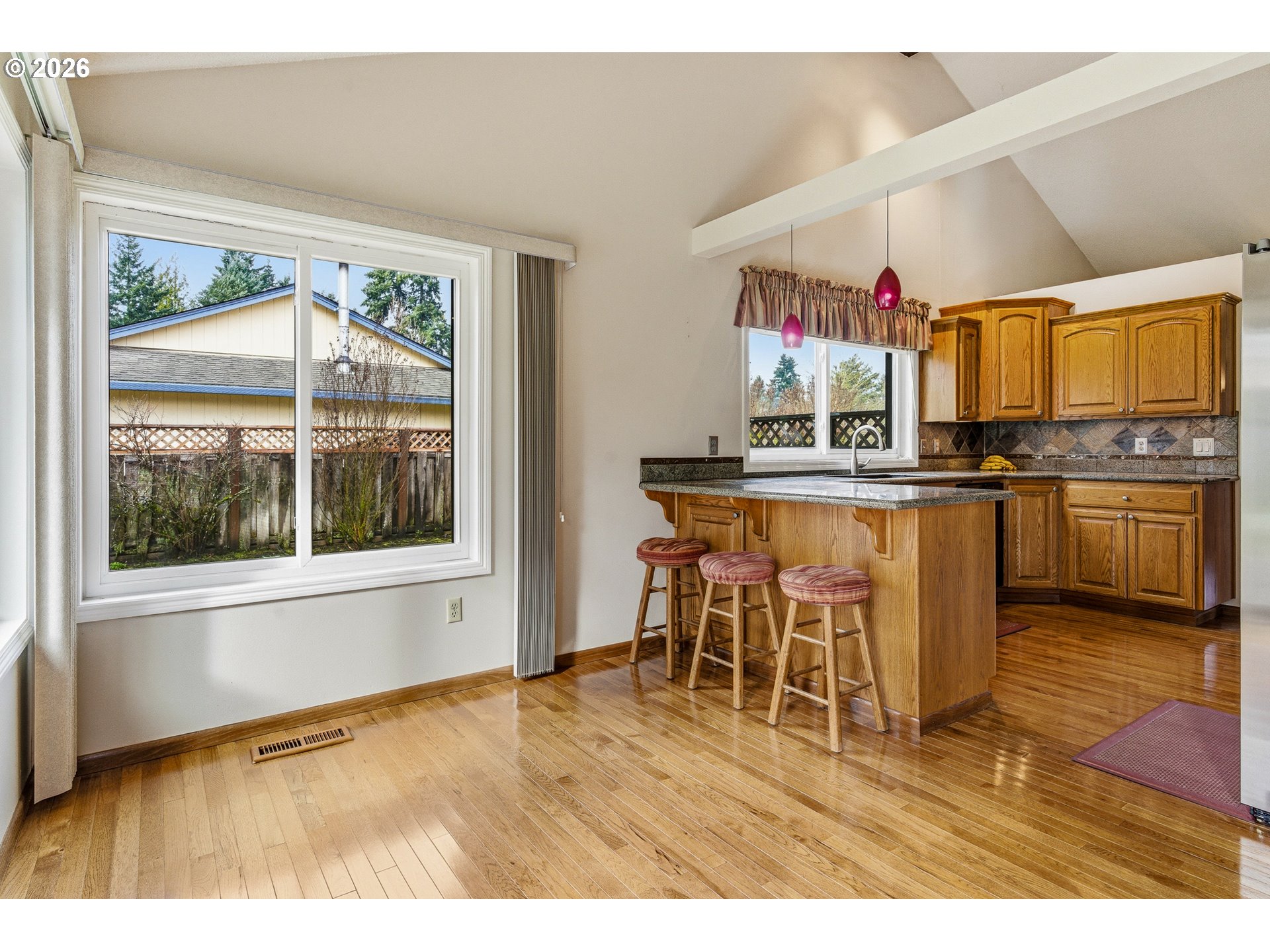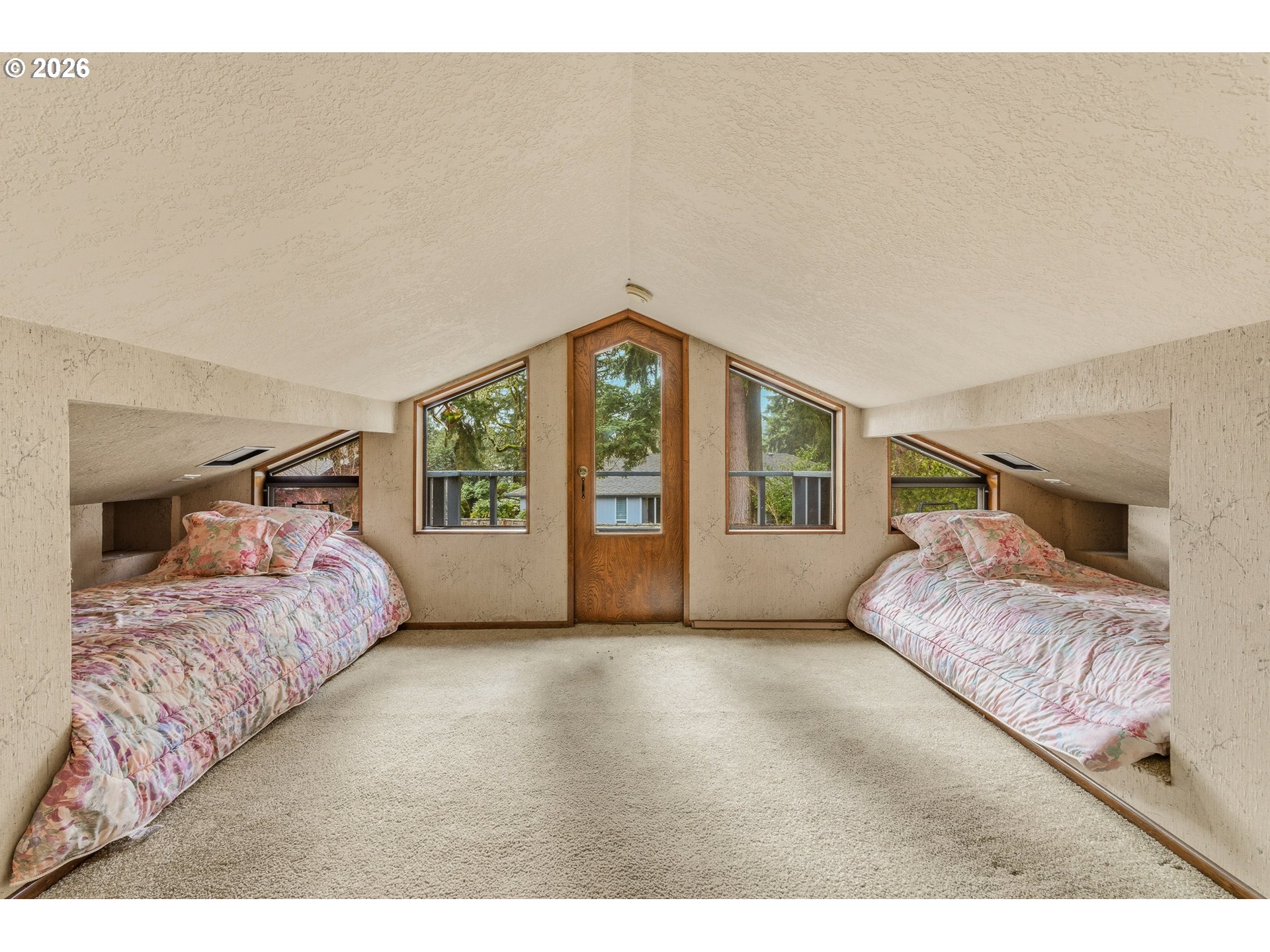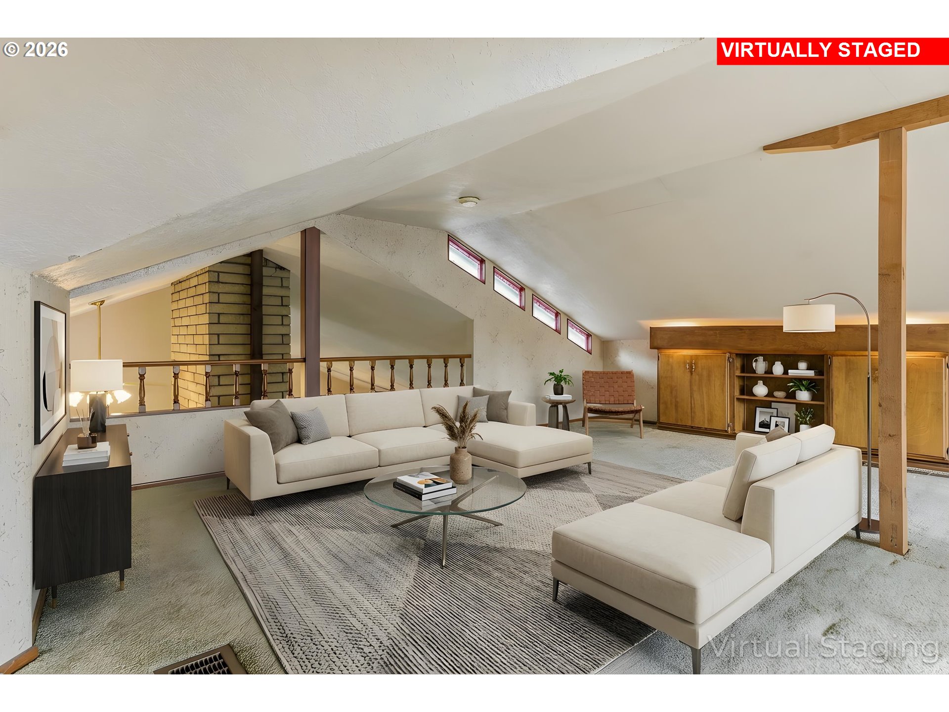 - Step into timeless charm in this 4 bed, 2 bath Beaverton home filled with character and warmth. A stunning double-door entry with stained glass welcomes you into a vaulted family room with exposed wood beams and a cozy fireplace, while a separate living room also features beams and its own fireplace for added ambiance. Wood floors run throughout most of the main level, connecting the formal dining room and a kitchen equipped with stainless steel appliances. All four bedrooms are on the main floor, including one set up as an office. The primary suite offers an updated en suite bath with a glass walk-in tiled shower and a private sliding door to the backyard. A hall bath serves the additional bedrooms. Upstairs you’ll find a large flex/bonus space plus an expansive loft with two beds for visitors and a deck overlooking the yard. Situated on a huge lot, the fully fenced backyard is a private retreat with mature landscaping, a garden area, tranquil koi pond, and a stone paver patio accessed by sliding doors—perfect for indoor-outdoor living. An attached two-car garage completes this truly special property.