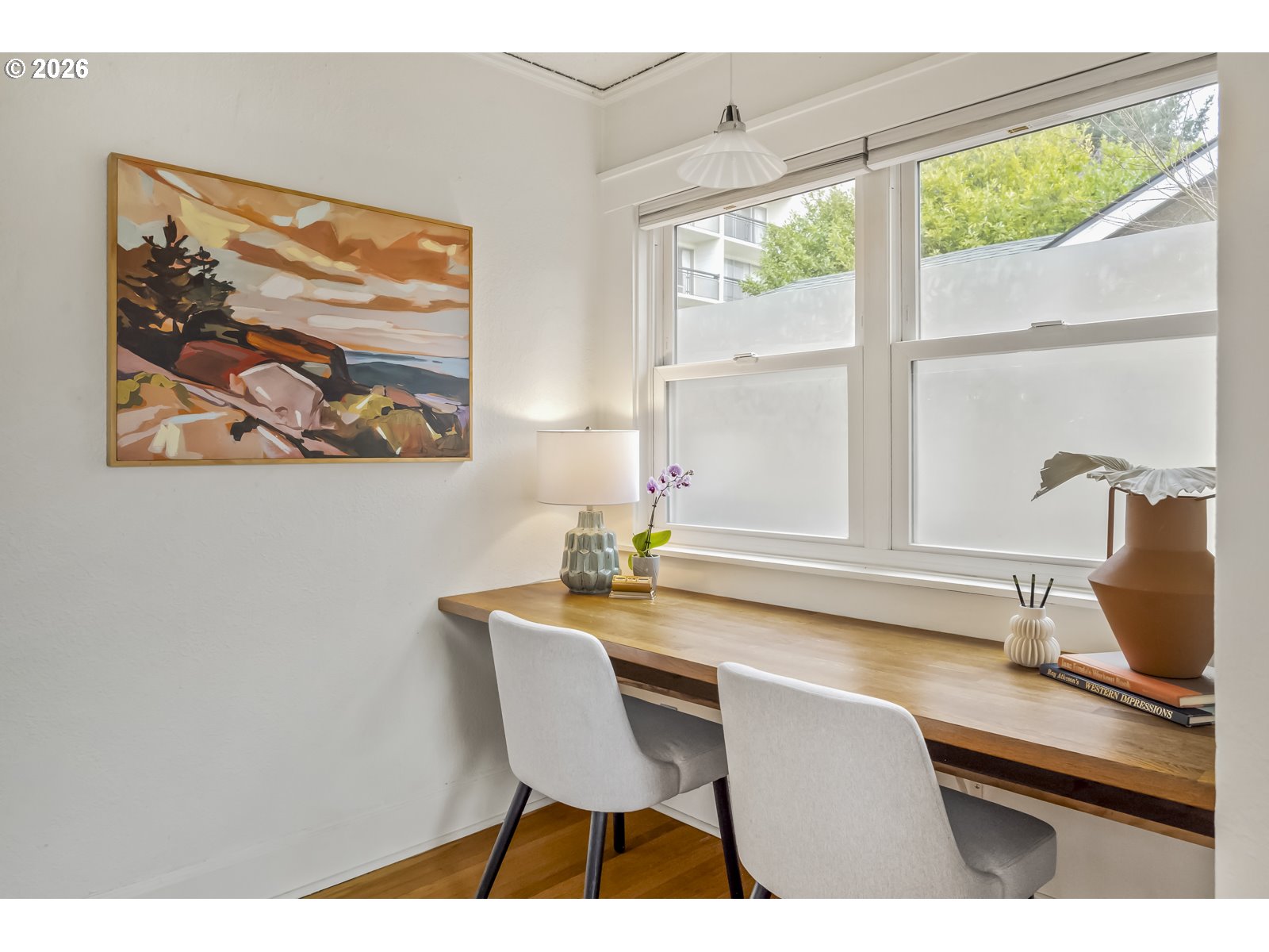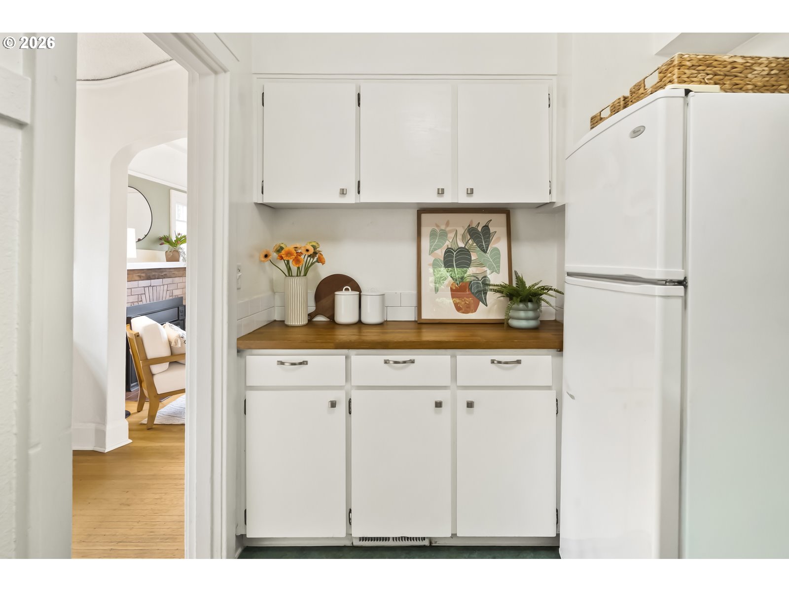- Perched above the street like it knows it’s something special, this light-filled bungalow sits on one of the most coveted lots on the block. Inside, classic charm gets a fresh glow-up. Crisp paint and updated lighting make every room feel bright and happy, while the darling vintage kitchen steals the show—complete with marmoleum floors, refreshed butcher block counters, updated hardware, and modern lighting that feels just right.Off the kitchen, a sweet little nook is ready to flex—morning coffee spot, sunny breakfast perch, or an utterly charming home office wrapped in sunshine. The main floor features hardwood floors, a cozy living room with a gas insert and built-ins, and a dining room accented by a vintage fixture and corner cabinetry. One bedroom on the main level offers the option for a primary suite or perfect guest quarters.Upstairs, two spacious bedrooms shine with walls of new windows that flood the space with natural light.So many possibilities await downstairs. With a fully permitted fourth bedroom, second bath, and separate exterior entrance, the lower level is perfectly suited for a private primary suite, a cozy family room retreat, or even a potential income-producing space with the addition of a kitchenette.The fully fenced backyard is a true sanctuary - private, peaceful, and dotted with fruit trees, including fig, apple, and pear. Updated electrical and earthquake strapping in the basement adds peace of mind.All of this in a prime location near top-rated Laurelhurst and Grant High Schools, and just minutes from neighborhood favorites like Tabor Tavern, Big's Chicken, Oly's Pizza, and Wajan, plus endless coffee options. Spend your mornings strolling through Mount Tabor Park or Laurelhurst Park, with Providence Portland Medical Center just around the corner.Privacy, flexibility, and timeless charm—all wrapped into one exceptional bungalow.