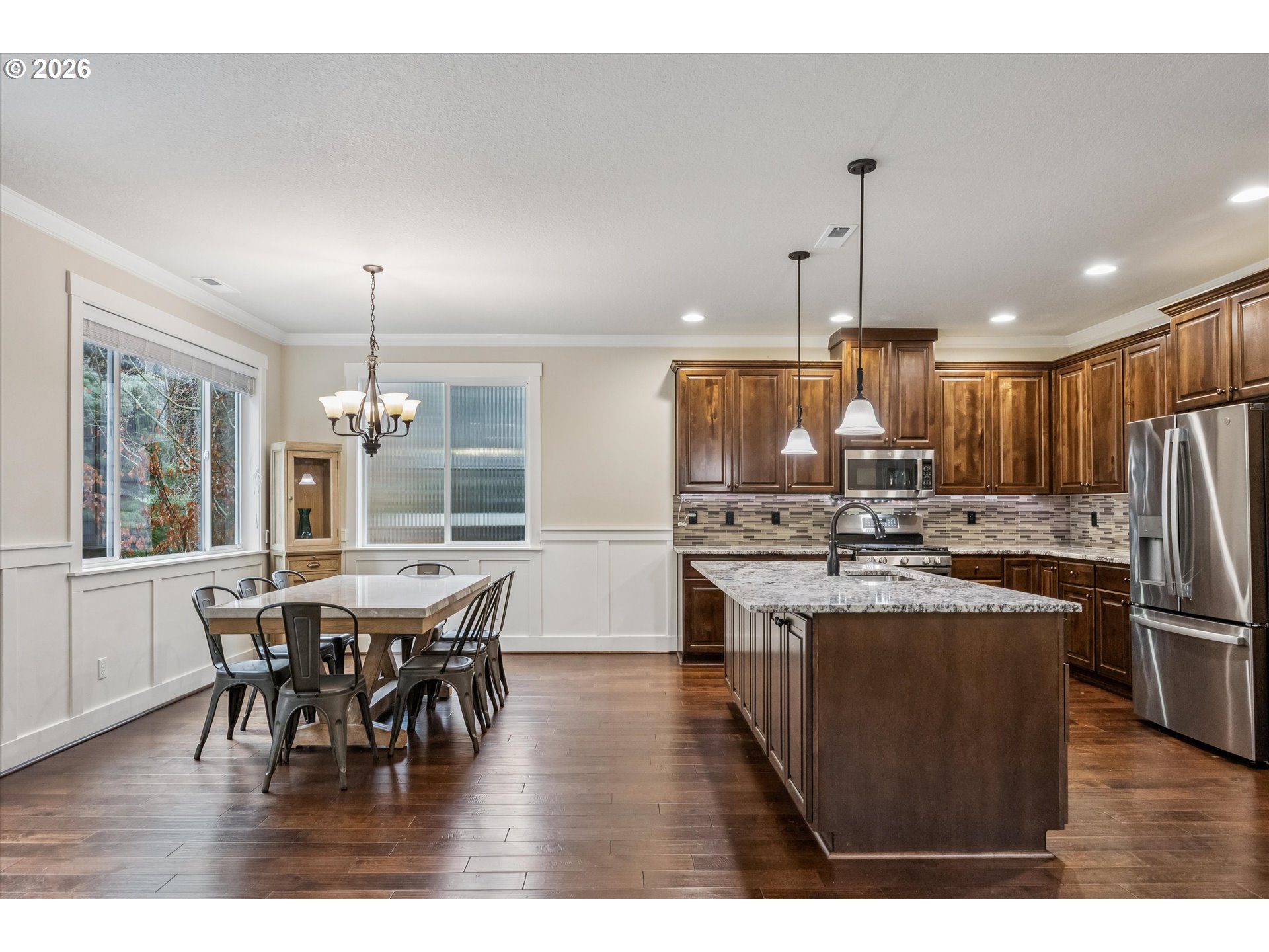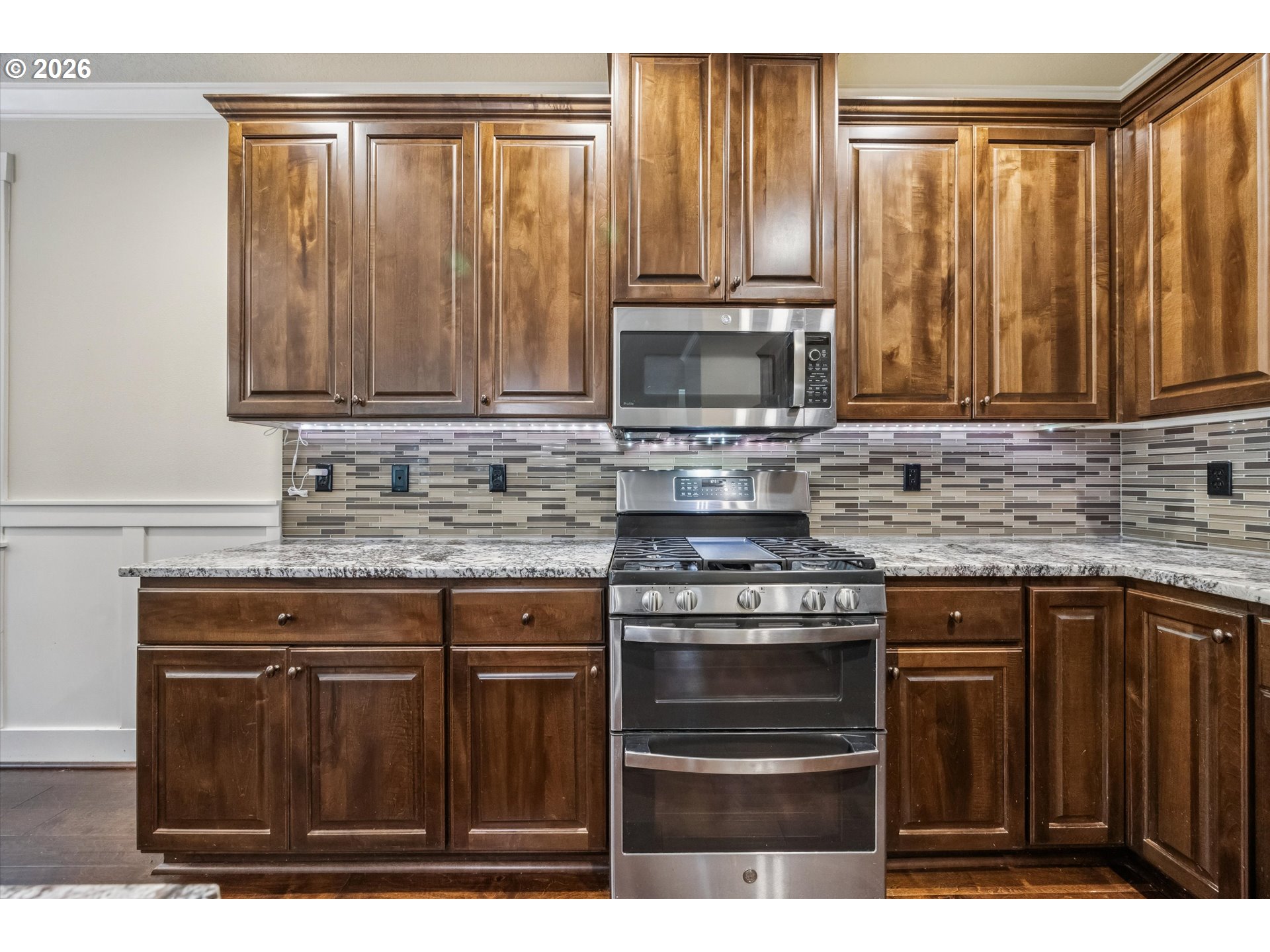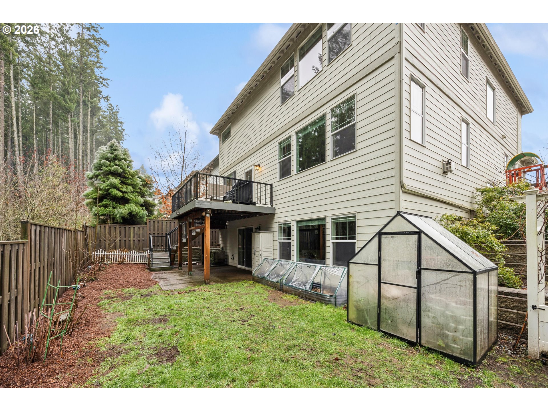 - Beautifully maintained 4 bedroom home with office and daylight basement in a well established Beaverton community. This thoughtfully designed home features wood floors throughout the main and upper level including stairs, coffered ceiling in the spacious primary suite, and expansive views of trees/protected native greenspace from the back and mountain/valley views on clear days from the front. The primary bath includes newly updated tile in the shower, granite counters, dual niches in the shower, soaking tub, and two closets, one is a walk in.The main level offers an office with wainscoting, open railing staircase, and a light filled great room with upgraded floor to ceiling tile fireplace, crown molding, and wood wrapped windows. The kitchen includes a large granite island with additional built in storage, GE stainless appliance package, five burner gas range with griddle, double oven, pantry, soft close drawers, and under cabinet led lighting. Recessed lighting and pendant lights add warmth throughout the space.Step out to a composite deck with iron railing and stairs leading to the fully fenced backyard. The yard includes raised garden beds, greenhouse, arbors with established grapes, fruit trees and bushes, engineered retaining wall, play structure, patio area, and landscape lighting. The daylight basement offers a large flexible living space with recessed lighting, slider to patio, additional electric fireplace, zonal heating for the basement.Additional features include faux wood blinds, Govee LED accent lighting in the upstairs front facing bedroom windows to compliment the exterior permanent Govee holiday lights, Nest thermostat, overhead garage storage and shelving, two water heaters, AC, sprinklers front and back, and HOA maintained front landscaping. Convenient access to parks, schools, shopping, and major employers in the Sunset Corridor.