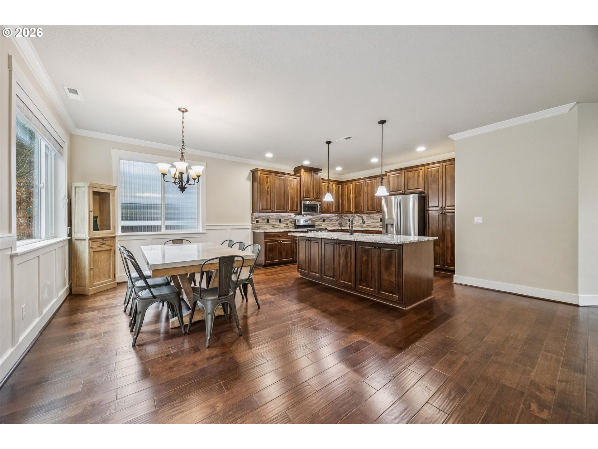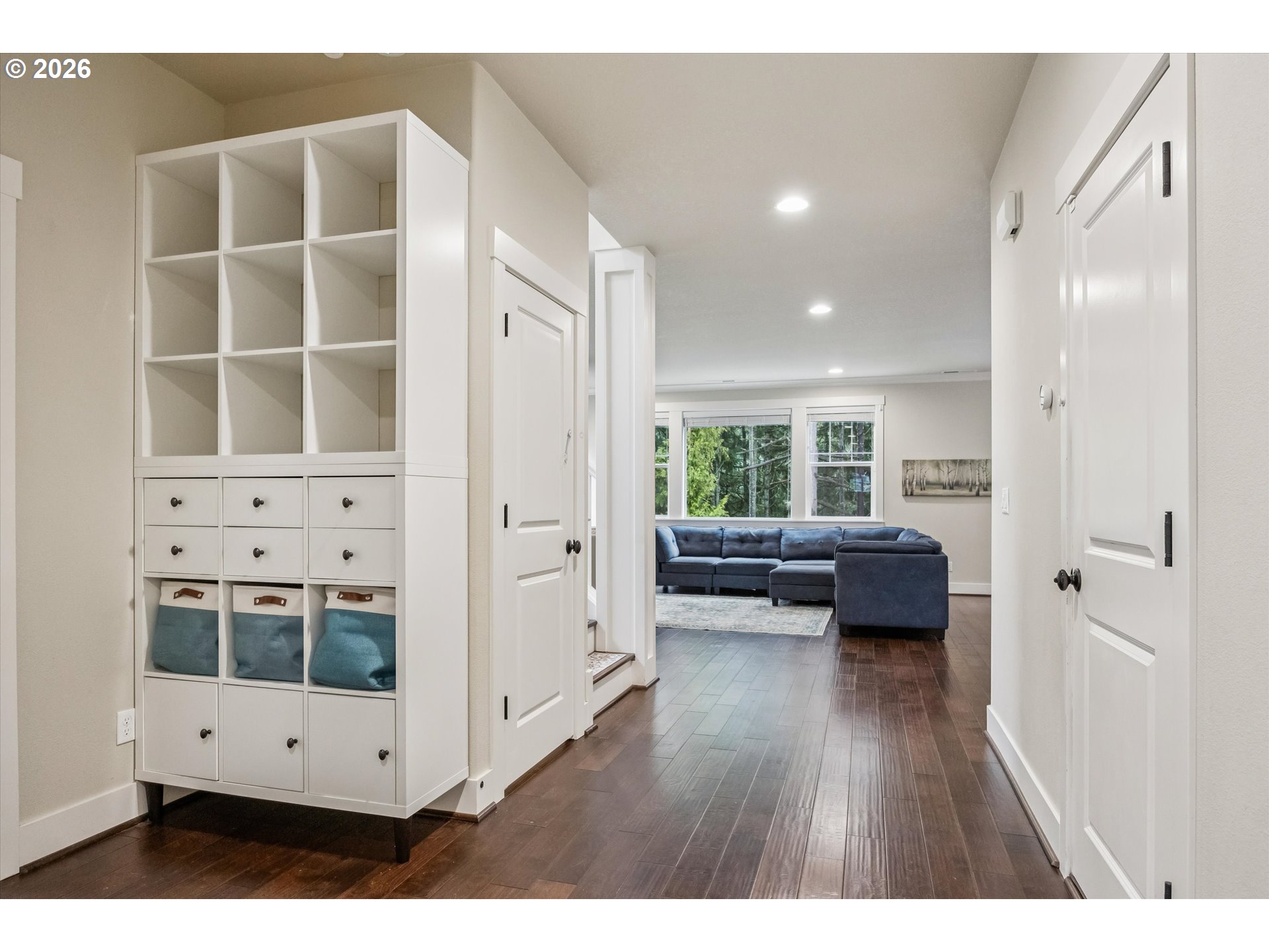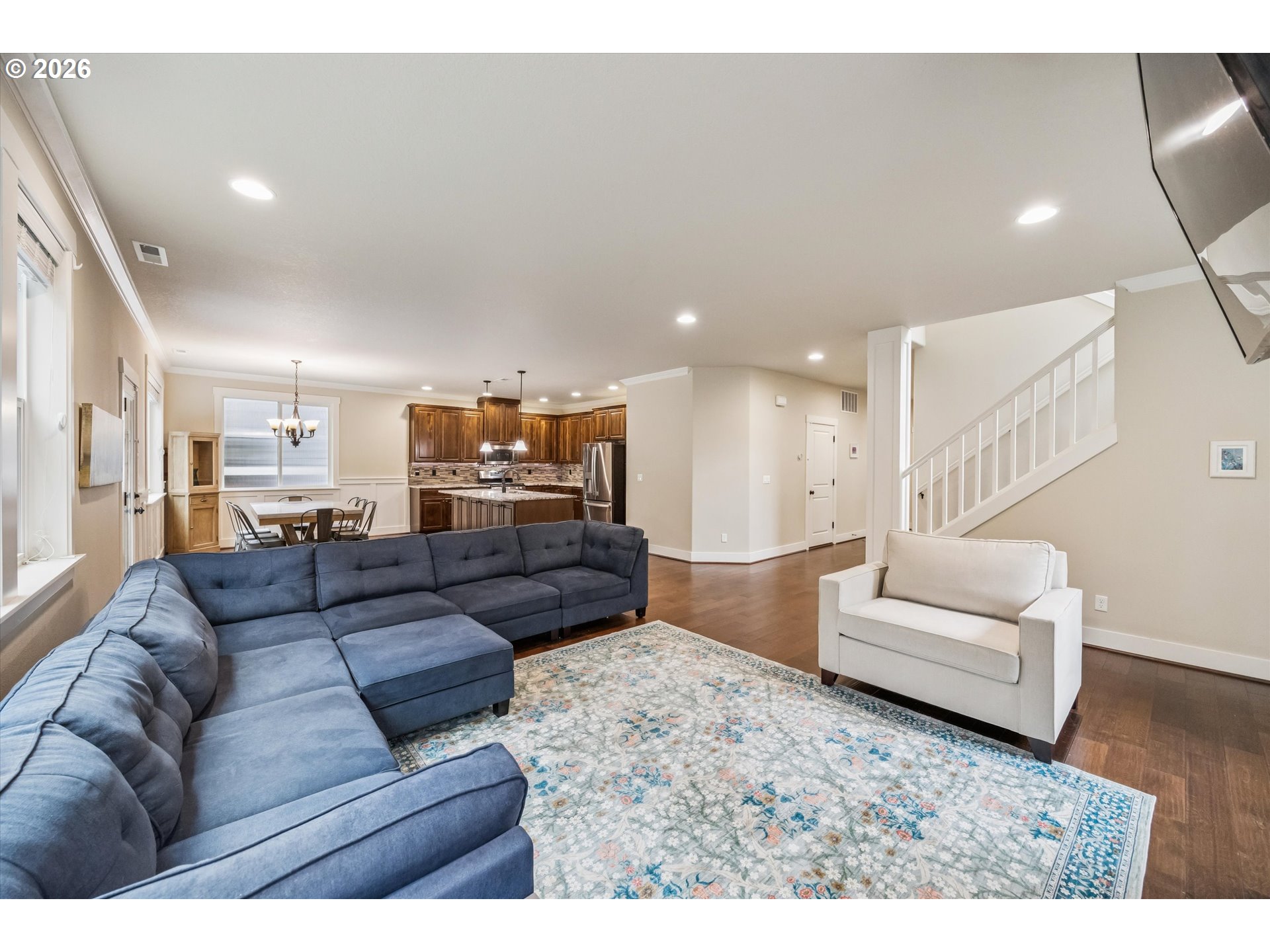- Beautifully maintained 4 bedroom home with office and daylight basement in a well established Beaverton community. This thoughtfully designed home features wood floors throughout the main and upper level including stairs, coffered ceiling in the spacious primary suite, and expansive views of trees/protected native greenspace from the back and mountain/valley views on clear days from the front. The primary bath includes newly updated tile in the shower, granite counters, dual niches in the shower, soaking tub, and two closets, one is a walk in.The main level offers an office with wainscoting, open railing staircase, and a light filled great room with upgraded floor to ceiling tile fireplace, crown molding, and wood wrapped windows. The kitchen includes a large granite island with additional built in storage, GE stainless appliance package, five burner gas range with griddle, double oven, pantry, soft close drawers, and under cabinet led lighting. Recessed lighting and pendant lights add warmth throughout the space.Step out to a composite deck with iron railing and stairs leading to the fully fenced backyard. The yard includes raised garden beds, greenhouse, arbors with established grapes, fruit trees and bushes, engineered retaining wall, play structure, patio area, and landscape lighting. The daylight basement offers a large flexible living space with recessed lighting, slider to patio, additional electric fireplace, zonal heating for the basement.Additional features include faux wood blinds, Govee LED accent lighting in the upstairs front facing bedroom windows to compliment the exterior permanent Govee holiday lights, Nest thermostat, overhead garage storage and shelving, two water heaters, AC, sprinklers front and back, and HOA maintained front landscaping. Convenient access to parks, schools, shopping, and major employers in the Sunset Corridor.