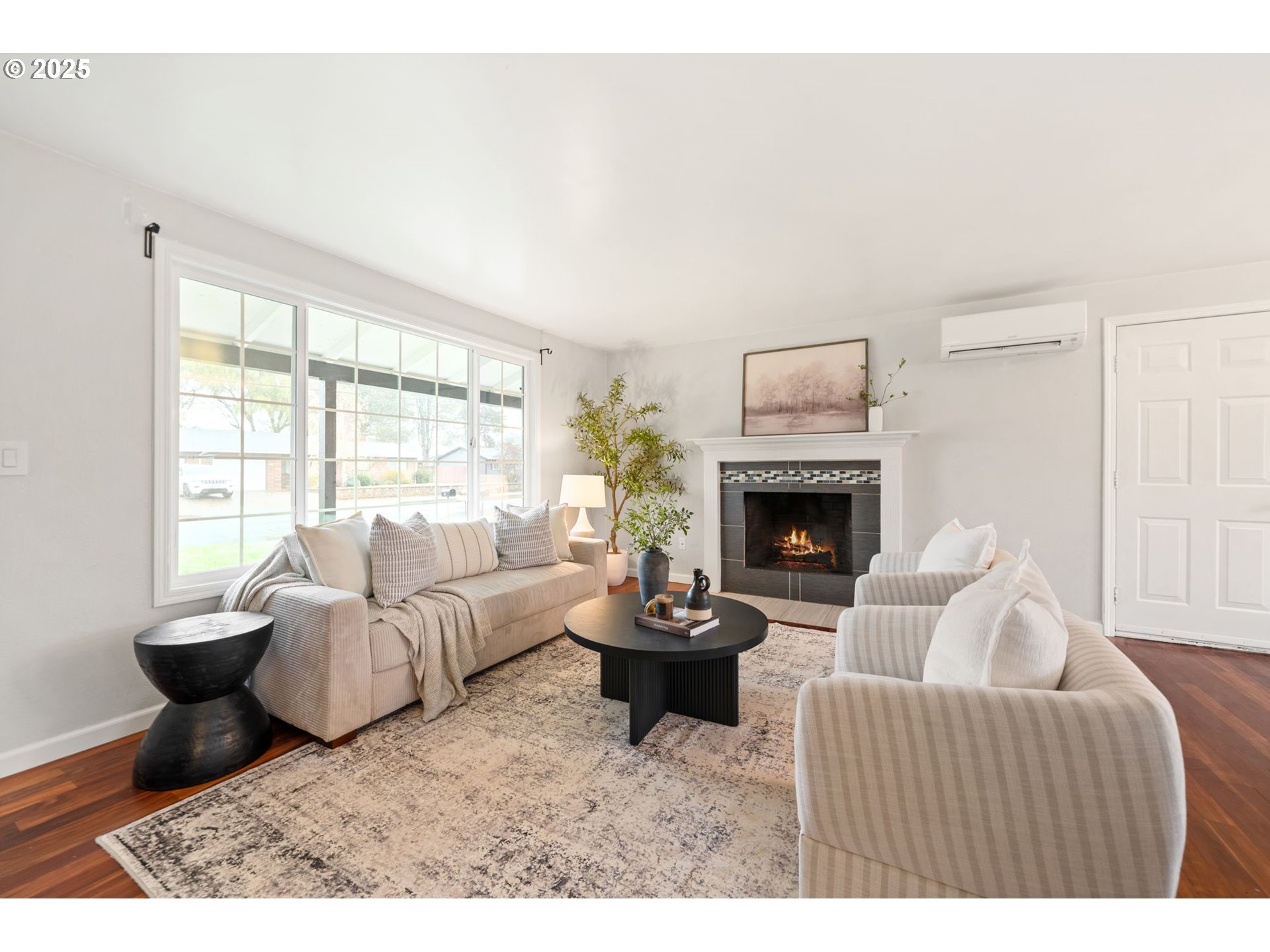 - Dialed-In One-Level Living on a Big Lot! Move-in ready with new exterior paint, carpet in all 3 bedrooms, stylishly updated baths, and a bright kitchen featuring quartz counters, under mount kitchen sink and stainless-steel appliances (all included!). Hardwood floors run through the main living areas. Enjoy the wood burning fireplace. French doors open to a spacious fenced backyard and patio—ideal for entertaining, pets, or play. Washer and dryer remain with home. AHS home warranty included. [Home Energy Score = 8. HES Report at https://rpt.greenbuildingregistry.com/hes/OR10243008]