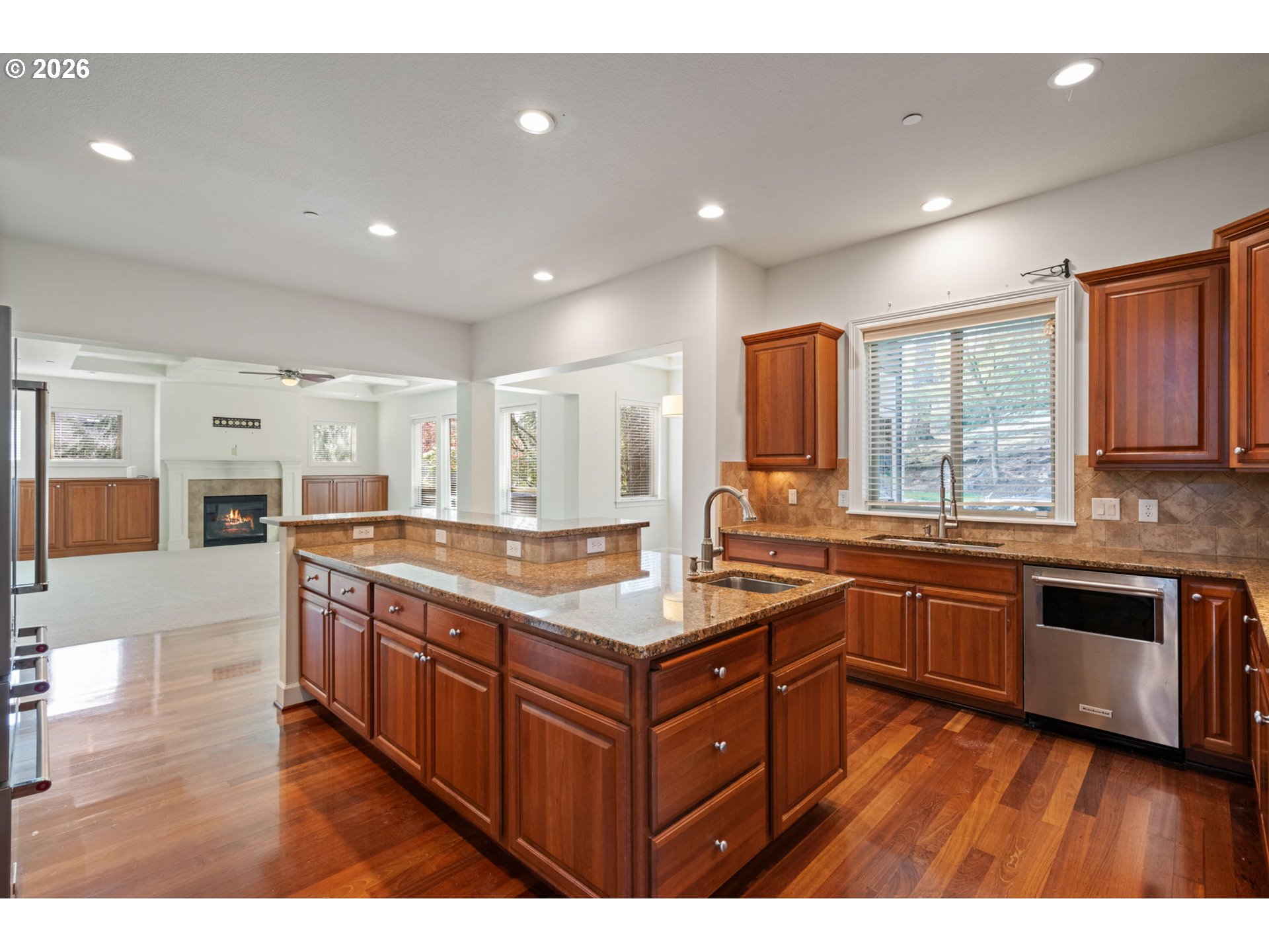 - Experience elevated living in this architecturally rich executive home in sought-after Lacamas, where lifestyle meets design. Surrounded by access to boating, scenic trails, and golf, this residence offers a rare blend of luxury, privacy, and everyday comfort.A grand entry with a double staircase sets the tone, leading into light-filled interiors defined by soaring cathedral ceilings, expansive floor-to-ceiling windows, and stunning Brazilian cherry hardwood floors. The thoughtfully designed layout includes a spacious great room with fireplace and custom built-ins, a professional den with rich millwork, and a versatile bonus room ideal for media, fitness, or play.The chef’s kitchen is built for both function and entertaining, featuring a slab granite island, convection double ovens, custom cherry cabinetry, walk-in pantry, and integrated wine storage.Retreat to the luxurious primary suite with its own fireplace, dual walk-in closets, and spa-inspired bath with dual vanities.Outdoors, the lush, private backyard creates a true sanctuary—complete with a striking water feature, mature landscaping, expansive patio, and a serene, park-like setting that feels miles from it all.