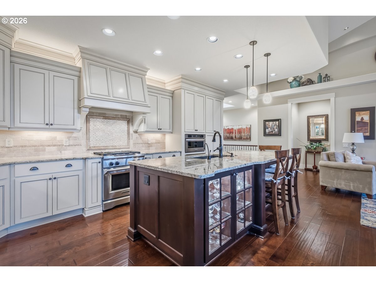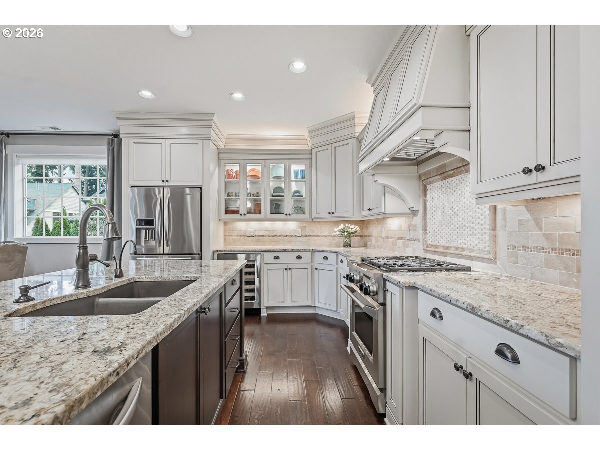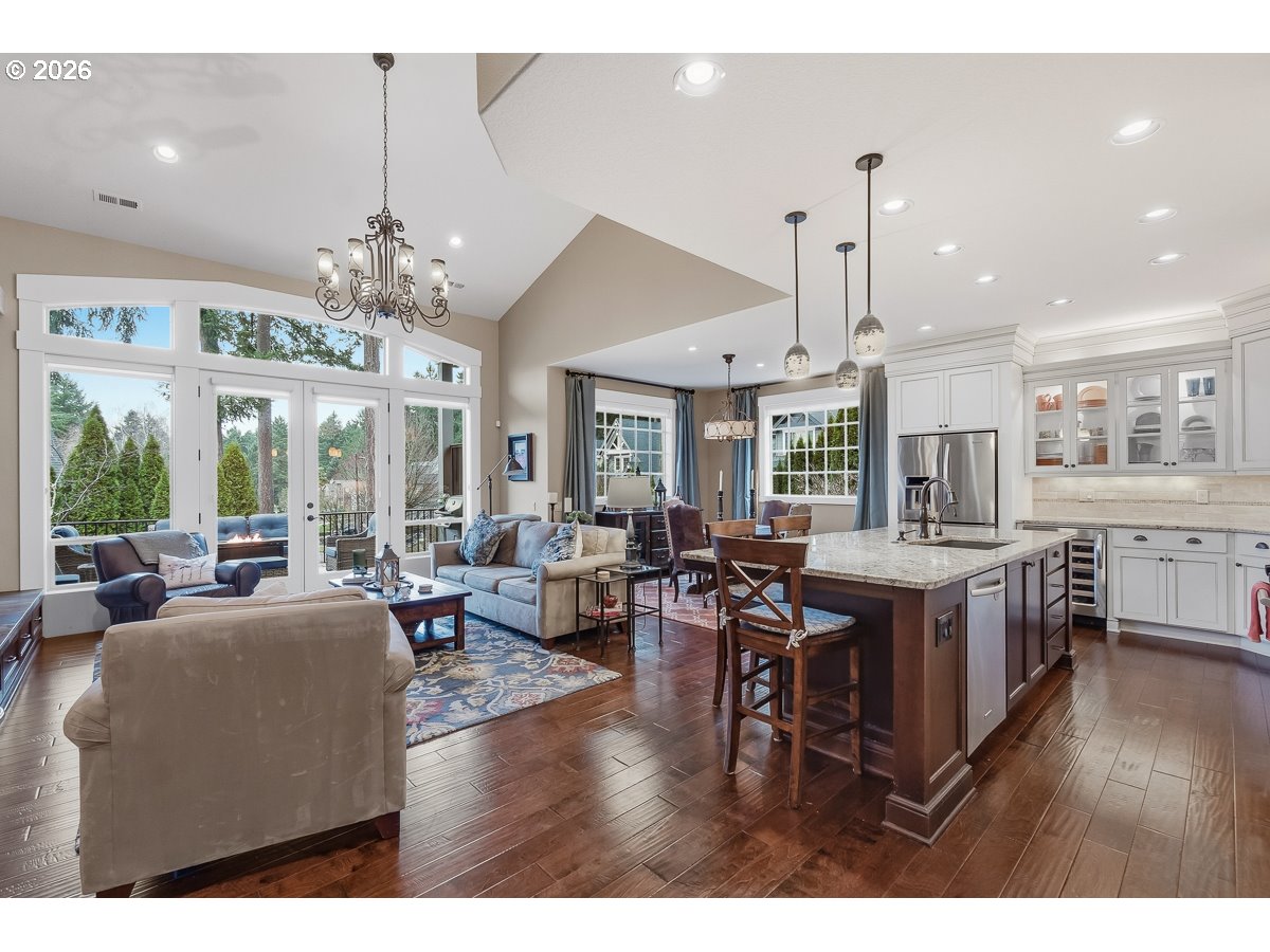 - Incredible SW Beaverton home built by Ridgecrest Homes in 2013! Desirable great room floorplan with main-level primary suite and daylight basement. The primary suite features vaulted ceilings, a spacious walk-in closet (W/ stackable washer and dryer), soaking tub, and walk-in shower. Stunning kitchen with custom cabinetry, granite countertops, stainless steel appliances, and a large island - ideal for entertaining. The great room offers soaring vaulted ceilings, a gas fireplace with built-ins, and access to a covered balcony for seamless indoor-outdoor living. Engineered hardwood floors throughout much of the main level. Ev charging in the garage! The daylight lower level offers a spacious bonus room with a custom built-in wine bar and direct access to the professionally landscaped, low-maintenance backyard. The fully fenced yard features a covered patio, multiple seating areas, tranquil water features, and artificial turf - perfect for year-round enjoyment. Modified Mascord plan(1221B). Located in the highly desirable Mountainside High School area with convenient access to Nike and other major high-tech employers.