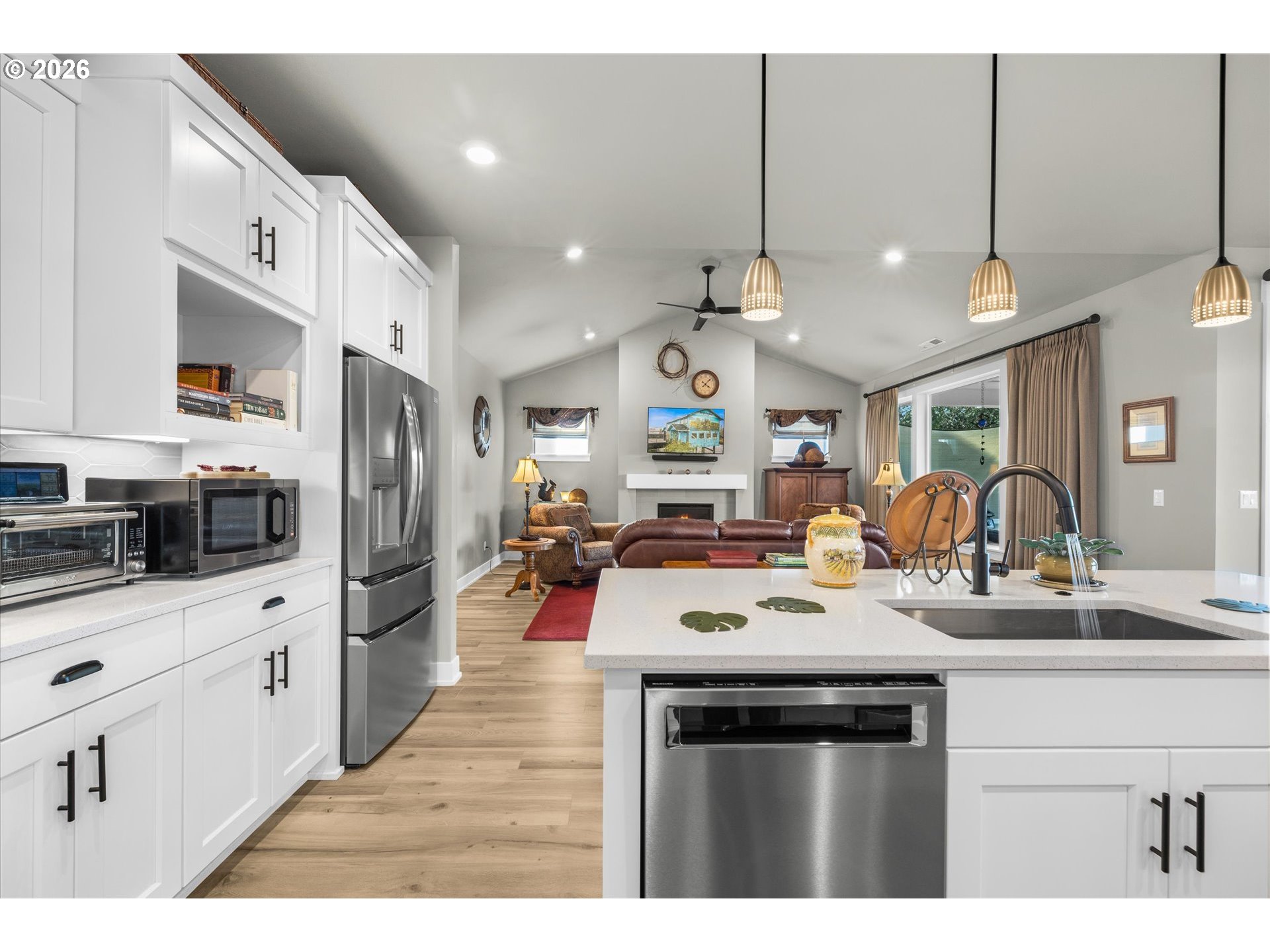 - Beautiful home just waiting for you! This spacious 5-bedroom, 3-bath home offers convenience of main-level living with an owner's suite plus two additional bedrooms on the main floor. Enjoy the feel of a ranch style home with extra living space upstairs- perfect for guests, hobbies or a growing household-making this an ideal forever home.The kitchen features quartz countertops, an extensive island, stainless steel appliances, and plenty of room to gather together and entertain. Additional highlights include a tankless water heater, relaxing soaking tub, air conditioning, and a three-car garage- big enough for both him and her (and then some) custom draperies and two yr old smart tv with mount and speaker to stay.
