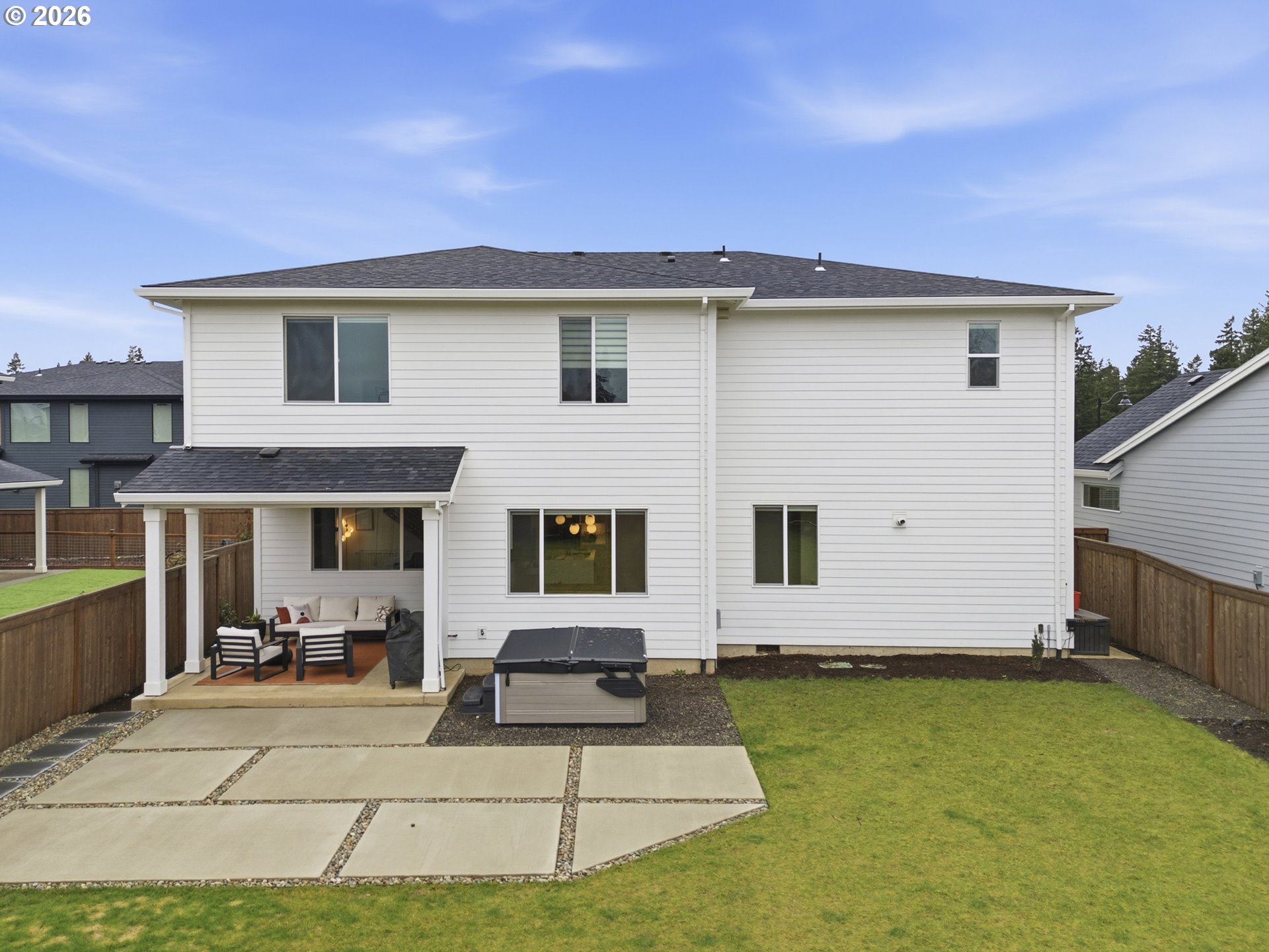 - Located in the desirable Frog Pond neighborhood, built in 2024 by Stonebridge Homes NW, this like-new home delivers the best of new construction without the wait. Set on one of the largest lots in the community—nearly ¼ acre, it offers a rare combination of space, elevated upgrades, and refined outdoor living.The home features 3,335 sq ft that include 5 bedrooms, 2.5 baths, and a generous bonus room, offering ideal flex space for media, work, or play. The main level is designed for connection, function and entertaining, anchored by a well-appointed kitchen with a quartz waterfall island, gas range, generous storage, butler's pantry, and seamless flow into the living and dining areas. Owners’ entry with built-in storage and desk space provides a functional transition from garage to home. Upstairs upgraded 9’ ceilings and convenient laundry enhance everyday comfort and functionality.Outdoor living is a true highlight with an expansive backyard patio ideal for entertaining and dining, a BBQ gas line, and a large yard rarely found in newer construction. A welcoming front seating area, ample driveway, and 2.5-car garage complete the home’s thoughtful design.Enjoy a connected lifestyle with easy highway access, neighborhood paths and parks, and close proximity to Memorial Park, Willamette River recreation, and the new Frog Pond Primary School—blending outdoor living, community, and convenience in one of Wilsonville’s most sought-after areas. Buyer to do due diligence on school boundaries. An exceptional, turnkey offering.