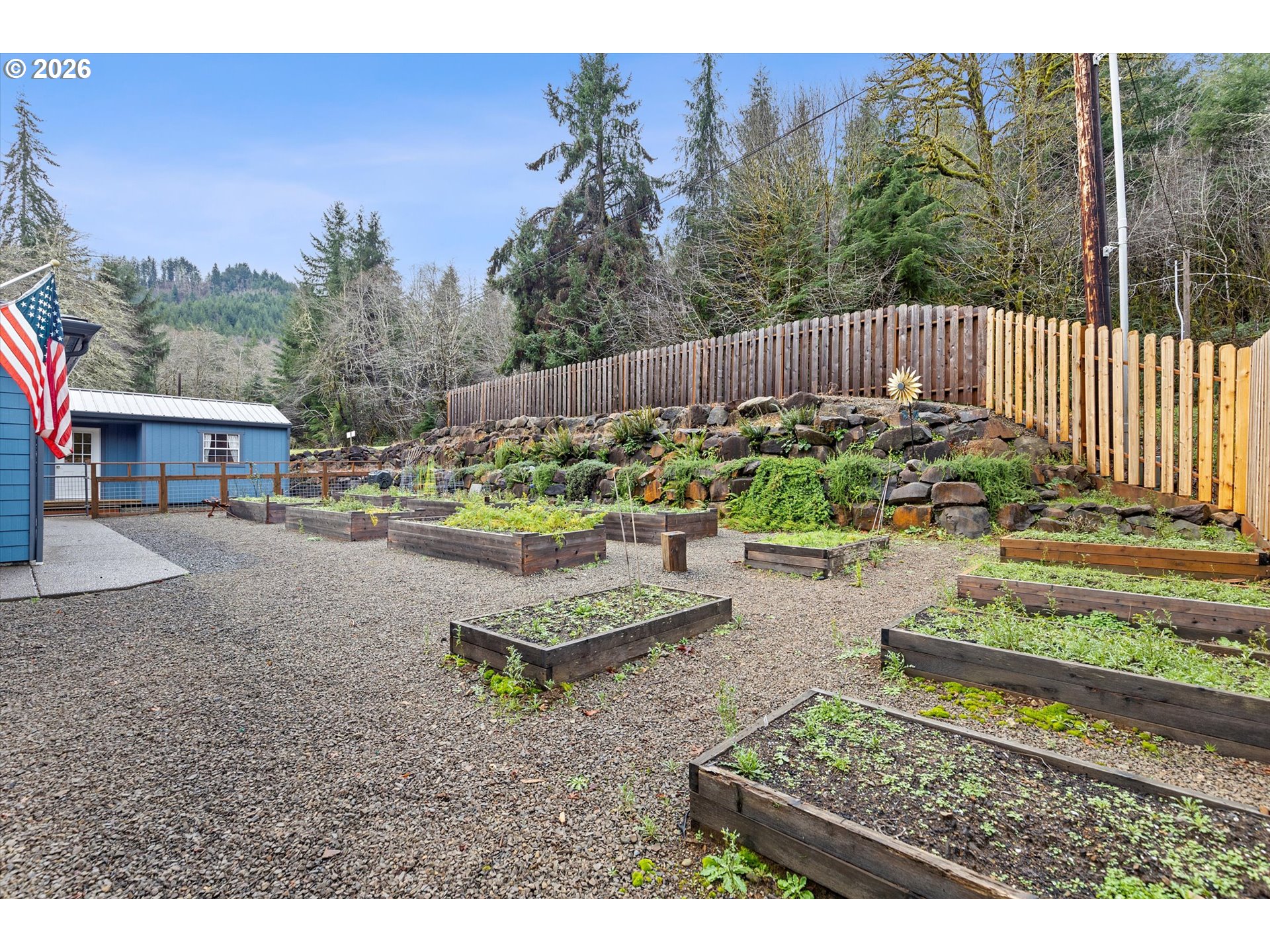 - Covered Patio, Fenced, Fire Pit, Free-Standing Hot Tub, Garden, Gazebo, Outbuilding, Public Road, RV Parking, RV/Boat Storage, Second Garage, Storm Door(s), Tool Shed, Workshop, Yard