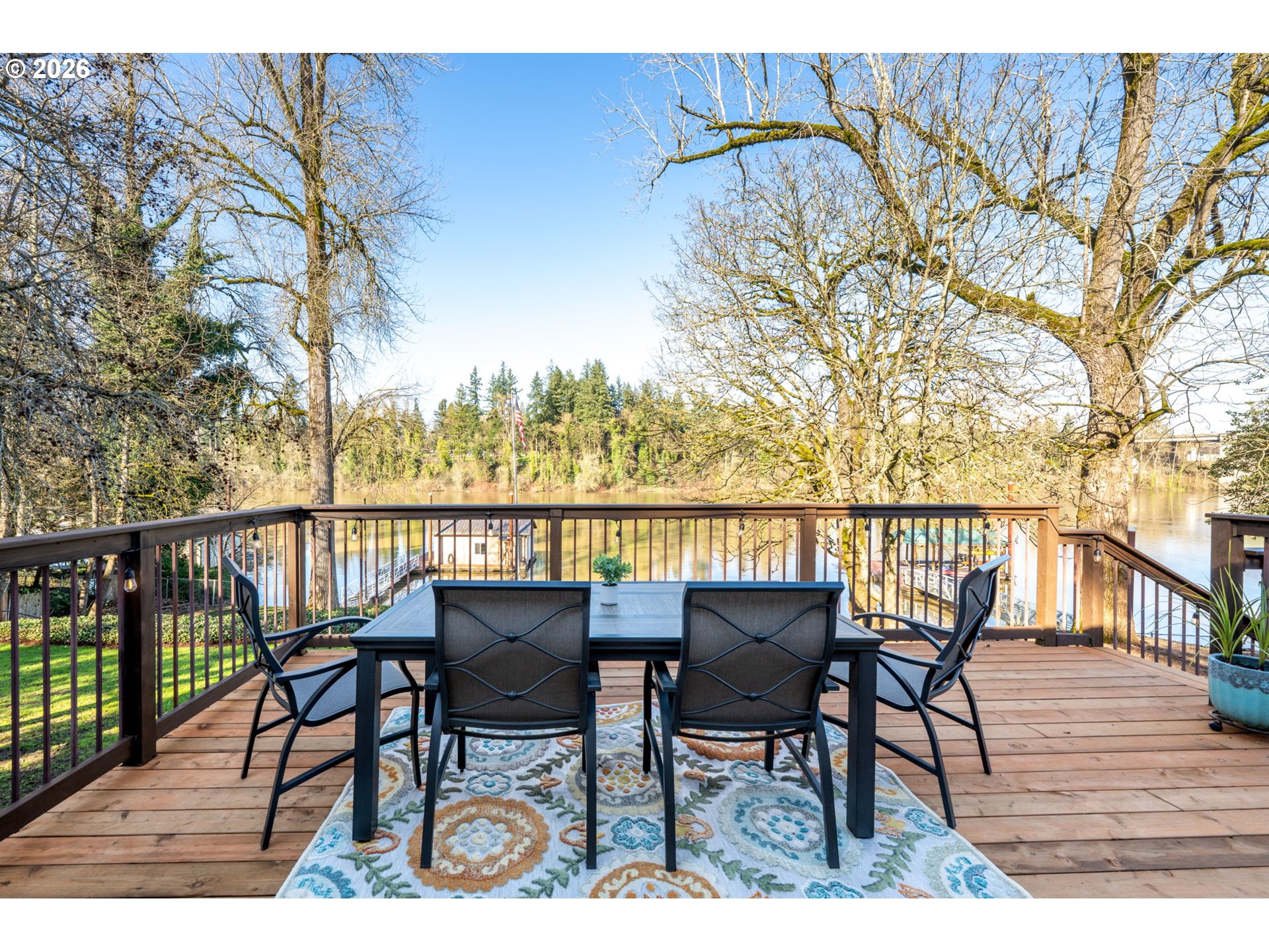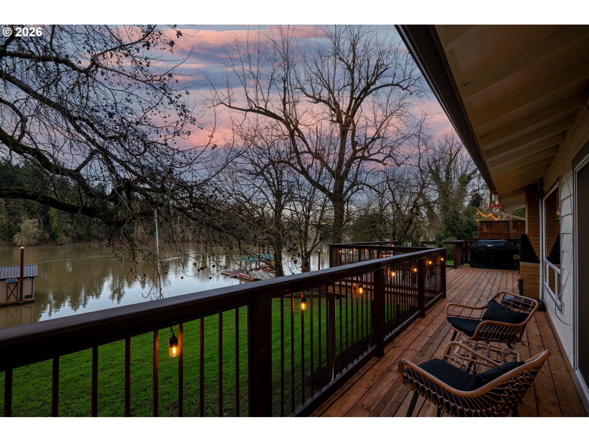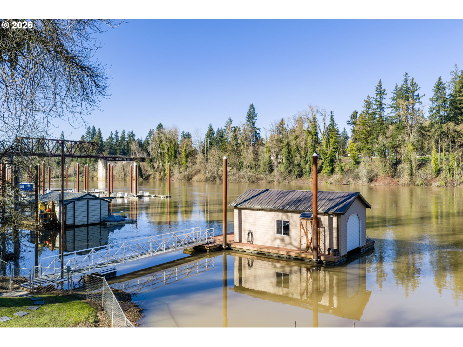 - Live your dream in a resort-style waterfront property on a prime lot with 132 feet of Willamette River frontage, ideally positioned in a desirable no-wake zone. With direct water access, this is a true haven for water-sport enthusiasts—boat, kayak, fish, or simply unwind while taking in beautiful views and abundant wildlife, including eagles, hawks, and an array of fish. Set on just shy of 3/4 acre with lush, mature landscaping and towering trees, the outdoor spaces shine with brand-new front and back decks designed for entertaining, catching a beautiful sunset, or just enjoying everyday relaxation.Waterfront amenities impress with water rights, an approx 1,200 sq ft dock, and a new ramp to an approximate 600 sq ft boathouse with a lighted gangway. On days when the weather doesn’t cooperate, the home brings the outdoors in with a wall of windows in the spacious living room, cozy up by the fireplace, and watch the river life drift by. Unwind in the updated primary suite featuring a walk-in closet organizer and a spa-inspired ensuite with heated floors, bidet, dual sinks, and Bluetooth speakers integrated into the lighting.The lower-level yard access adds convenience for unloading gear after a day on the water, and the expansive daylight basement offers a family room and rec room—perfect for hosting, hobbies, or movie nights. See the extensive list of updates and features. No need to vacation when your staycation is right at home!