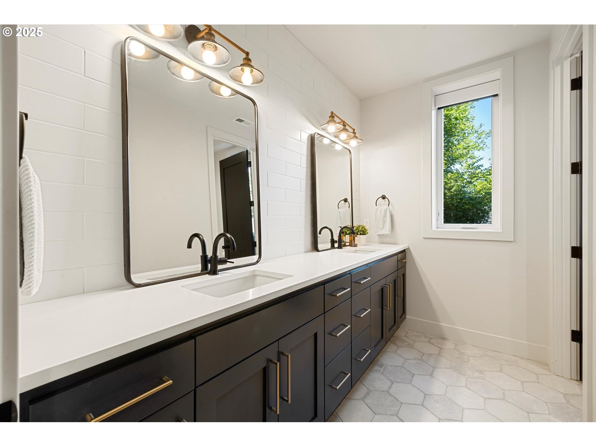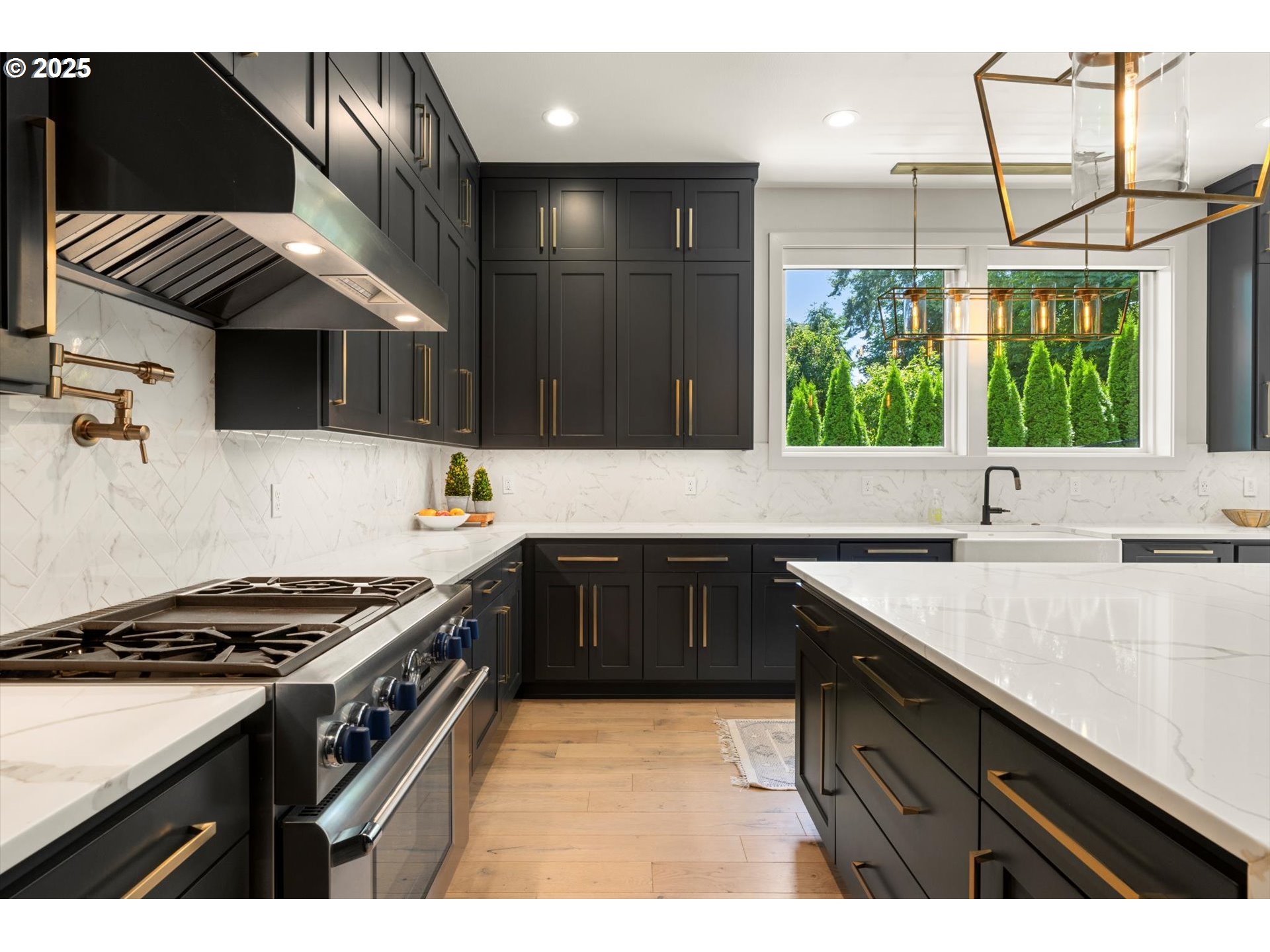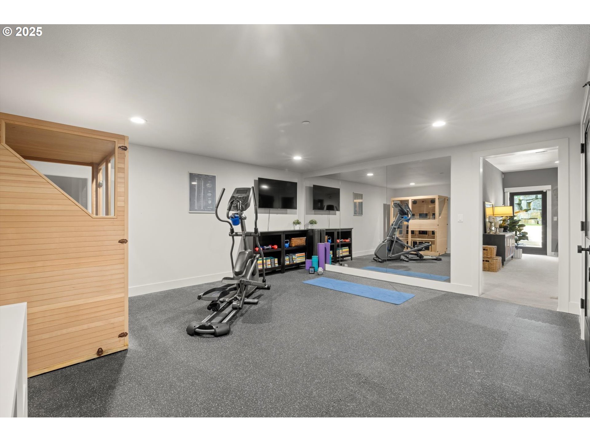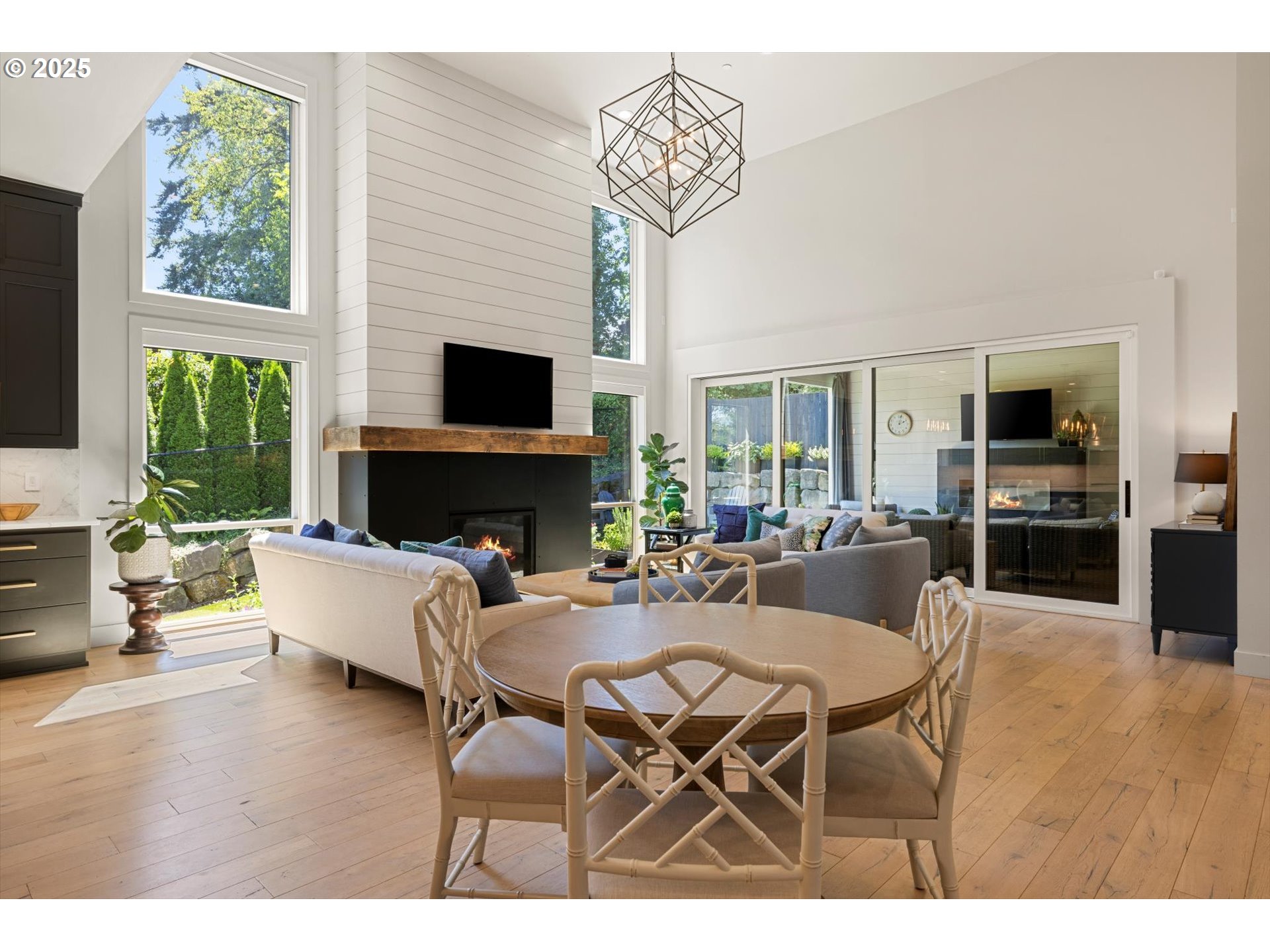 - Presenting an exceptional custom residence in Forest Highlands, one of Lake Oswego’s most sought-after neighborhoods. Perched at the end of a long private driveway, this sun-drenched 4-bedroom, 3.5-bath home offers 4,400 square feet of refined living, thoughtfully designed for privacy and modern luxury with integrated smart-home features and designer finishes throughout. The highly functional floor plan features a secluded main-level primary suite with an expansive spa-like bath and walk-in closet, executive office, 500-bottle temperature-controlled wine cellar, bonus room, guest ensuite, and home gym with sauna. The gourmet kitchen is appointed with professional-grade Thermador appliances, including a 6-burner gas range, double ovens, dual dishwashers, paneled refrigerator and freezer, custom cabinetry, wet bar, and a dramatic 6-by-9-foot island ideal for entertaining. Soaring ceilings and expansive picture windows fill the home with natural light year-round, while three gas fireplaces create inviting spaces to gather and unwind. A sliding glass wall opens to a covered outdoor patio with gas fireplace and ceiling heater, extending comfortable indoor-outdoor living through every season. The private fenced backyard features curated landscaping, ambient lighting, and low-maintenance artificial turf. Additional features include wiring for six wall-mounted televisions, EV charging capability, and a Lutron RA-2 smart home system providing whole-home control of lighting and automated window shades. Located just minutes from Oswego Lake Country Club, top-rated schools, forested trails, parks, and the shopping and dining of downtown Lake Oswego, this home offers an exceptional balance of location, lifestyle, and luxury.