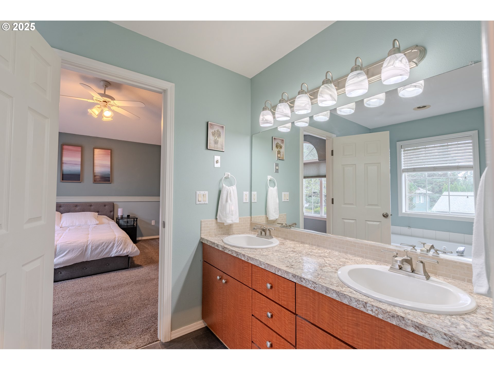 - From the welcoming curb appeal to the soaring, light-filled great room and flexible tri-level layout, this Village at Cedar Ridge home offers a blend of comfort and versatility that’s hard to beat. This spacious 2,231 Sq. Ft. home features 4+ bedrooms and a wonderfully adaptable design. The main level showcases vaulted ceilings and an open floor plan, highlighted by a grand entrance/great room with soaring vaults, large windows, and abundant natural light pouring in. A cozy gas fireplace adds both ambiance and warmth on cool winter days. The chic, functional kitchen includes gorgeous granite counters with full backsplash, a large eating bar, and stainless-steel appliances (all included!). The adjoining dining area includes a nook along with direct access to the expansive newer Trex deck. Upstairs, you’ll find three bedrooms plus a generous vaulted owner’s suite with a walk-in closet and an en-suite featuring double sinks and a soaking tub. The lower level adds two additional rooms and a spacious utility room with sink and toilet, with the washer and dryer included. Outside, the fully fenced yard provides ample space for pets and play, complemented by the large Trex deck for effortless outdoor enjoyment. Convenient to shopping, dining, parks, trails, top schools, and a medical center, with easy access to Highway 14 and Portland. Open House this Saturday and Sunday November 29 and 30th from 12–2pm - come join us and experience this exceptional home for yourself!
