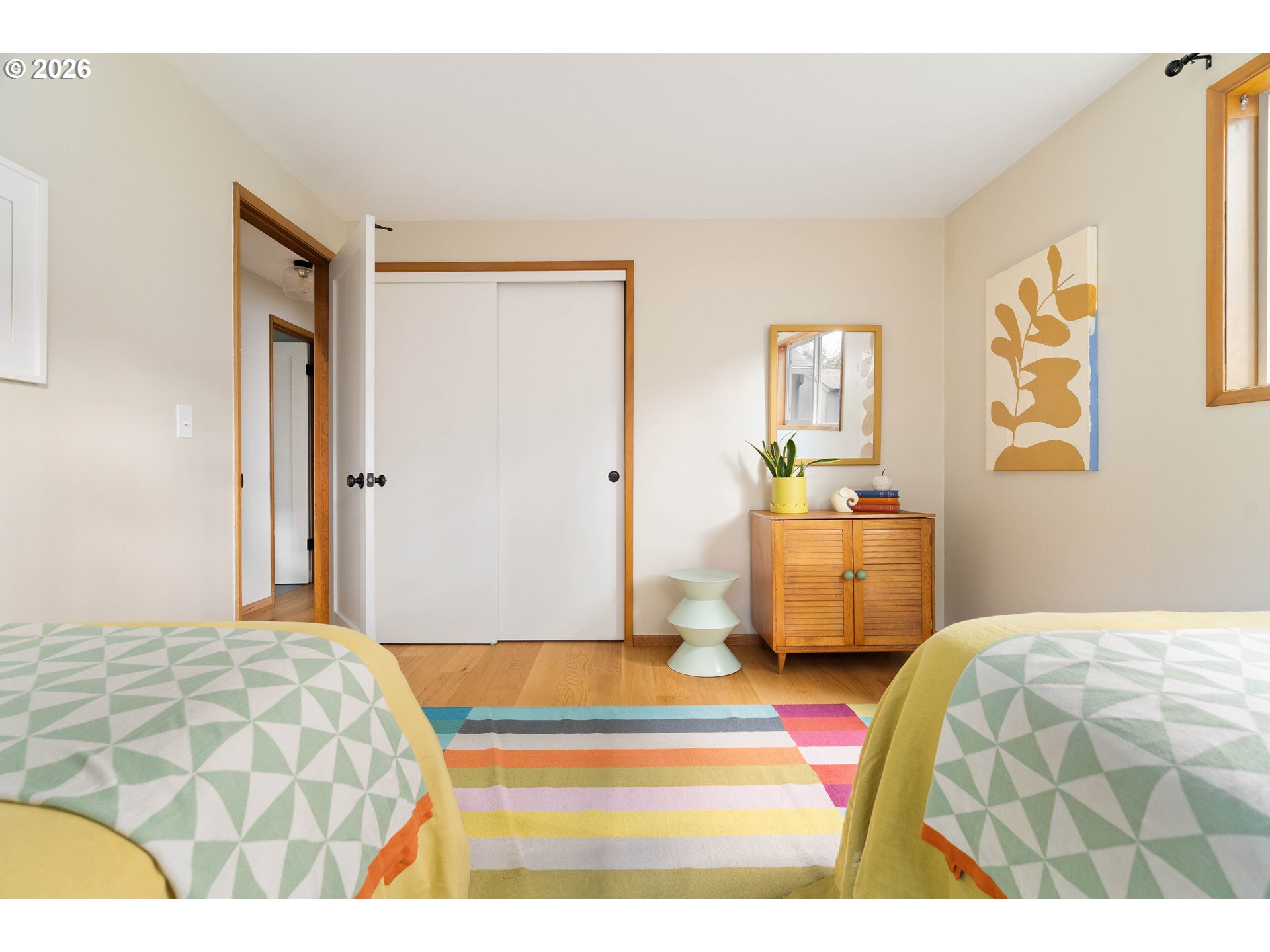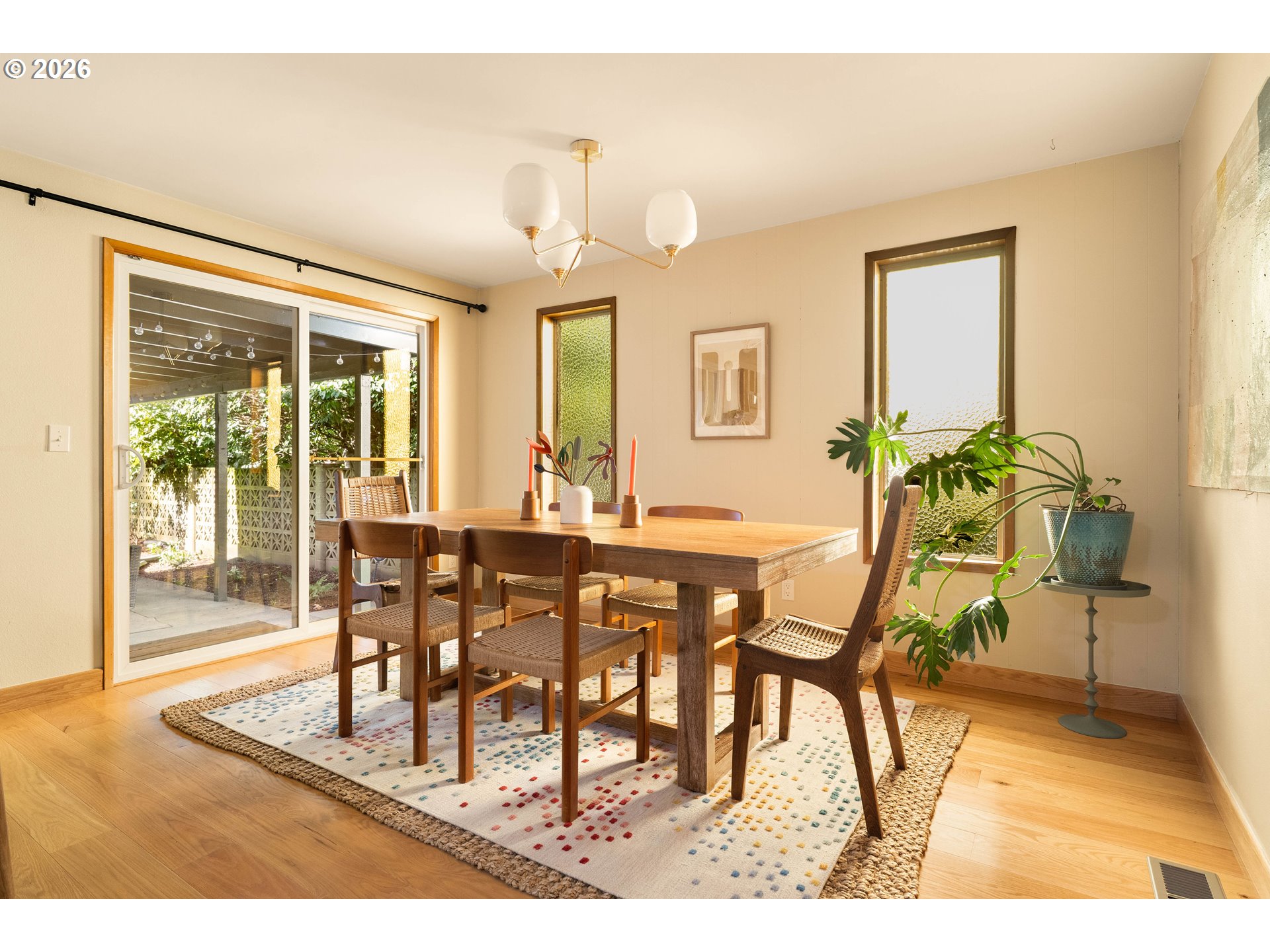 - Peace, love & a Woodstock address! This 1970's ranch celebrates retro design while also delivering the modern features & upgrades today's buyers expect. First impressions shine with established landscaping, moody PNW green exterior paint, original brick cladding, a built-in brick planter & solid wood entry door that sets the tone for what's inside. The interior honors its era with preserved period details like a statement mirrored entry wall, paneling, hammered textured harvest-gold glass windows & original kitchen cabinetry with patterned decorator panels in an iconic amber hue. Engineered hardwoods run throughout & the refreshed kitchen features new quartz countertops, tile backsplash, newer stainless appliances, oversized single-basin stainless steel sink & new hardware. A continental bathroom connects the hallway & primary bedroom, offering ensuite-esque functionality, and has been beautifully remodeled with a marble top double-vanity, large-format vinyl tile floor, new toilet, deep soaker tub + attractive tile surround. Don't miss the walk-in linen closet! All 3 bedrooms are spacious & have ample closet space. While the home's aesthetic may be timeless retro, by no means is it stuck in the past... it has had many major system improvements, subfloor air sealing, upgraded floor/plumbing/ductwork insulation, new vapor barrier, double-pane vinyl windows, vinyl sliders & fresh exterior paint. She's move in ready! Outside you'll find a covered patio with string lighting, a budding rose garden, manageable lawn, vintage breeze-block fencing, & a large tool shed for extra storage. Quintessential Woodstock location & lifestyle: stroll a few blocks to Keeper Coffee on weekend mornings, explore nearby parks, & enjoy quick access to neighborhood favs like Trader Joe's, New Seasons, Otto's Sausage & Meat Market, Proper Pint, Laughing Planet, Double Mountain, Orange Theory, Toast, Cloud City Ice Cream & Reed College's gorgeous campus. You'll see- this one truly is a keeper! [Home Energy Score = 4. HES Report at https://rpt.greenbuildingregistry.com/hes/OR10031012]