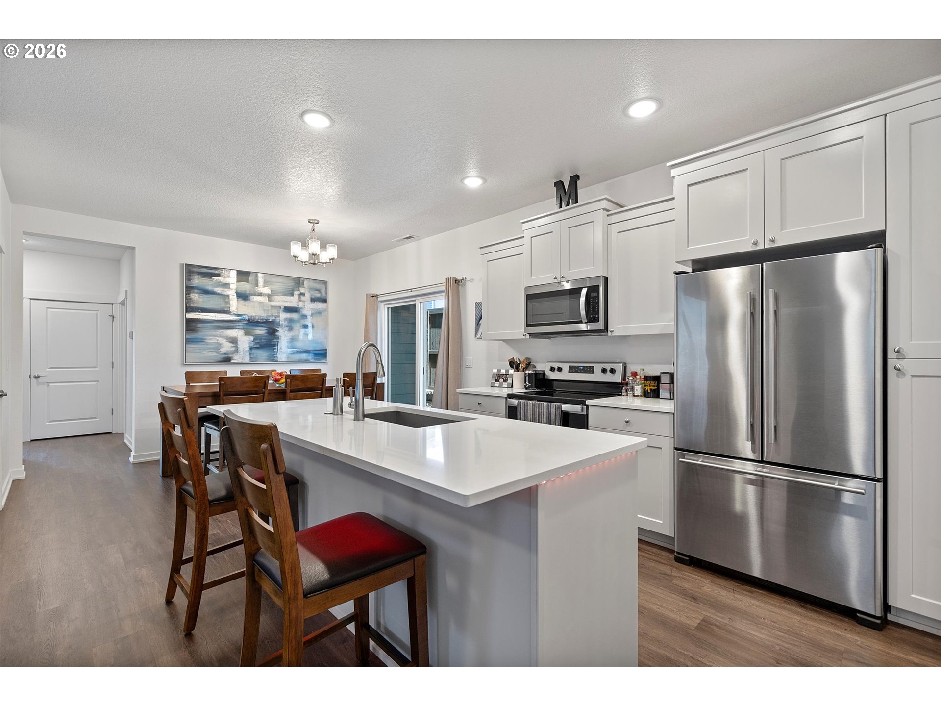 - Welcome to this beautifully maintained, newer construction ranch-style home offering a desirable single-level layout on a premium corner lot in a newly established Estacada neighborhood. Designed for comfort and everyday living, this well-kept home blends modern style with long-term flexibility. Step inside to an open-concept floor plan filled with natural light, high ceilings, and durable LVP flooring throughout the main living areas. The spacious kitchen is a true centerpiece, featuring a large island, stainless steel appliances, and a dedicated dining area that flows seamlessly to the backyard through a sliding glass door—ideal for both everyday living and entertaining. The living area provides a warm, inviting space to relax, while the private patio is perfect for morning coffee or quiet evenings outdoors. The primary suite offers a peaceful retreat with dual sinks, a walk-in closet, and a standing shower. Two additional bedrooms are conveniently located near a dedicated indoor laundry space, making daily routines efficient and practical. An oversized garage provides ample room for parking and storage. The home has been well cared for and offers flexibility for buyers. Located in the sought-after Campanella Estates community, this neighborhood is known for its welcoming, close-knit atmosphere. Enjoy nearby Wade Creek Park and splash pad, Timber Park for water activities, the new community center, and the local library. Neighborhood ponds, riding trails, and miles of paved walking and biking paths are close by. Convenient to schools, downtown Estacada, and the Clackamas River, with easy access to outdoor recreation, small-town charm, and commuting routes to the Portland metro area. A perfect blend of comfort, style, and convenience. Owner is motivated. Trustee is a licensed real estate agent in the State of Oregon.