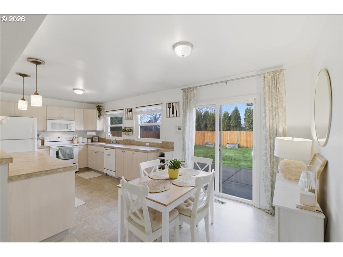 - Charming 3-bedroom, 1-bath ranch featuring beautiful hardwood flooring and an inviting open kitchen that flows seamlessly into the main living space, perfect for everyday living and entertaining. Step outside to your private patio and spacious, fully fenced backyard, ideal for pets, gardening, or summer gatherings. Conveniently located near parks, schools, shopping, and TriMet, this home offers easy access to everything you need while maintaining a cozy neighborhood feel. A fantastic opportunity to own a well-maintained home!