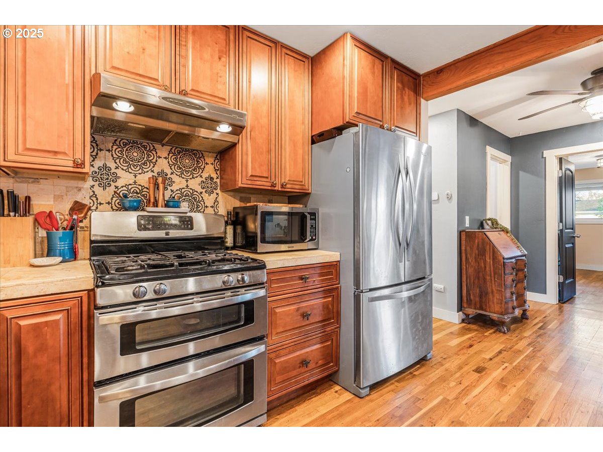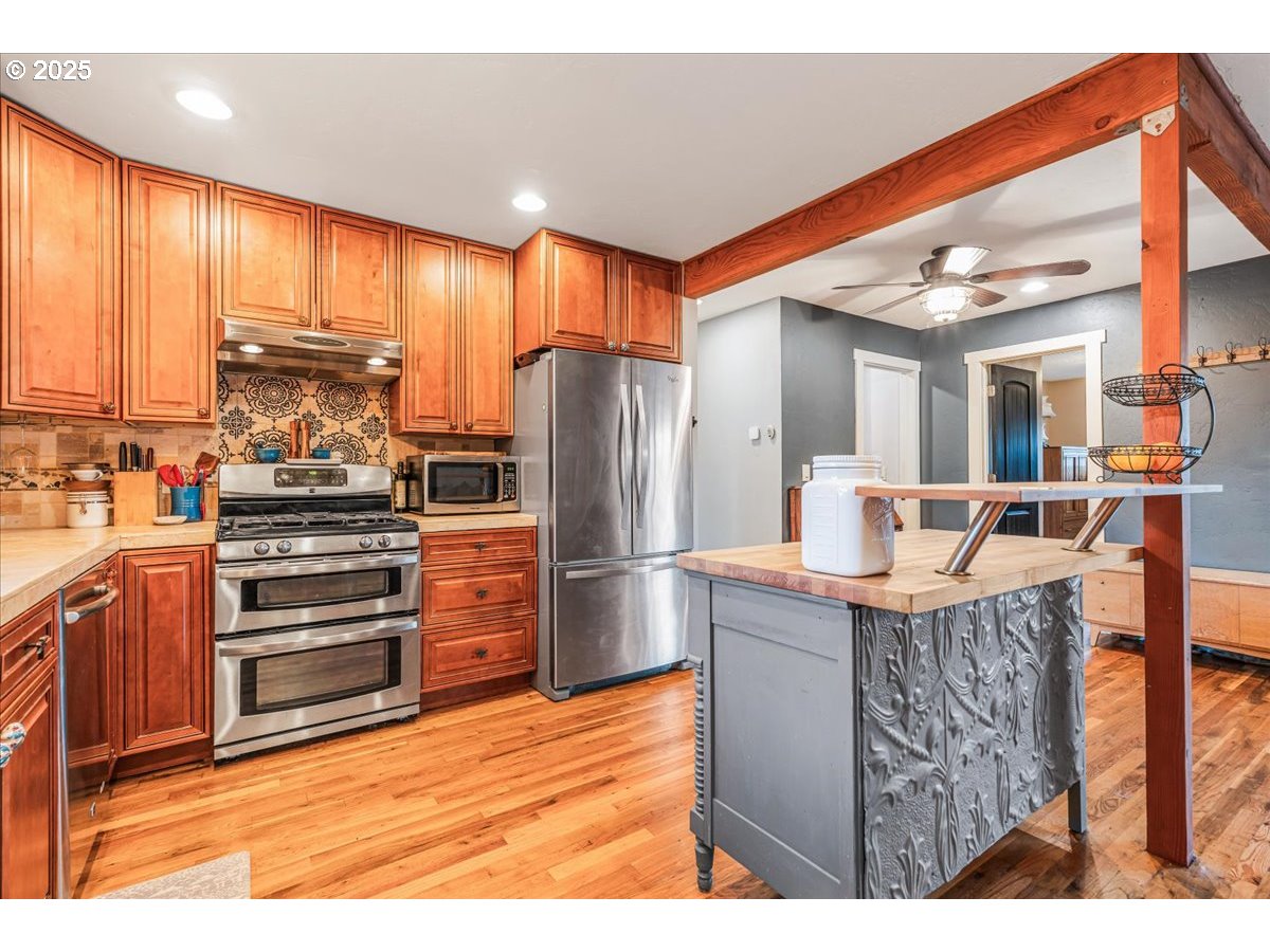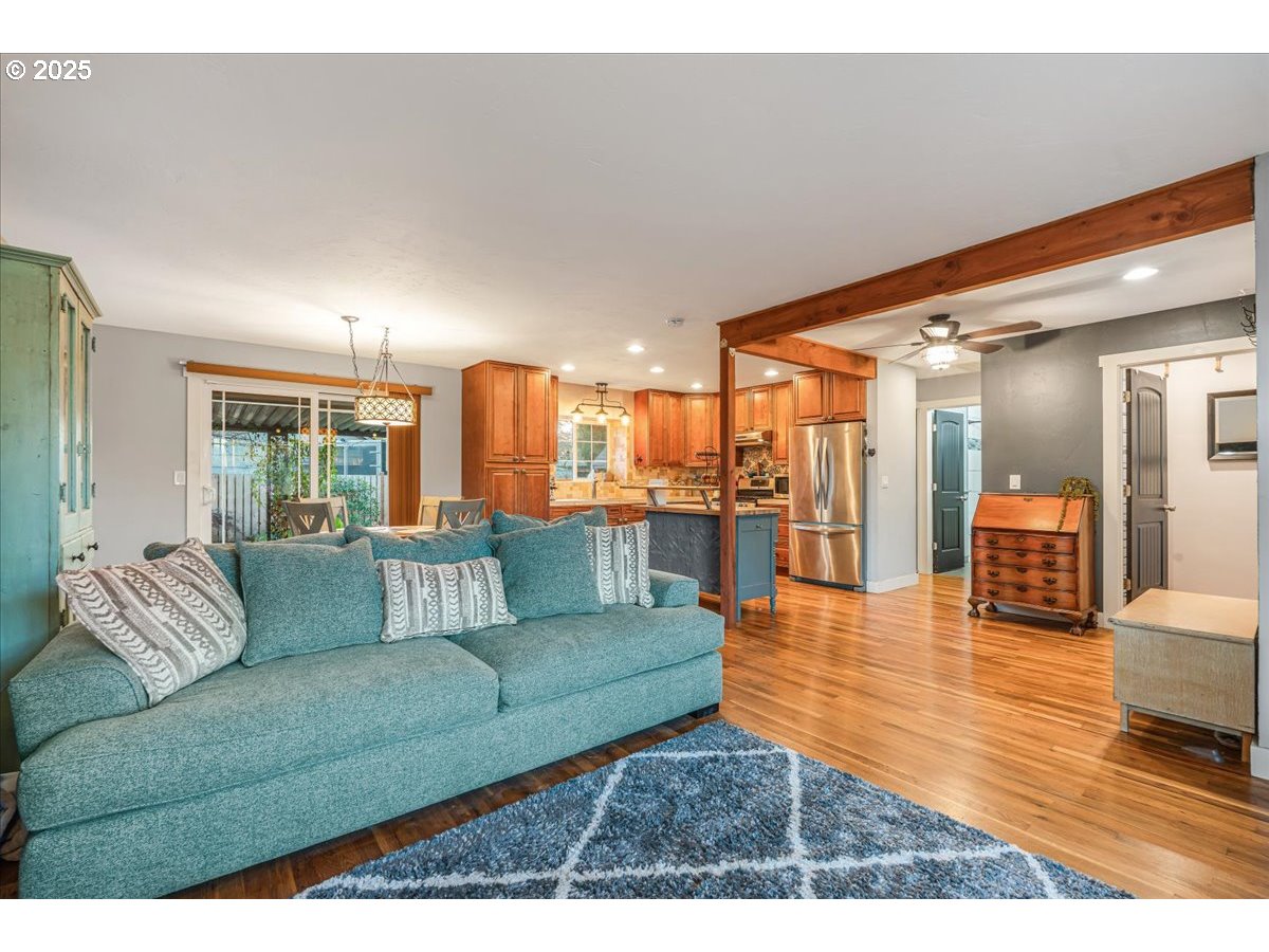 - Charming one level home with standout curb appeal! The low maintenance landscaping is filled with blooms and drought tolerant plantings. The backyard offers raised garden beds, a covered patio, new fencing, and a storage shed. RV parking for added convenience.Inside, the open concept floor plan features beautiful hardwoods, an exposed beam in the living room, a gourmet kitchen with gas cooking, a kitchen island, and a breakfast bar. All Stainless steel appliances are included.Additional upgrades such as windows, roof, furnace, water heater, electrical panel, insulation, and central AC provide comfort and peace of mind.The spacious primary suite is a true retreat with a spa tub, rain shower, and generous storage. An oversized garage offers even more room for projects and organization. All appliances stay, making this home completely move in ready.