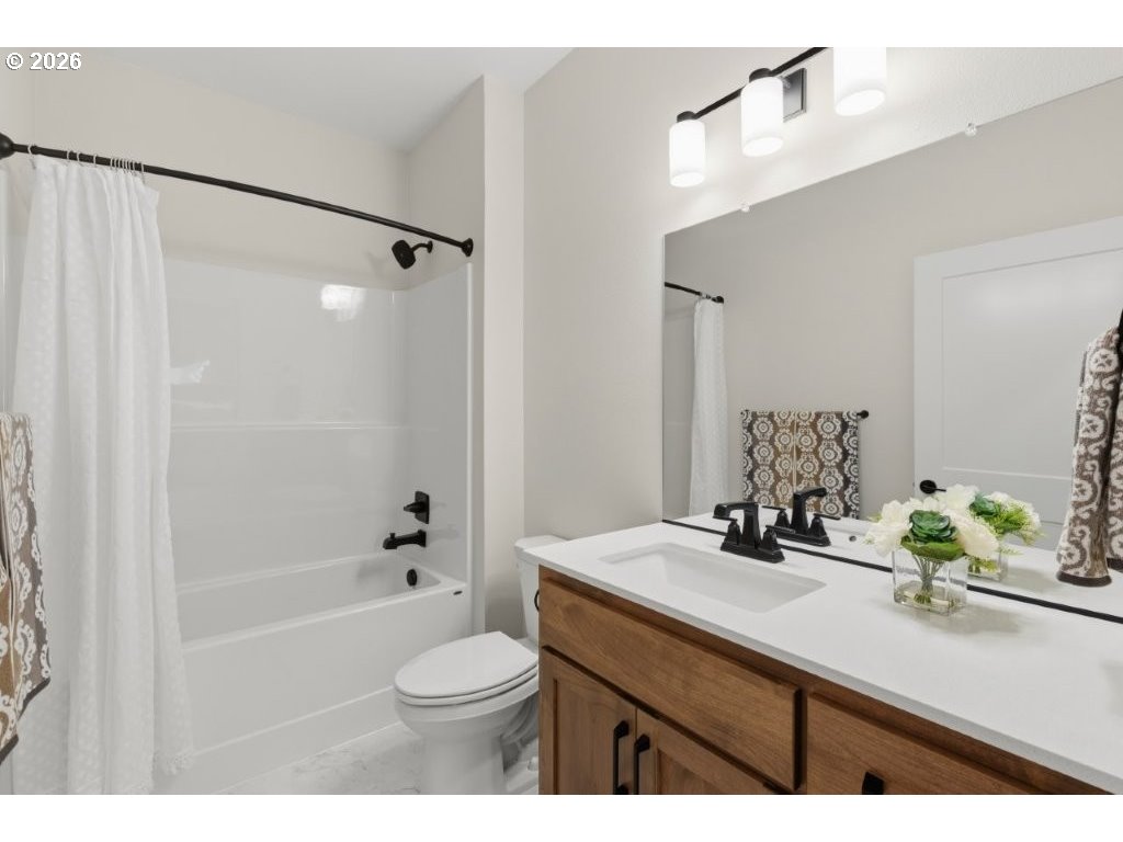 - MOVE-IN READY ..ASK ABOUT OUR SPECIAL PROMOTION! The new Magnolia plan is beautifully finished with quartz counters, custom tile work, and high-end floors. It boasts a light and bright living area with a wall of big windows and features stained Alder shelves on either side of the custom Alder finished TV display...a gorgeous room to spend time in! Walk out to the huge covered patio for outdoor entertaining all year long...it's 28 ft wide! Custom cabinets and quartz counters throughout. Generous chef's kitchen features a large island, walk-in pantry and touches like soft-close pull-out trash. The primary suite is privately located with its own bathroom, a gorgeous tile shower with a bench and shampoo niche AND a walk-in closet designed for two. Two additional bedrooms share a hall bathroom, linen closet, and close proximity to the laundry room...complete with a quartz folding counter. Add in a convenient home office and you'll never need to move again! Fully fenced with a gate and professionally landscaped, your yard is both beautiful and low-maintenance so you can enjoy your private space all year. Just a few homes down the street, you'll enjoy the beautifully landscaped neighborhood parklet with a bench and grass area for play. Built with Evergreen Homes' trademark quality, you'll enjoy energy savings from Day 1 while keeping your home at a comfortable temperature all year. Complete with a Trane heat pump efficiently delivering heating and cooling and high-end blown in insulation, plus Milgard windows, you're buying a home built to last.