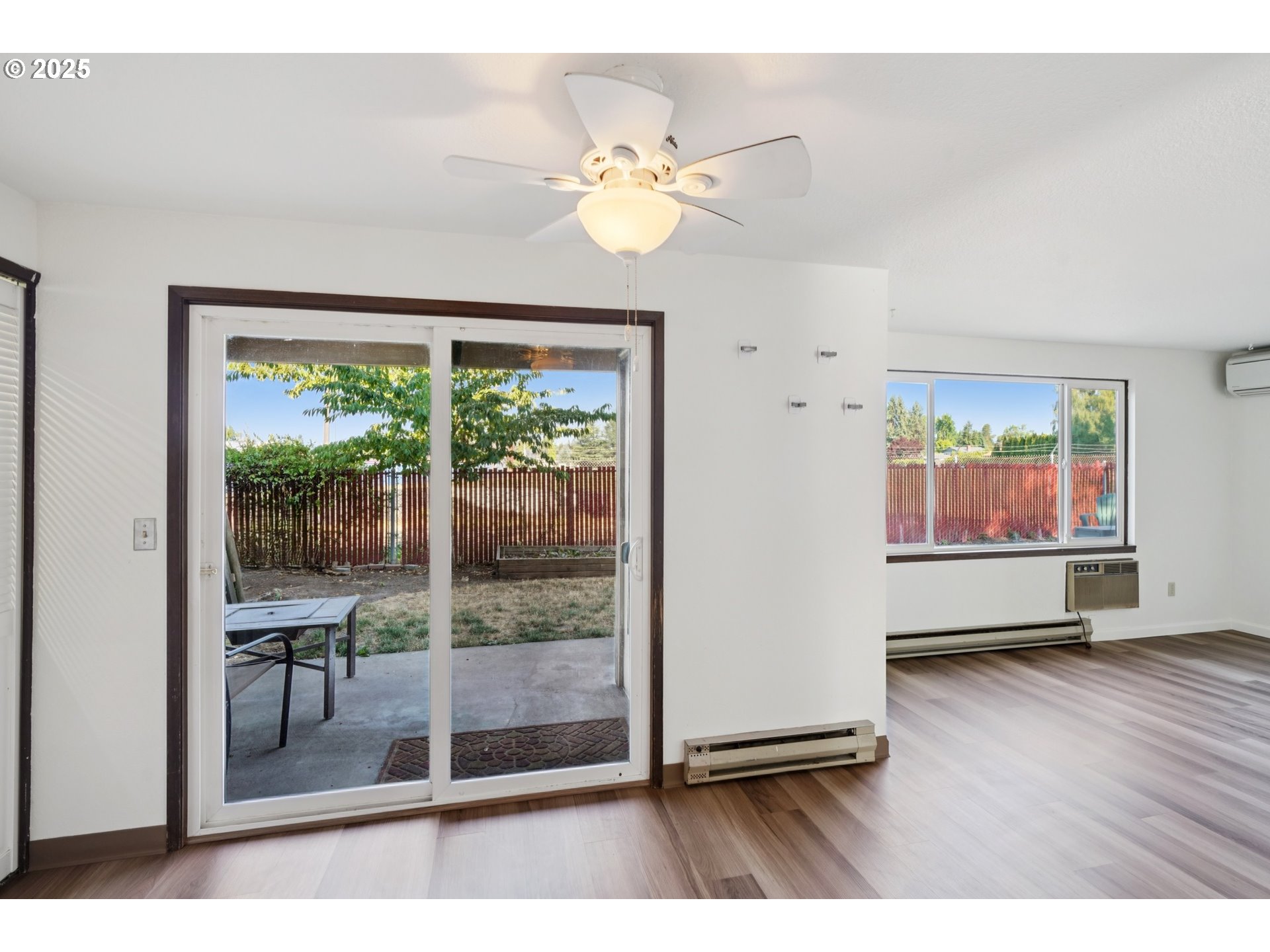 - Step into this bright, spacious ground-floor end unit that’s freshly updated with sleek LVP flooring and a fresh coat of paint throughout—ready for you to move right in! Love the outdoors? This unit backs up to a peaceful field and offers a semi-private yard space, perfect for relaxing, growing your own vegetables, or simply enjoying the fresh air—without the hassle of lawn care. Offering a low-maintenance lifestyle with a welcoming community vibe, this home puts convenience at your fingertips. You’ll enjoy dedicated parking, handy washer and dryer hookups, and the comfort of being a close distance of stores and the MAX line. With its rare semi-private yard area and easy-care living, this condo truly has everything you need to feel right at home.