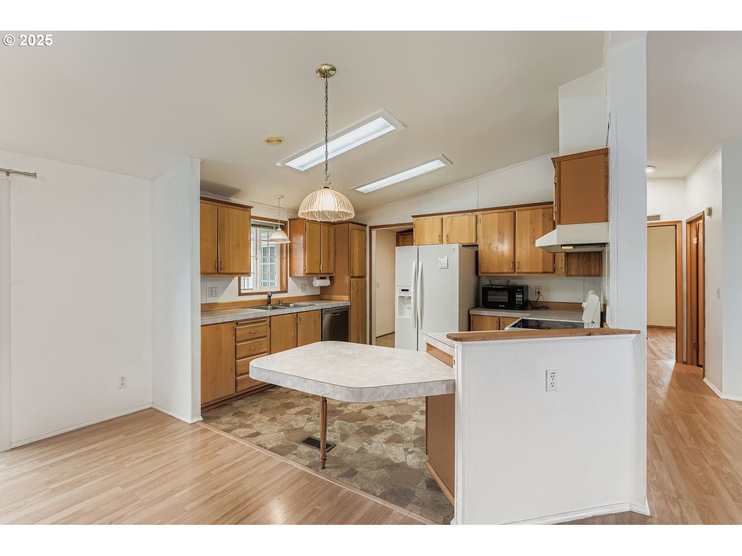 Premium gated community! Pristine condition manufactured home in Cascade Park Estates! No steps, and spacious and open ADA floorplan, with wide doors, roll in shower and lower counter in the kitchen. The low maintenance landscaping will make your life easy! Backyard has a covered patio, 3 year old shed, fully fenced, raised beds and backs to the beautiful park that is maintained by management. Take a walk in the park every day, with easy access path adjacent to home. New oversized heatpump in 2022, new furnace in 2020. Newer roof and vinyl siding. Laminate floors and vaulted ceilings, with electric blind. In-wall stereo with ceiling speakers. All appliances are included! Spacious 2 car garage with storage and a smart garage door opener. 55+ years of age park. Move in ready! UNIT 108