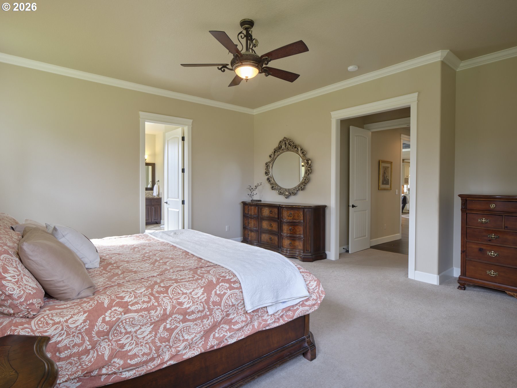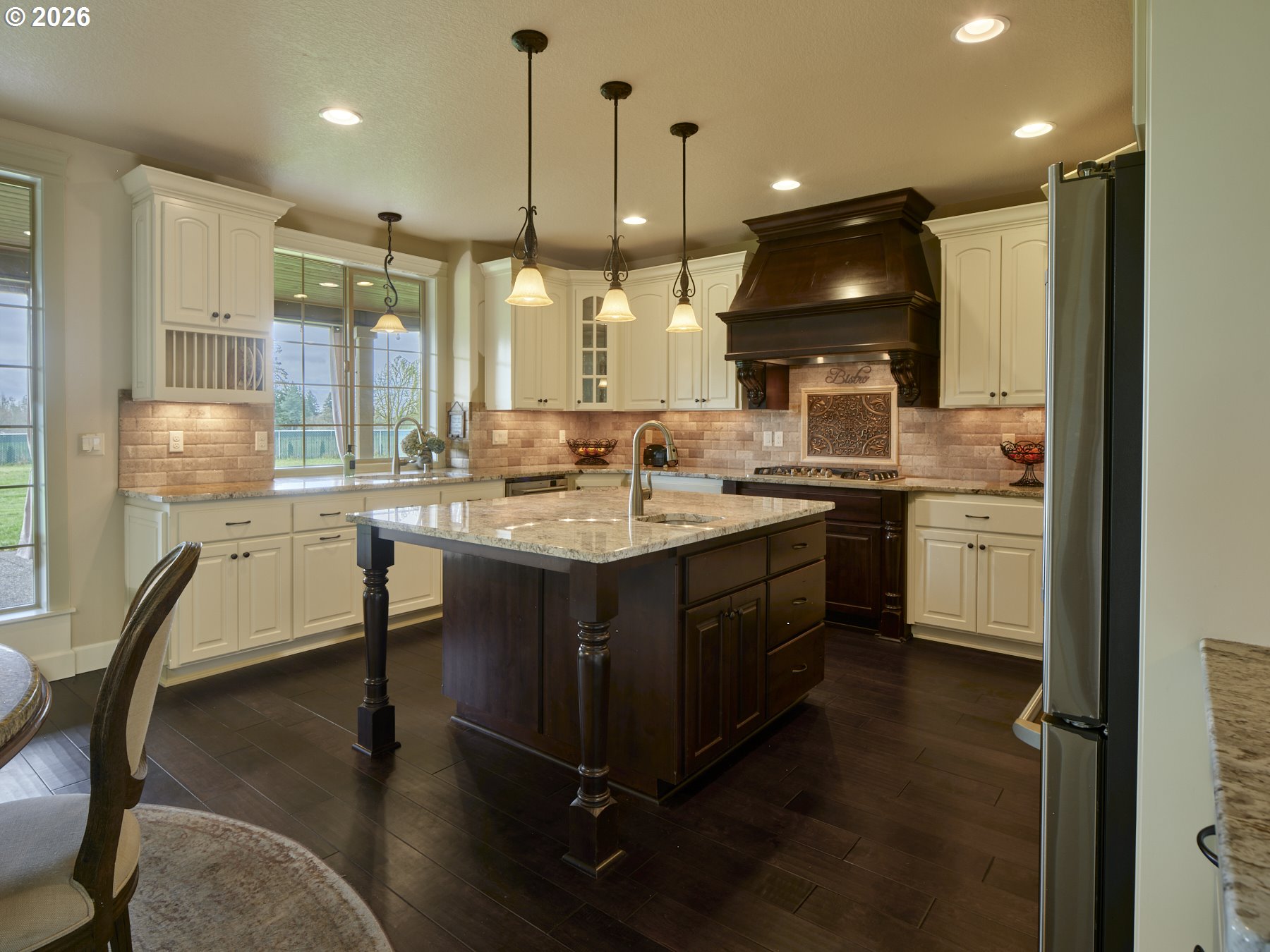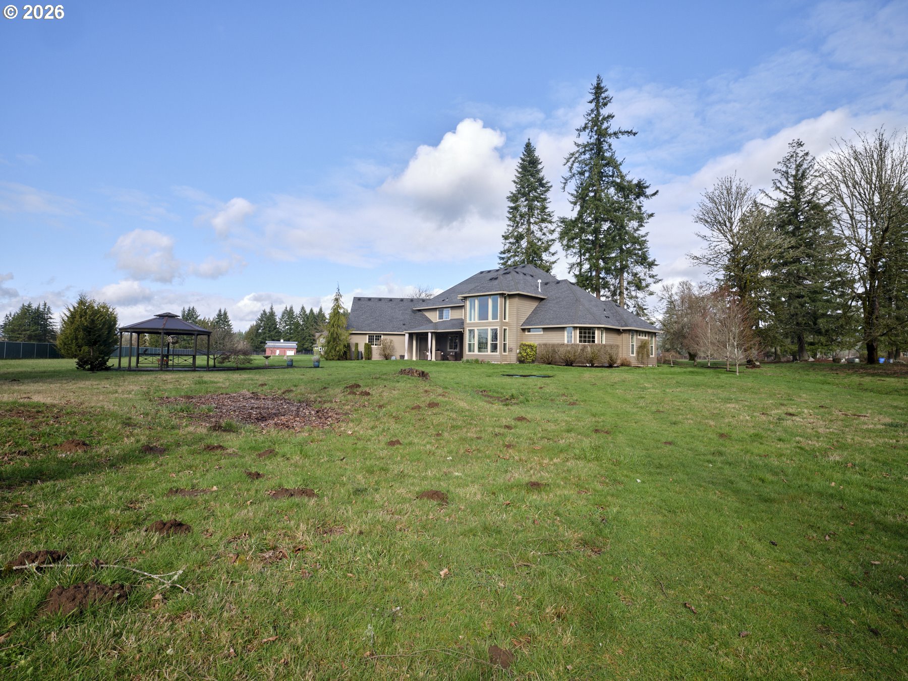 - Come experience and fall in love with this exceptional French Country home- CUSTOM BUILT to perfection & nestled on 5 lovely acres! Take in breathtaking Pacific Northwest sunrises & sunsets! Here, you'll find peace, privacy, and endless possibilities! NO HOA means abundant space for outbuildings, ADU, animals, or whatever you desire! Set back from the road and adjacent to gated community makes for a tranquil setting ideal for walking & outdoor enjoyment. *The EXPANSIVE GREAT ROOM showcases soaring 20-FOOT CEILING, a dramatic west-facing wall of windows, dual ceiling fans, and impressive floor-to-ceiling stone fireplace flanked by custom built-in bookcases with elegant glass doors. *A private office features double glass French doors and built-in custom cabinetry. *The GOURMET KITCHEN is beautifully appointed with custom cabinetry, decorative oven hood, granite countertops, large island with sink, butler’s pantry, and an expansive walk-in pantry— perfect for entertaining & daily living. *The MAIN FLOOR PRIMARY SUITE is a luxurious retreat, offering a spacious bedroom, spa-inspired bath with dual vanities, jetted soaking tub, massive doorless dual-head shower, and a generous walk-in closet. High ceilings throughout (10’ in primary, 9’+ in main living areas & 8' on bedrooms), solid wood French entry door, and Italian travertine entry add to the home’s refined elegance.*Upstairs features a vaulted second bedroom with full bath, abundant storage including a bedroom-sized storage room, and walk-in closets in all bedrooms. *A hidden custom bookcase door leads to a 415 SQ FT BONUS ROOM with LED lighting, refrigerator, direct-vent fireplace heater, and attic storage access— ideal for media, fitness, or hobby space. Oversized 1,500 sq ft garage has 4.5 bays and a SHOP area- w/ LED lighting, workbench, utility sink, 220V and 440V. *Dual zoned heat pump w/ back-up furnace & oversized propane tank. Gazebo with slate floor & path, Sprinklers & RV PAD. THIS ONE TRULY HAS IT ALL!