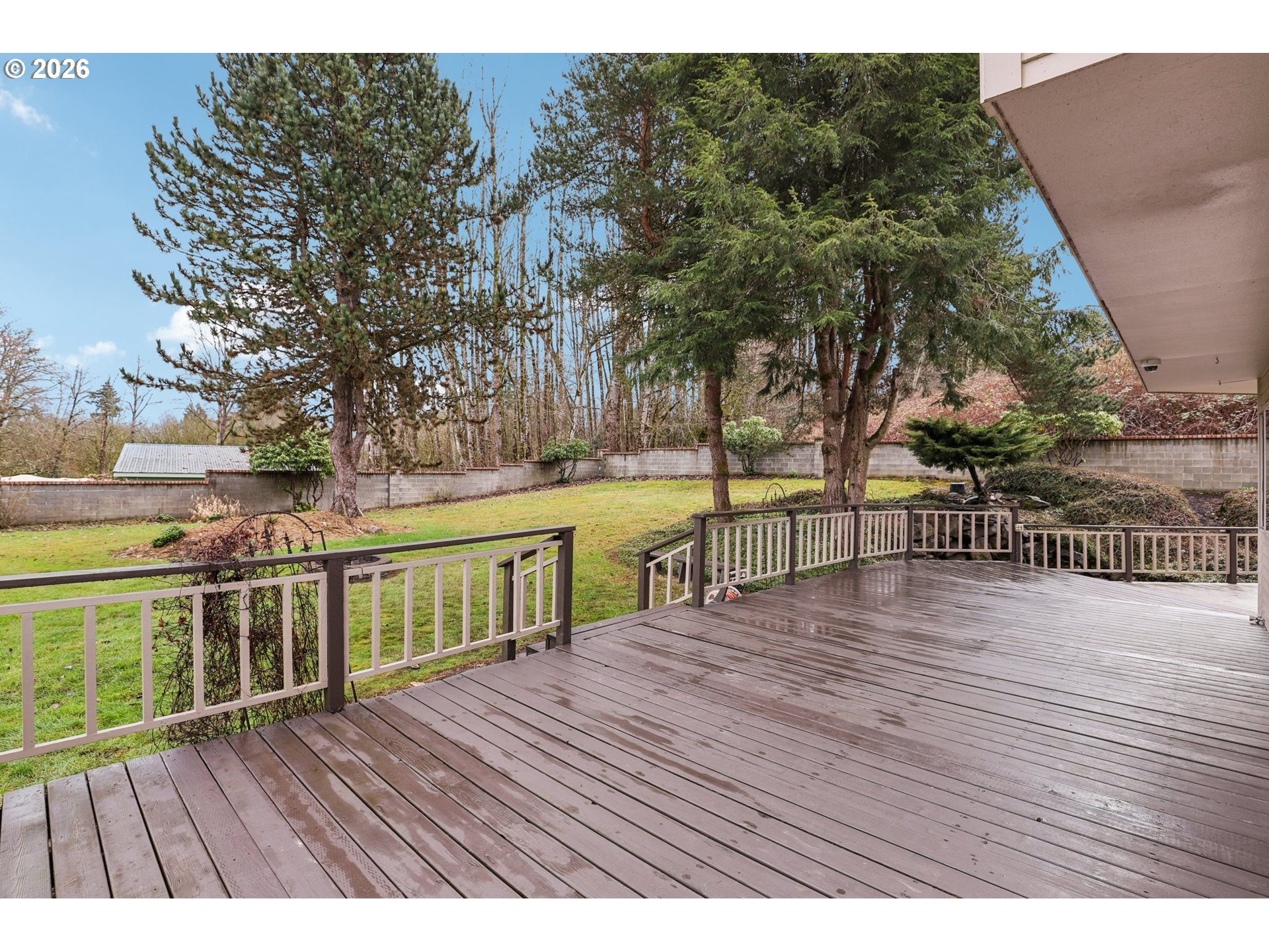 - Deck, Fenced, Garden, Public Road, RV Parking, Water Feature, Yard