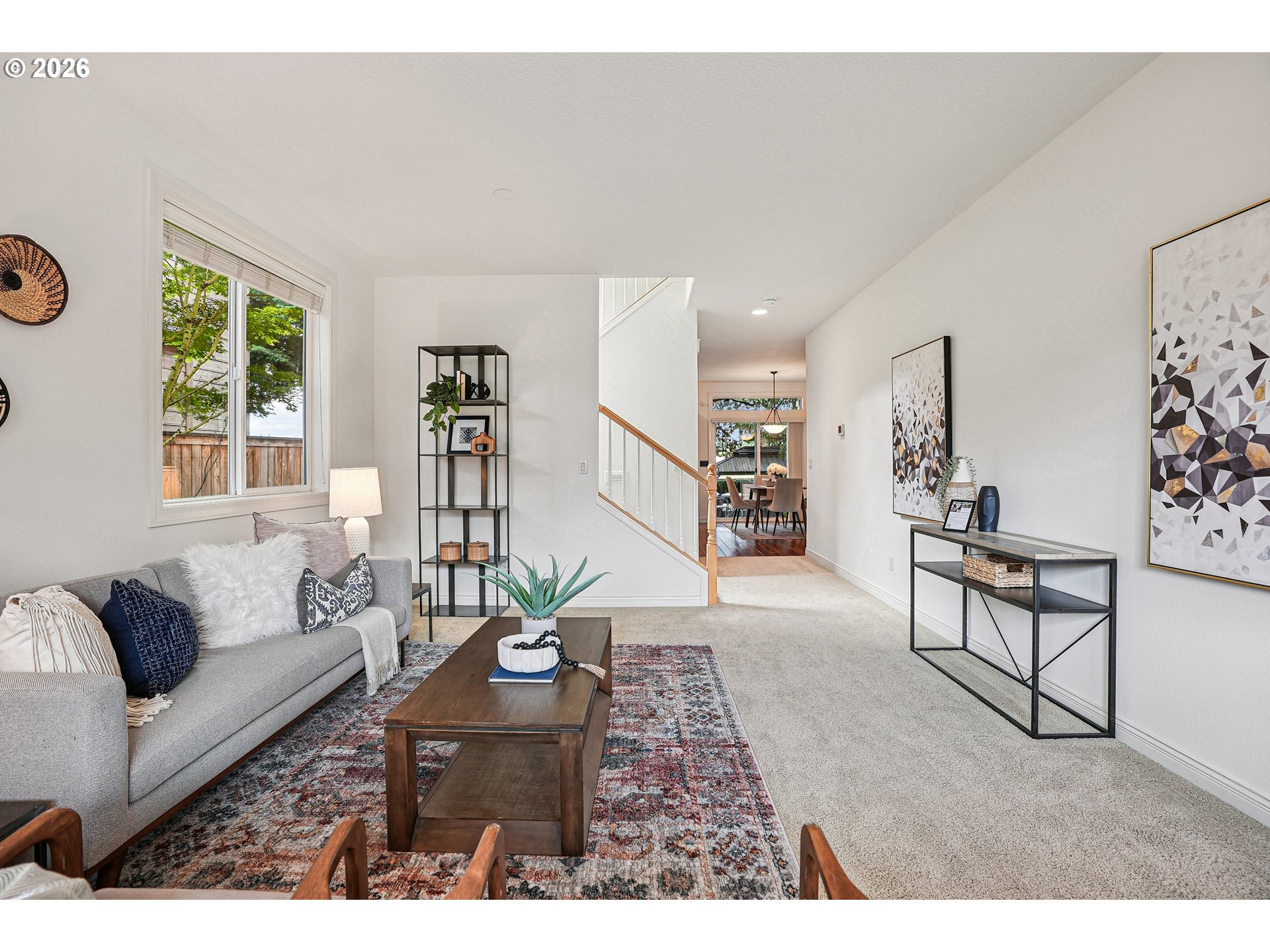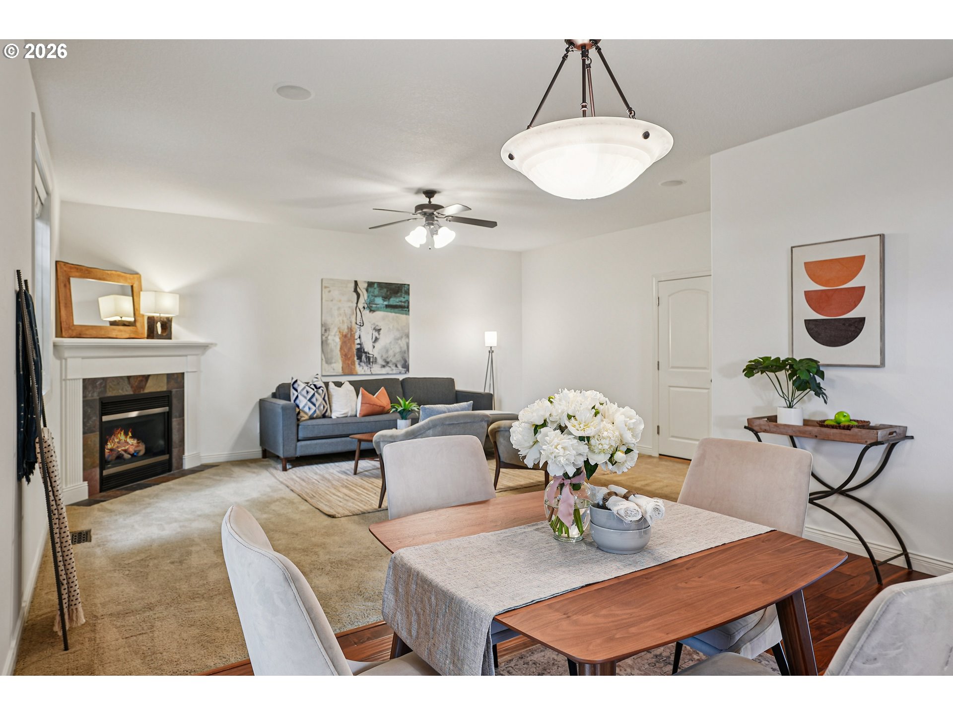 - Tucked away on a peaceful, tree-lined street in the Maplecrest Estates neighborhood, this lovingly maintained home offers the rare perk of no HOA fees. The original owner’s thoughtful care is evident throughout and the open-concept living, dining, and kitchen spaces create an inviting atmosphere from the moment you step inside. The kitchen features hardwood floors, newer stainless-steel appliances, and ample cabinet and pantry storage. Just off the kitchen, the comfortable family room serves as the heart of the home with a gas fireplace perfect for cozy evenings or hosting. The sense of space continues upstairs, where 9-foot ceilings lead to a spacious primary suite defined by vaulted ceilings and a generous ensuite with a soaking tub and walk-in shower. A large, versatile bonus room with laminate flooring provides endless possibilities, whether you need an additional bedroom, a home gym, a creative workspace, or a play area. Two additional well-sized bedrooms, a full bathroom, and a conveniently located laundry room complete the upper level.The outdoor space is a private retreat designed for year-round relaxation. A covered patio, finished with a beautiful tongue-and-groove ceiling and fan, overlooks established landscaping with irrigation and raised garden beds. A covered spa invites you to unwind in total privacy. Even the garage adds value, featuring a professionally installed storage system with overhead racks. With a brand new roof, fresh interior and exterior paint, meticulously maintained systems, and a fantastic location close to parks and schools, this home truly offers the full package.