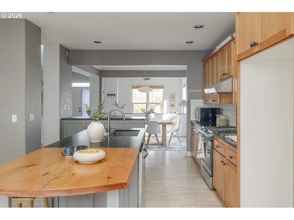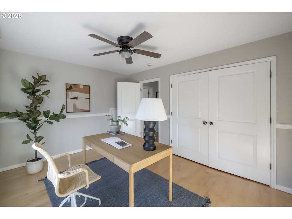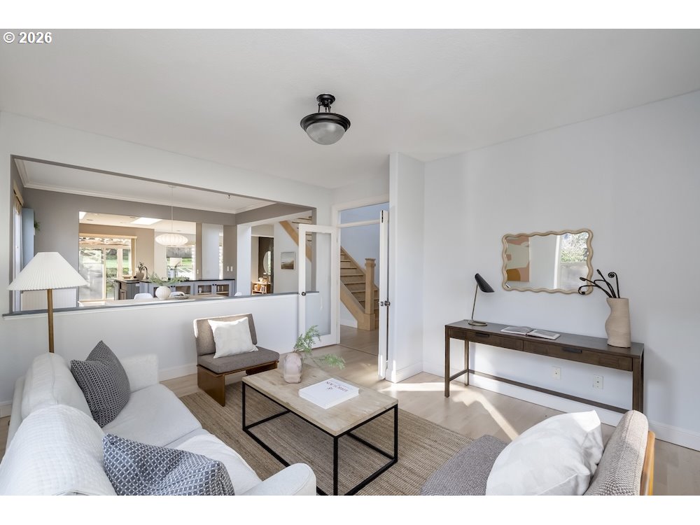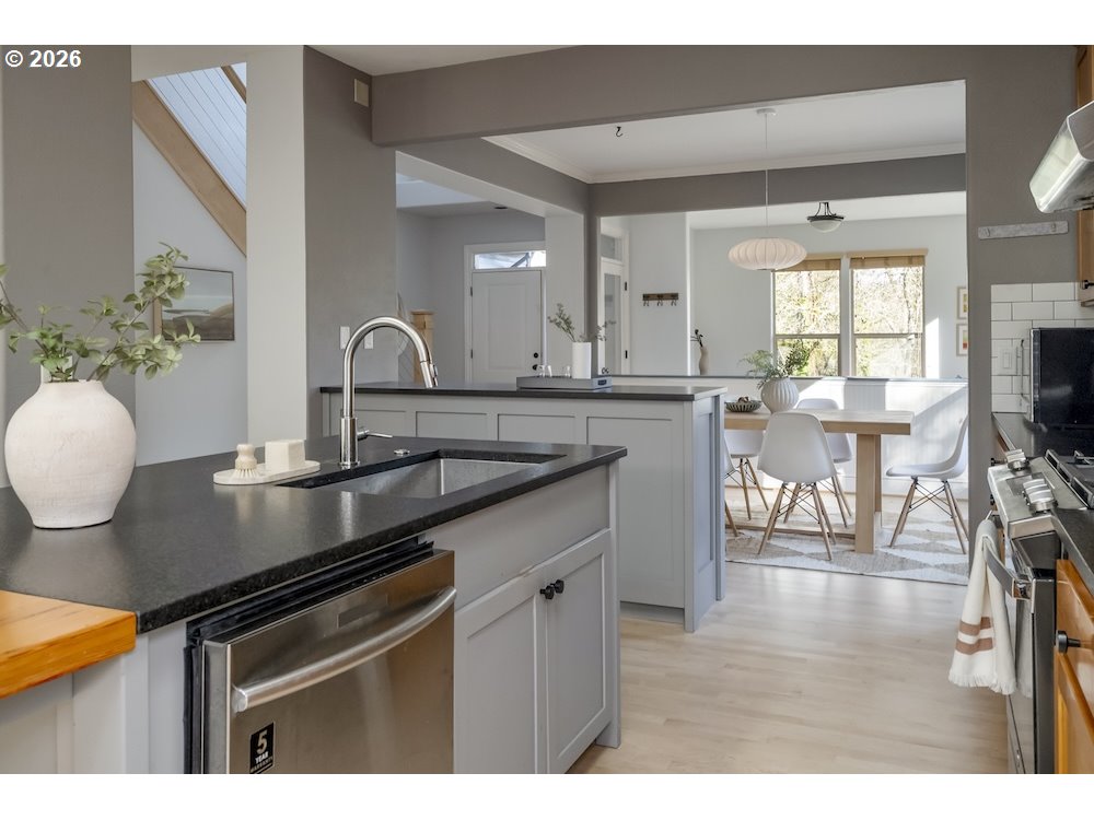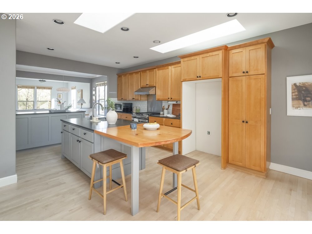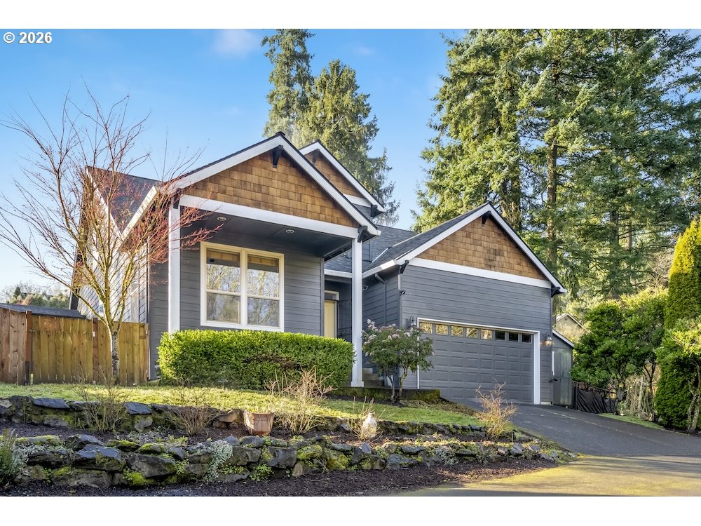 - Secret yourself away from society in a beautiful green landscape, with parklands in every direction. Light-filled, modern, spacious, meticulous, with high ceilings, beautiful built-ins, and thoughtful storage solutions, throughout. A smartly articulated floor plan creates two levels of easy living: a generously sized primary bedroom with ensuite bath and walk-in closet on the main, a half bath, bonus office space, and laundry for convenience. The open confluence of contemporary kitchen, dining, and warmly illuminated great room provides social spaces for connection, with stylish floor to ceiling gas fireplace setting a scene. Contemporary appliances, a kitchen island, and room to groove welcomes gourmet gatherings. Upstairs, three additional bedrooms are afforded territorial views and uncommon privacy by clever design. A second full bath completes this level. There's RV parking for checking off road trip wish lists, a large 2-car garage providing secure parking, and there's an separate workshop structure with electricity for weekend tinkering. A covered patio overlooks an exterior that feels serene and secluded. Set out in any direction and you'll find yourself embraced by nature: parks, dog parks, creeks, and forests. Shops and schools nearby - from elementary all the way up to Portland Community and Lewis & Clark colleges - and easy commuting, as well. This beautiful home has much to offer, and is ready for you to turn the key.