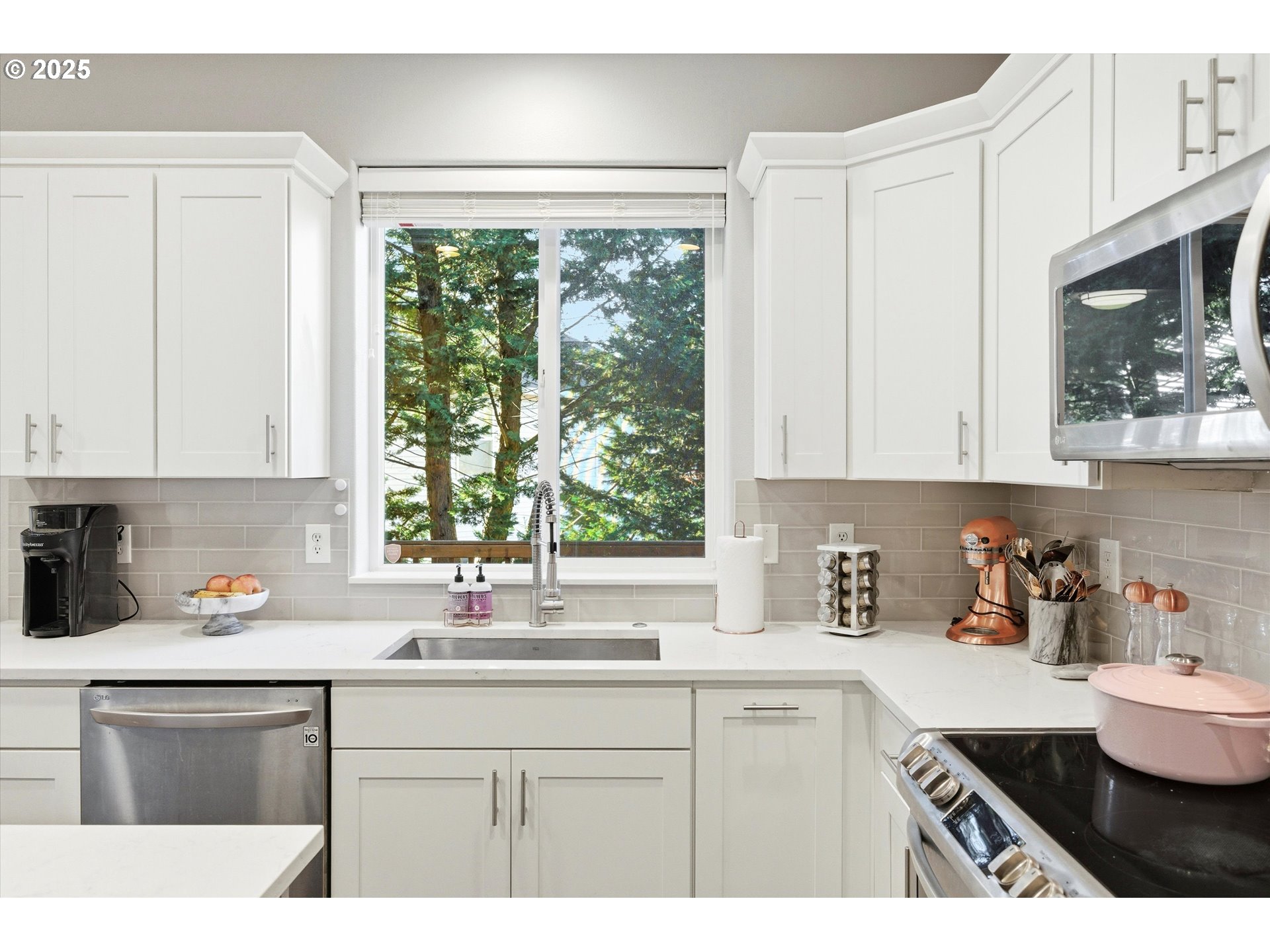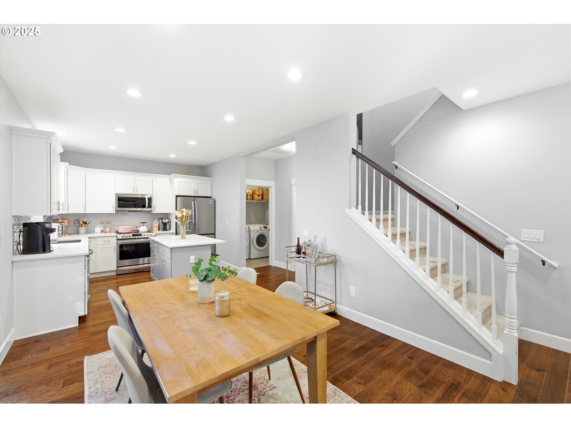 - Open house Sunday, Nov. 23, 2:00 - 4:00 pm- This beautiful, luxurious 4-bedroom, 2.5-bath home offers timeless craftsmanship, quality finishes, and an inviting, light-filled layout. The main level features an expansive formal living and dining area with high ceilings, abundant windows, a gas fireplace, and seamless flow into the gourmet island kitchen. Quartz counters, stainless steel appliances, a gas cooktop with hood, built-in oven and microwave, and a spacious dining area make the kitchen perfect for both everyday living and entertaining. Step outside to the private, fenced backyard patio surrounded by mature greenery that creates a serene, secluded setting. Upstairs, the elegant primary suite includes a spa-like bath with a freestanding soaking tub, walk-in tile shower, double quartz vanity, and a generous custom designed walk-in closet by Container Closets. Three additional bedrooms and a full bath complete the upper level, offering excellent flexibility for family, guests, or office space. Ideally located just minutes from Progress Ridge shopping, dining, and cinema—and walking distance to a neighborhood park—this home delivers an exceptional blend of quality, comfort, and convenience.