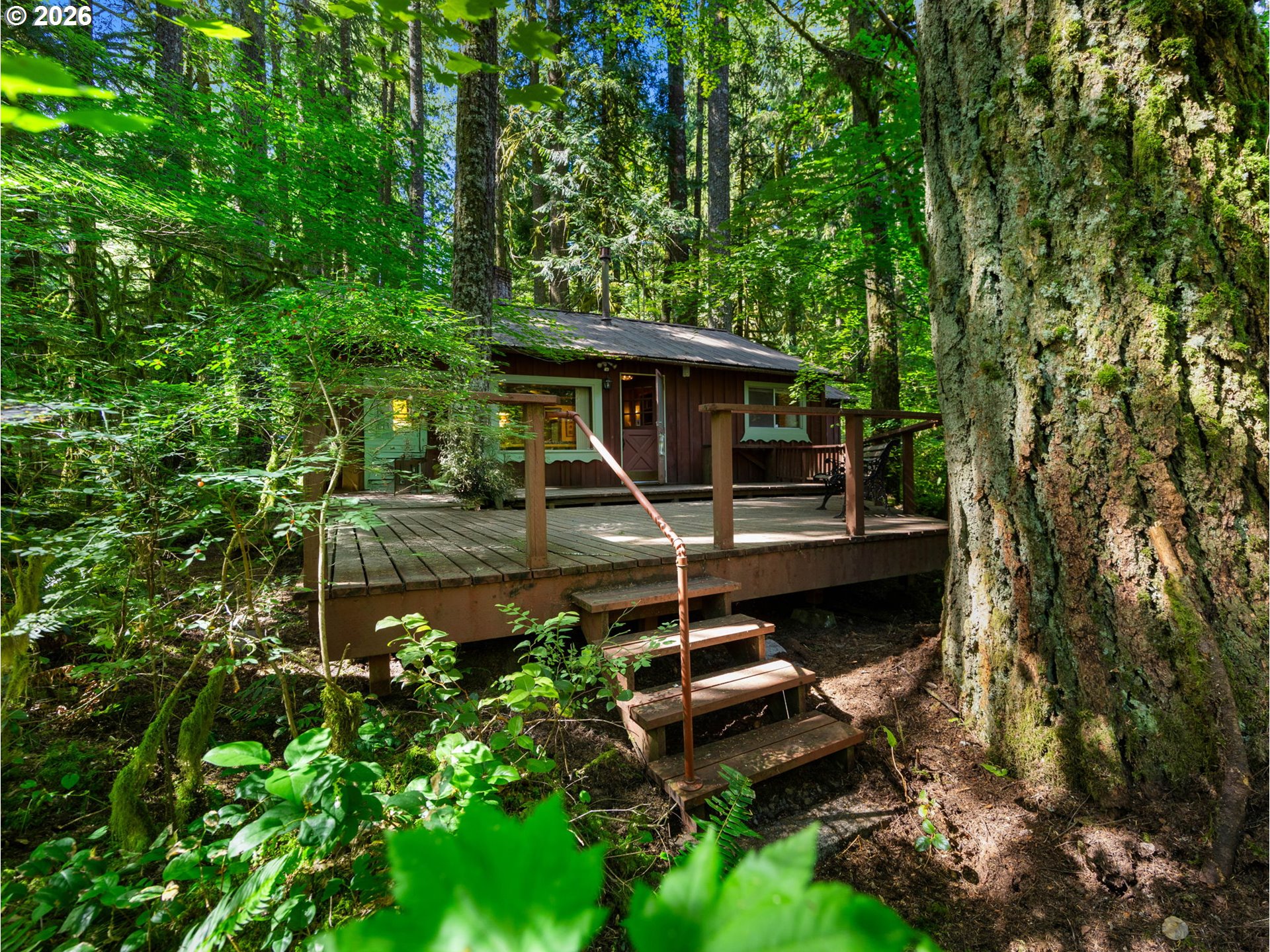 - Tucked away near the confluence of the Zig Zag River and Still Creek, this classic one level two bedroom cabin is just a short walk to Rhododendron’s coffeeshops and restaurants. Originally built in 1925, the cabin blends vintage charm with modern comfort. A stunning stone fireplace anchors the cozy living room,framed by wood-beamed ceilings and walls of windows that bring the forest inside. The Dutch door leads to a spacious deck that’s perfect for summerbarbecues or relaxing to the sounds of the river below, just a short trail away. The open floor plan includes a dining area and well-equipped kitchen with tilecountertops, built-in dishwasher, stove with hood, and plenty of cabinetry. Both bedrooms are generously sized with carpet, and a full bathroom includes a tubfor soaking after a day on the mountain. A freestanding propane stove offers warmth on cool evenings, while durable wood laminate floors throughout themain living areas make cleanup easy. Covered entry, nearby woodshed, and bonus garage space make this Mt. Hood charmer a perfect basecamp for theyear round recreation. It’s just off a plowed road at a lower elevation with easy access in all seasons! Located on leased land within the Mt. Hood NationalForest and just one hour from PDX. Comes furnished with some exclusions.