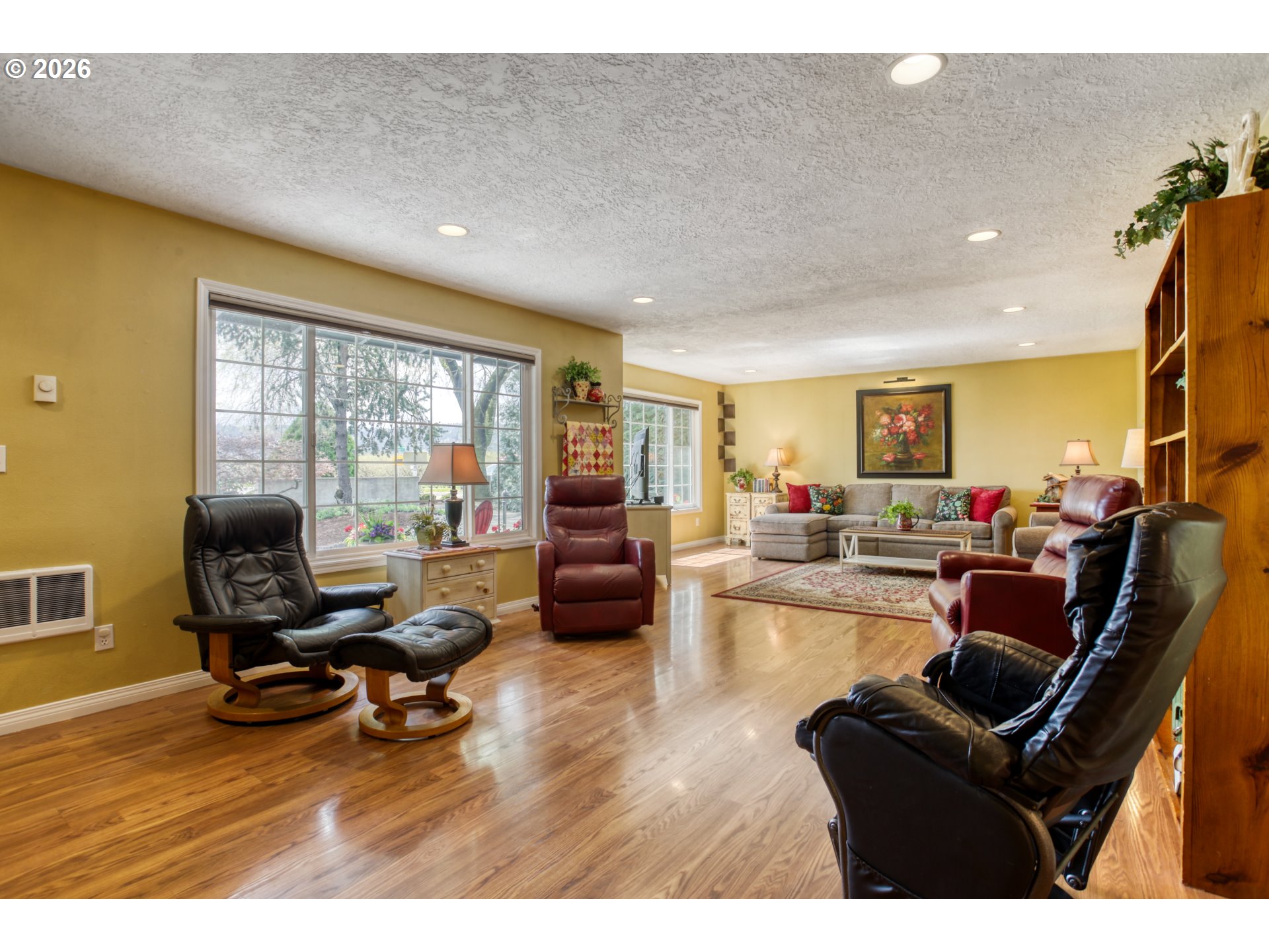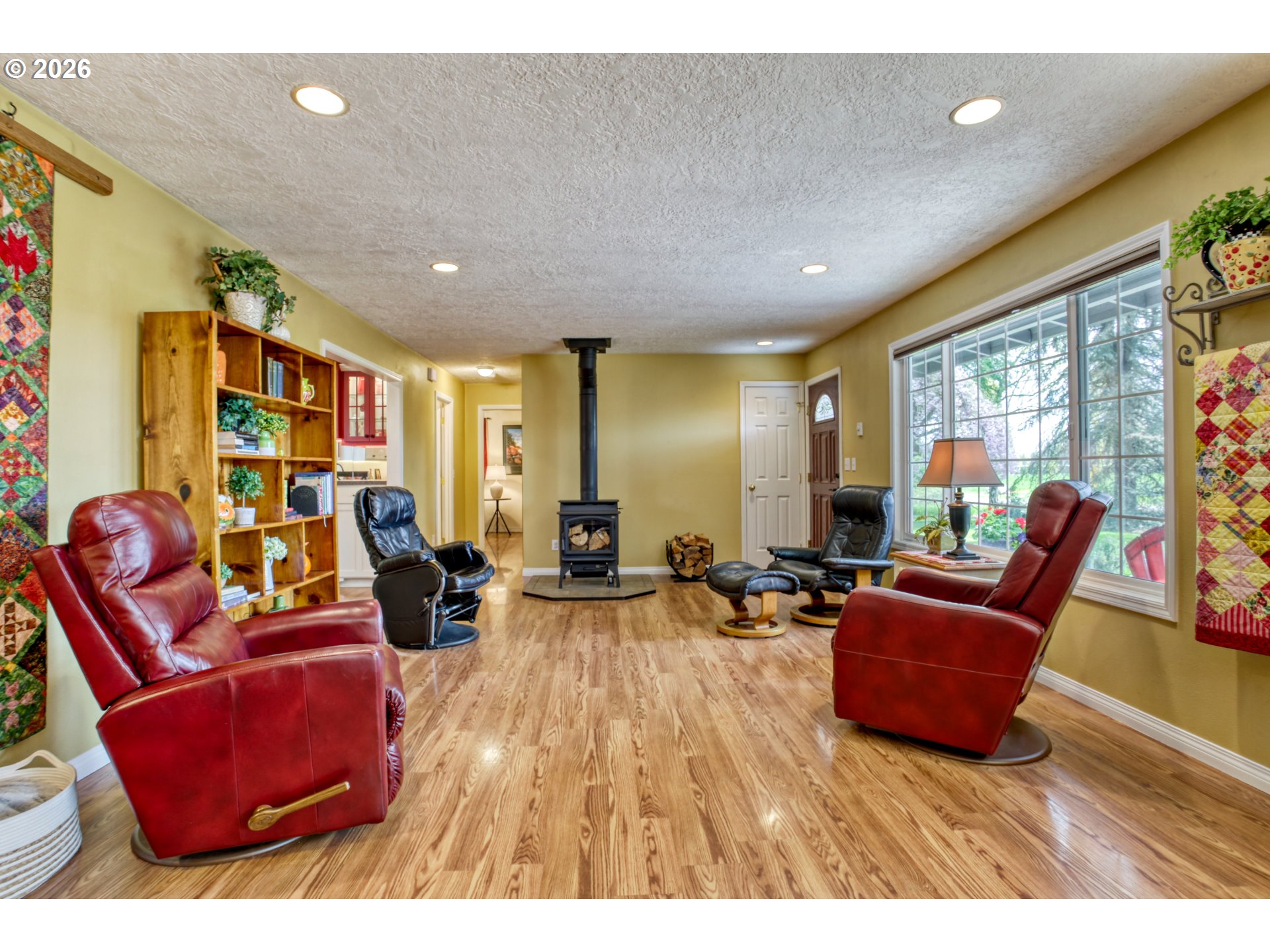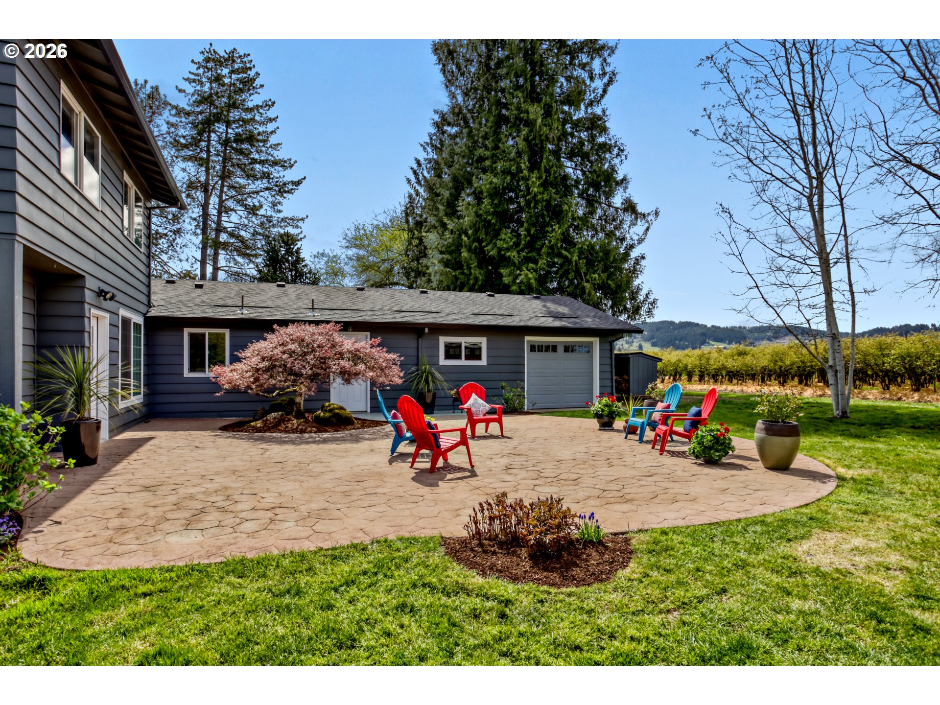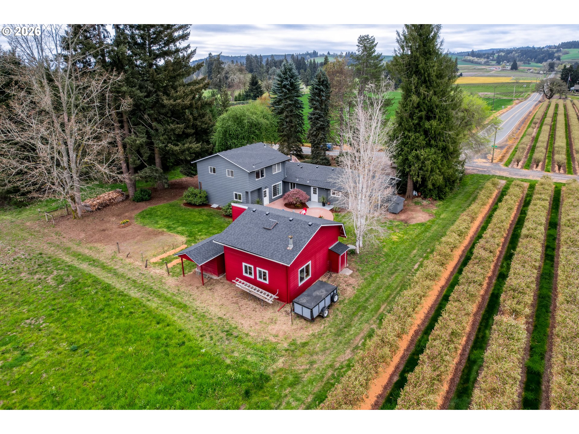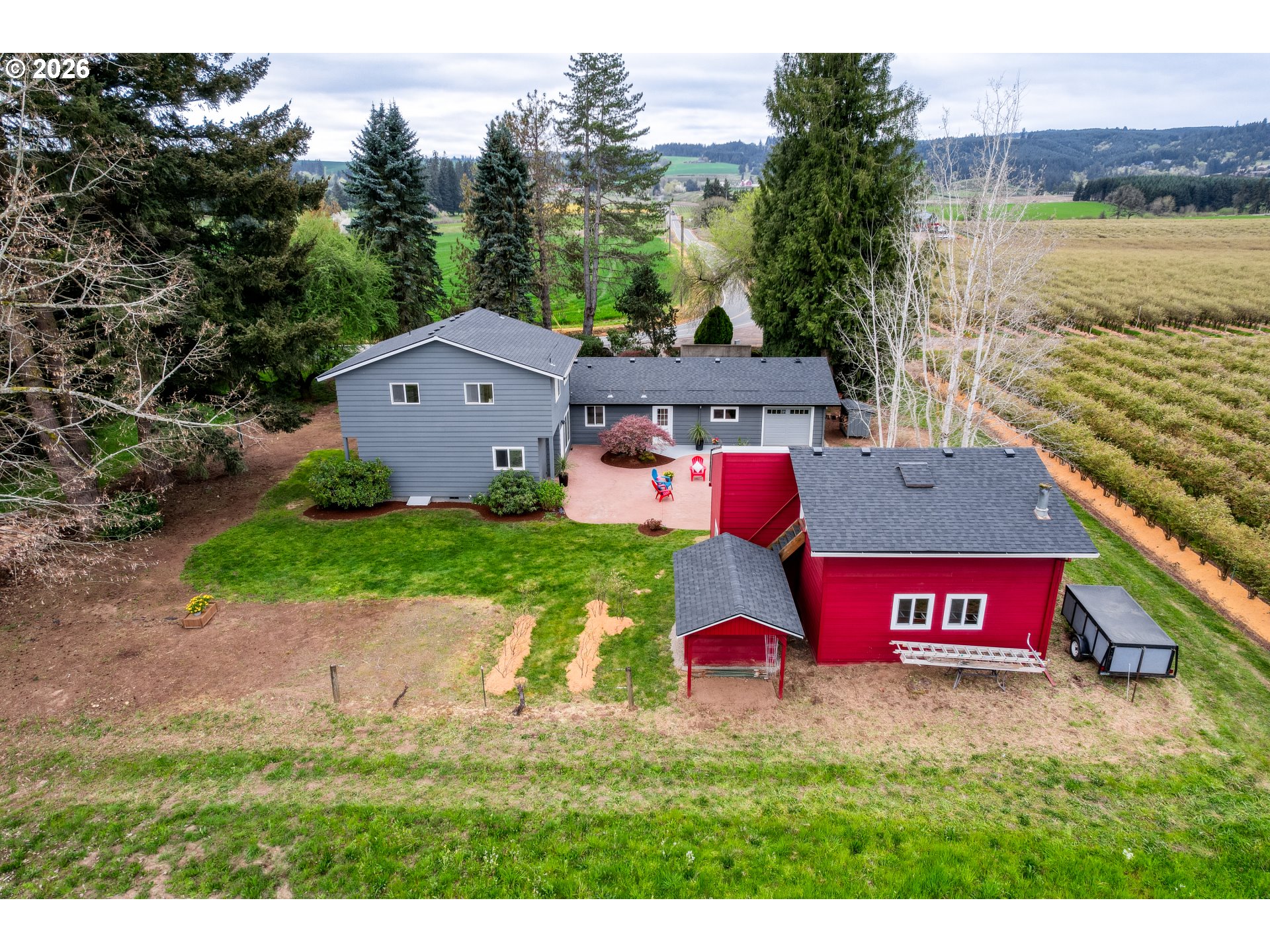 - Open House: SAT. April 18th: 12-4PM, SUN. Apr. 19th: 12-2PM Set on a scenic 0.43-acre lot and located less than 6 miles from Forest Grove, Cornelius, and Hillsboro, this 4 bedroom, 3 bath, 2562 sq.ft home offers space and flexibility situated in a truly, spectacular setting. Enter the spacious great room with a brand-new woodburning certified LOPI woodstove designed with a cooktop surface.This room is perfect for hosting gatherings, creating cozy conversation areas, or placement of a grand piano. Nearby, the long galley kitchen is both functional and welcoming, featuring double ovens, ample counter space, pull-out drawers, and a coffee bar. It connects easily to the stamped patio outside, making it simple to entertain, barbecue, or just step out for a quick coffee break to relax in nature. The floor plan allows for versatility with separate areas that can be used for bedrooms, home offices, or guest space. A bedroom and office near a beautifully, updated bathroom on the main level make a perfect setup for guests or multi-generational living. The primary suite is tucked away for privacy and includes unique custom cabinetry and convenient access to the laundry area. Upstairs a permitted addition supplies even more living space, including two extra bedrooms, a full bathroom, and a bonus room that could be used for hobbies, sewing, library or gaming space. Outside, the detached garage/SHOP has its own electrical panel and is plumbed for another bathroom. Stairs give access to a huge storage area over the shop with an extra shed at the base of the stairs. The garage has drive-through ability to the shop out back and another exterior storage area to gain access over the garage bay. You will love the open territorial views of the rolling hills. Country Living at its Best! Situated kitty-corner from the Forest Hills Golf Course and next to a blueberry farm, this home provides the luxury of country living without the maintenance of excessive land.