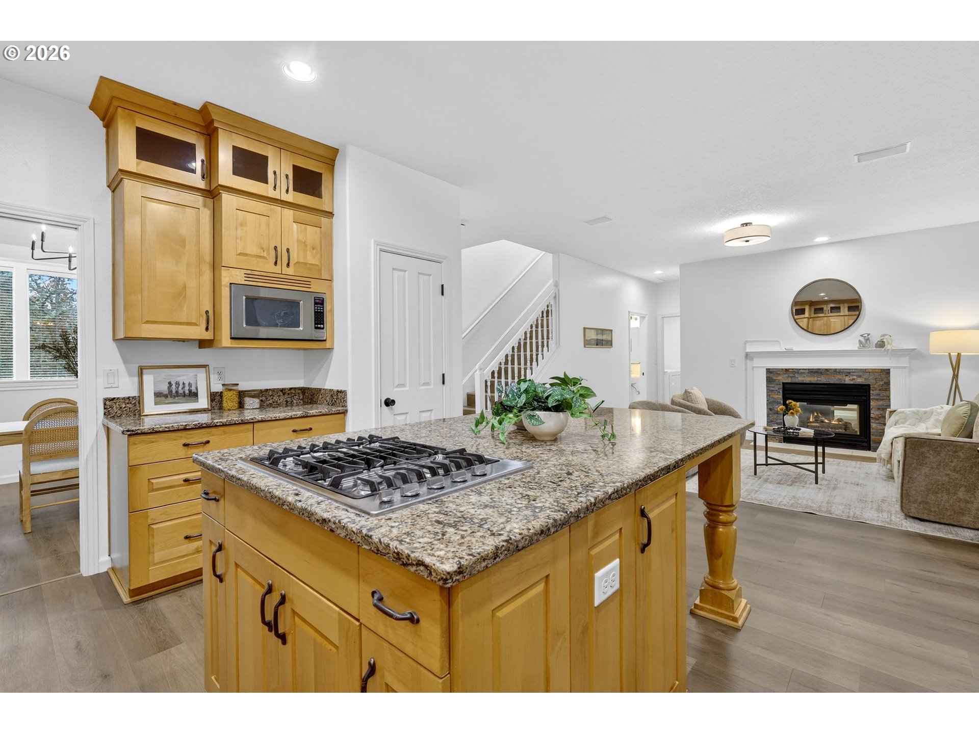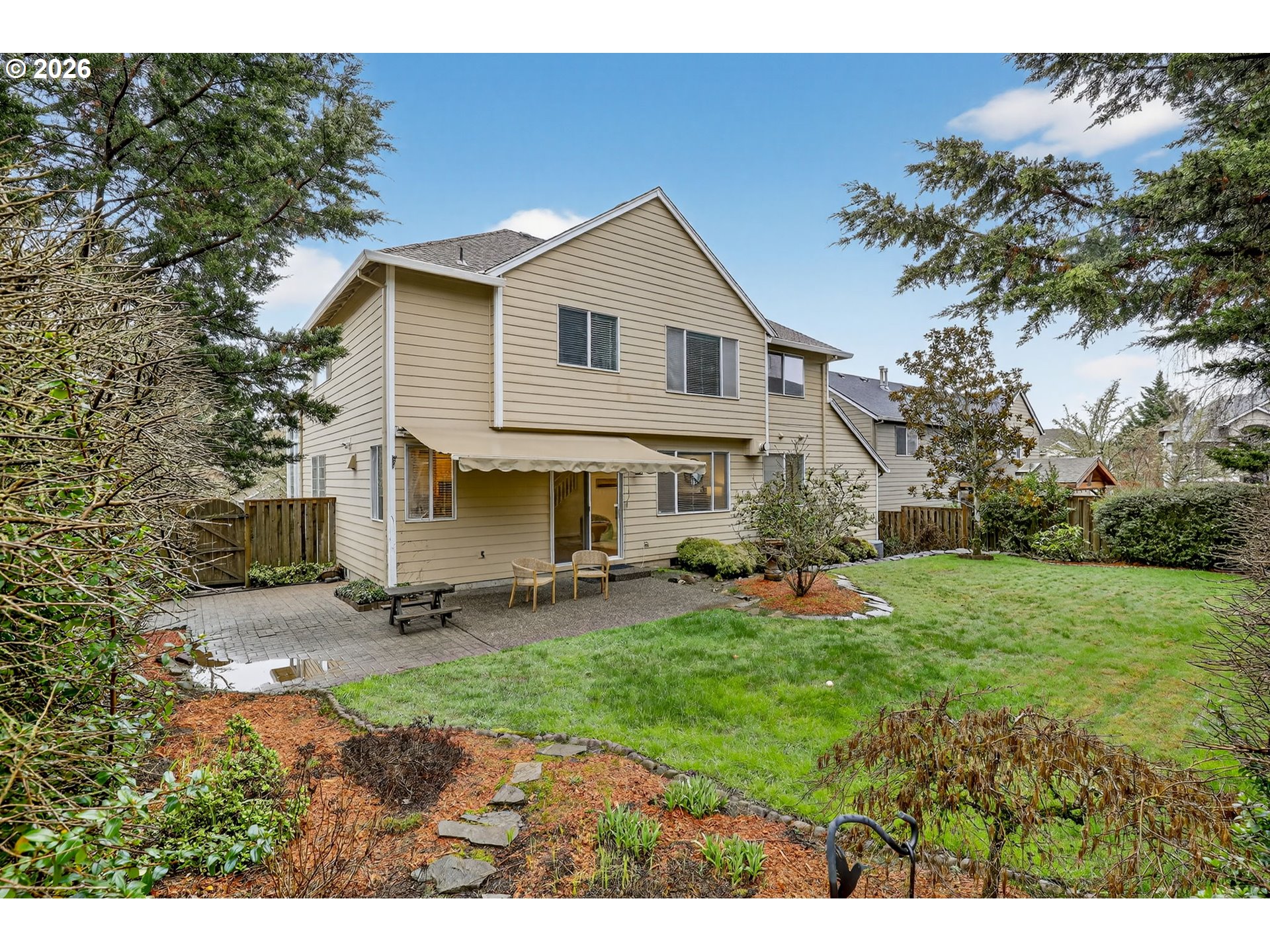 - Extensively updated throughout and truly move-in ready, this 4 bedroom + den + bonus/media room, 2.5 bath home with a 3-car garage sits on a rare corner lot in one of the area’s most sought-after locations, just minutes from Progress Ridge, Murray Scholls Town Center, top-rated schools, parks, dining, high-tech employers, and major highways. The entire interior has been freshly painted and features brand-new luxury vinyl flooring throughout, along with updated interior and exterior lighting, plumbing fixtures, and hardware for a clean, cohesive look. Soaring ceilings and expansive windows flood the formal living and dining areas with natural light, framed by architectural columns that create openness while maintaining definition. The kitchen anchors the home with floor-to-ceiling cabinetry, granite countertops, a built-in wine rack, stainless steel appliances, a large pantry, and a generous center island with seating for four, built-in gas range cooktop, and an undermount sink with gooseneck faucet overlooking the backyard. The adjoining family room offers a fireplace and sliding patio doors that open to a fully fenced,landscaped yard with a retractable patio awning, perfect for everyday living and entertaining. A private main-level den with its own fireplace provides flexibility for a home office, guest room, or multi-generational setup. Upstairs, four spacious bedrooms plus a bonus room offer room to spread out, including a secondary bedroom with a walk-in closet and a primary suite featuring its own walk-in closet, soaking tub, separate shower, dual sinks, and private water closet. The extra-deep 3-car garage includes a substantial open loft platform above the interior entry with additional usable storage below, maximizing vertical space while keeping the garage fully functional. Buyer to verify square footage. Central A/C, appliances, and a Fidelity Comprehensive Plus home warranty are included. Schedule your showing today.