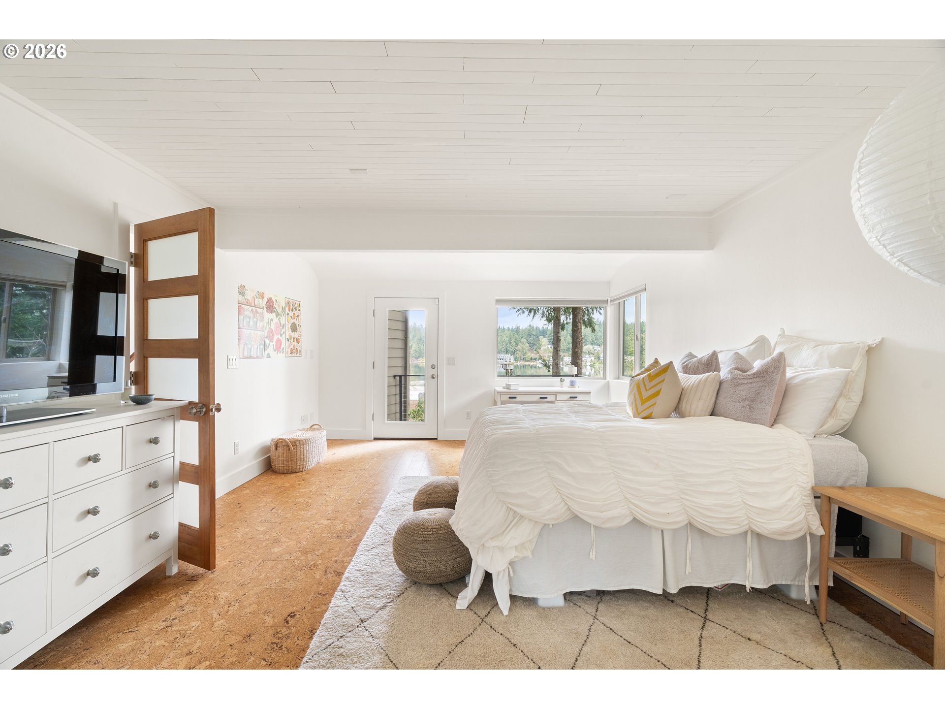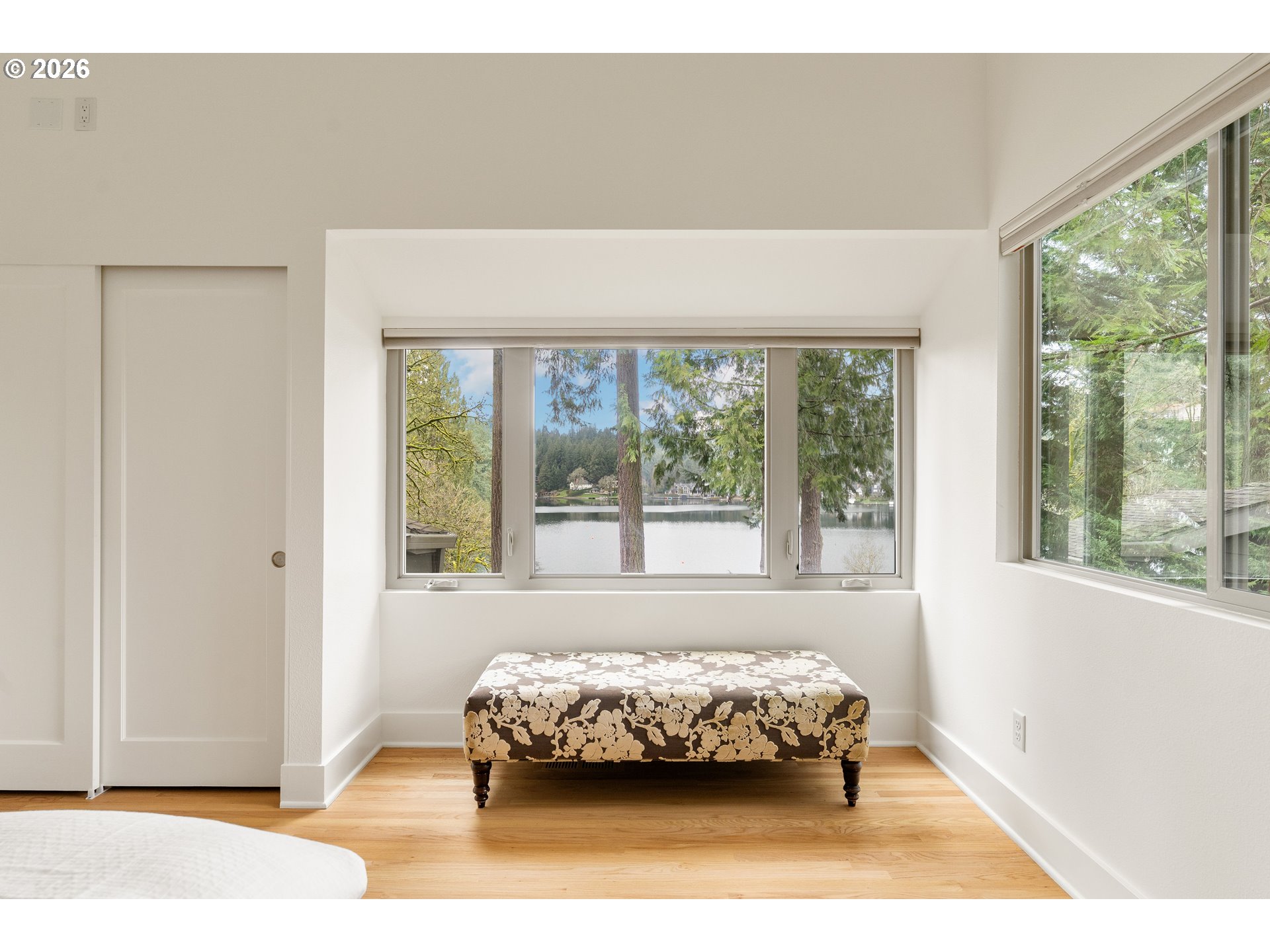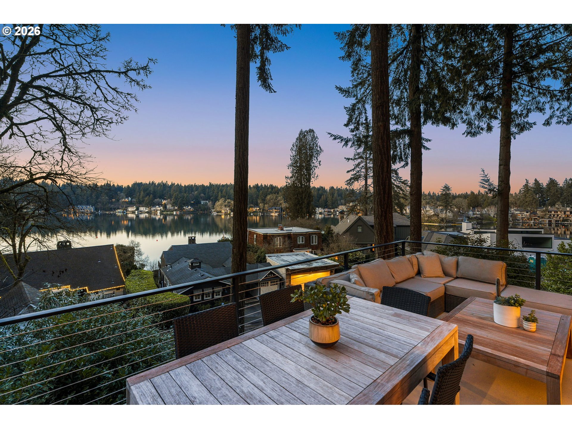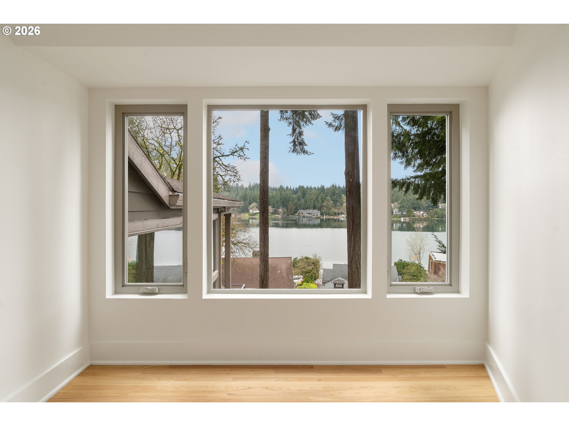 - Perched above the water in extraordinary privacy, this Lake Oswego retreat lives like a true treehouse on the lake. Surrounded by mature greenery, the home captures expansive views that impress even on cloudy days, with a sense of openness and light that consistently leaves visitors in awe. Spanning 3,314 square feet, the residence offers four bedrooms, three bathrooms, and a layout designed for both elevated entertaining and effortless daily living. Soaring ceilings and walls of windows flood the interiors with natural light, framing treetop and lake views from nearly every room. Gathering spaces flow seamlessly to a partially covered deck, ideal for summer evenings overlooking the water. Enjoy front-row views of passing boats during Hot August Nights, pop-up concerts, and the festive rhythm of lake life. It’s a home perfectly suited for hosting, yet equally peaceful for quiet mornings above the shoreline. Two dedicated offices provide flexibility for work-from-home living or creative space. Fresh interior paint and newly installed white oak hardwood floors on the upper level offer a crisp, move-in-ready finish just in time for summer. A two-car garage with carport includes EV charging capability, adding modern convenience to this serene lakeside setting. Walk to downtown Lake Oswego and George Rogers Park for dining, shopping, trails, and community events. Schools and grocery stores are just minutes away for added convenience. With deeded lake easement access just steps away and a setting that feels both secluded and connected, this is lake living at its most refined and rare.