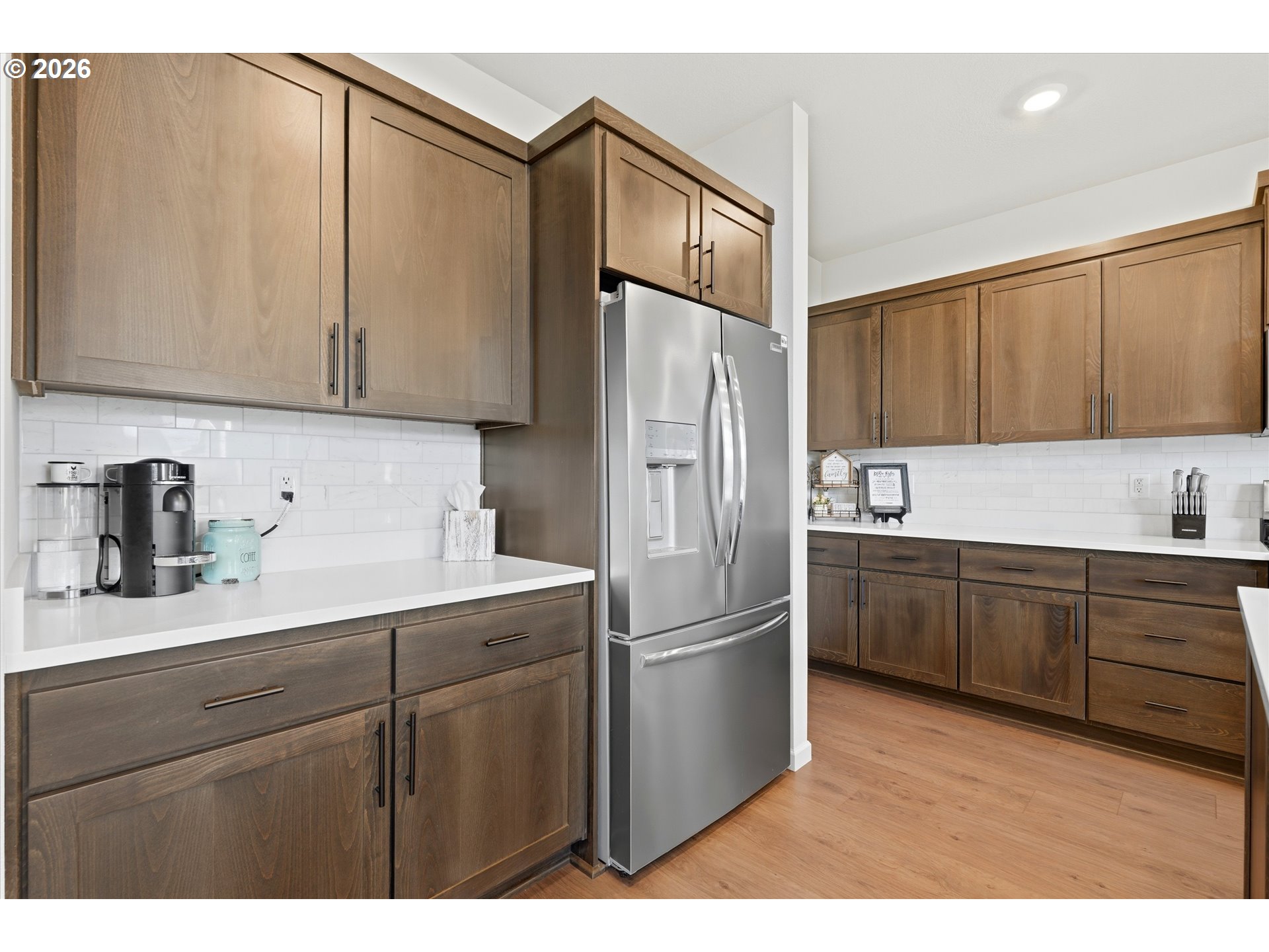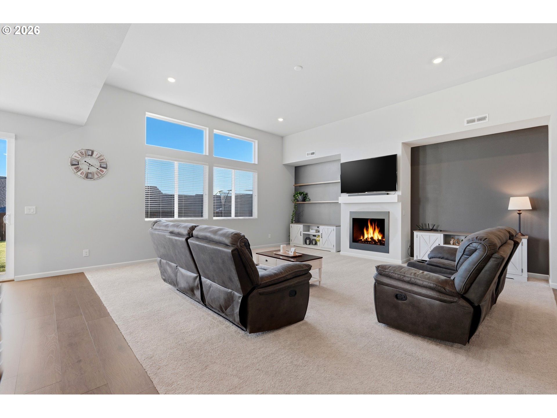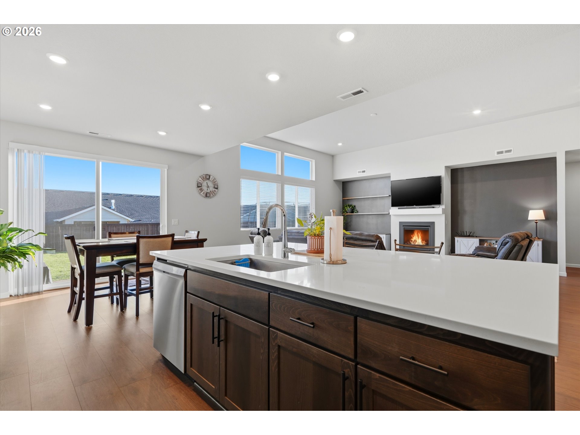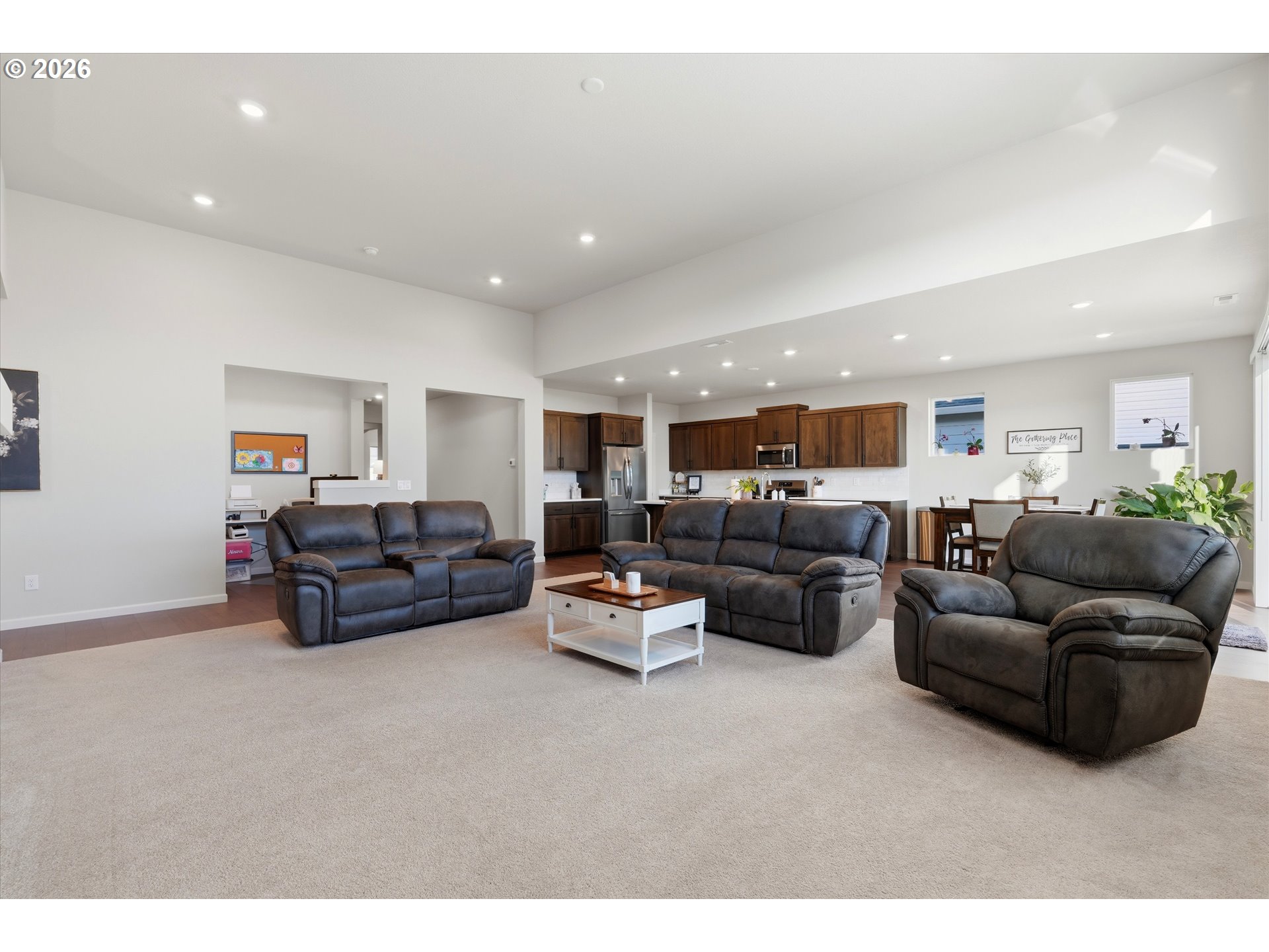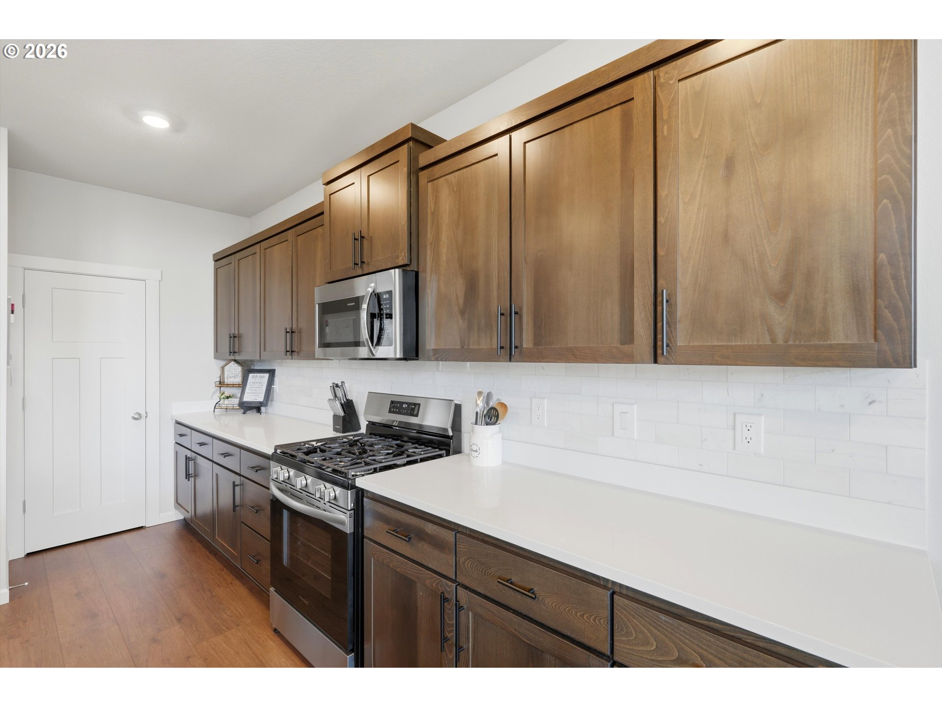 - Welcome to this beautifully designed 2023-built home in North Plains, offering the perfect blend of modern comfort, functionality, and style. Located in the highly desirable Brynhill community, this home is just moments from the elementary school, library, and numerous parks—making it an ideal setting for both convenience and everyday living. This single-level Deschutes floor plan features approximately 2,398 square feet of thoughtfully designed living space, with 3 bedrooms and 2.5 bathrooms. The open-concept layout seamlessly connects the kitchen, dining, and great room—creating an ideal space for both everyday living and entertaining. At the heart of the home, the oversized kitchen island with quartz countertops provides the perfect gathering space, complemented by abundant cabinetry and a clean, modern design. The great room is filled with natural light and enhanced by soaring 12-foot ceilings, giving the home a bright and spacious feel. The private primary suite offers a relaxing retreat, complete with a spa-like bathroom, quartz countertops, and a generous walk-in closet. Two additional bedrooms provide flexibility for guests, family, or a home office, while a dedicated office nook adds the perfect space for remote work, homework, or organization. Step outside to enjoy a large lot with an expansive backyard—perfect for entertaining, gardening, or simply unwinding. The 3-car garage adds convenience and extra storage, making this home as practical as it is beautiful.? Built in 2023, 3 bedrooms | 2.5 bathrooms, Approx. 2,398 sq ft, 3-car garage, Large lot + spacious backyard, Office nook / flex workspace, Open-concept living with 12’ ceilings. Located in a growing and vibrant community, this home offers the perfect balance of peaceful living with easy access to nearby amenities. This is a home that truly combines space, style, and comfort—ready for its next chapter.
