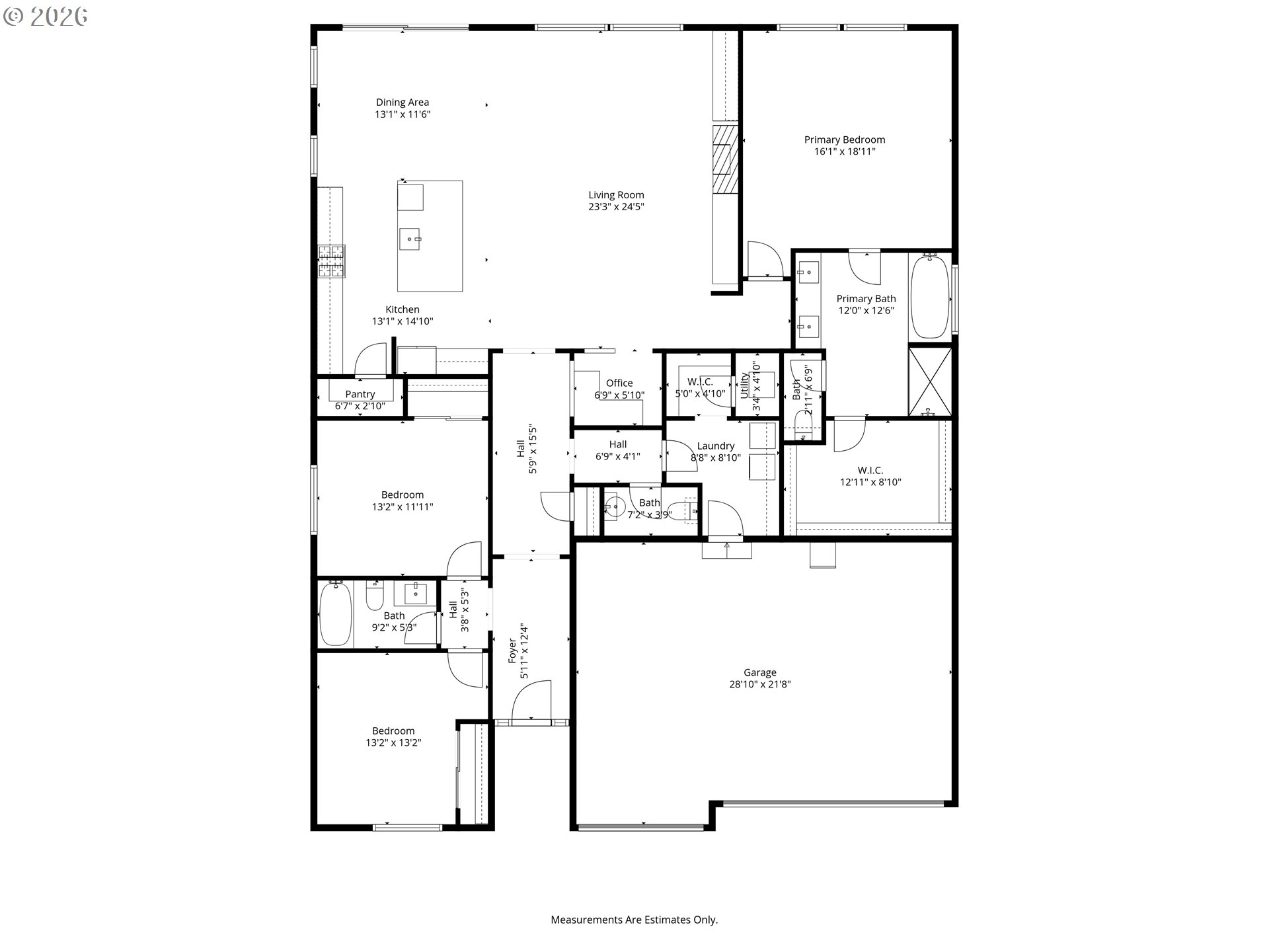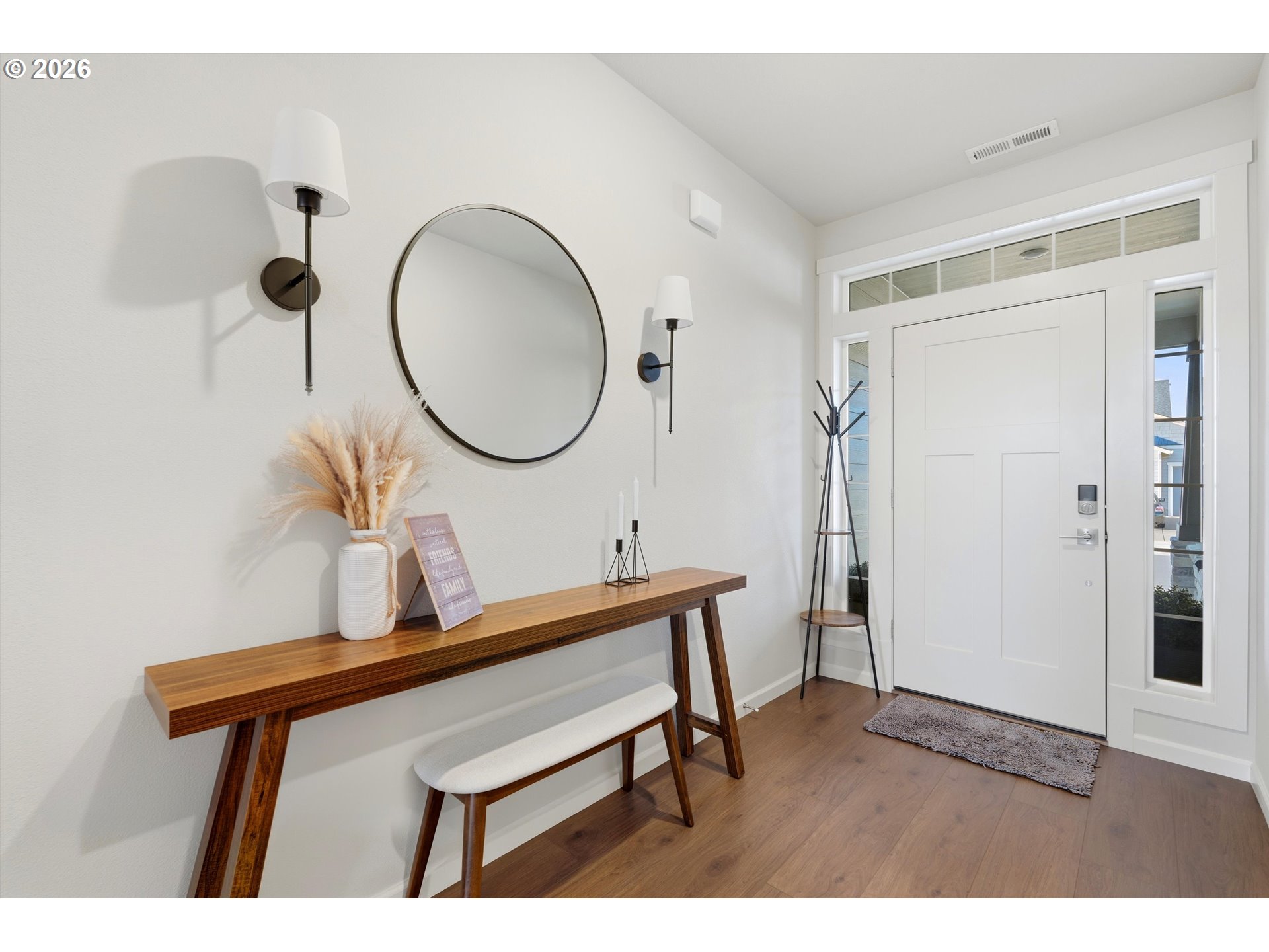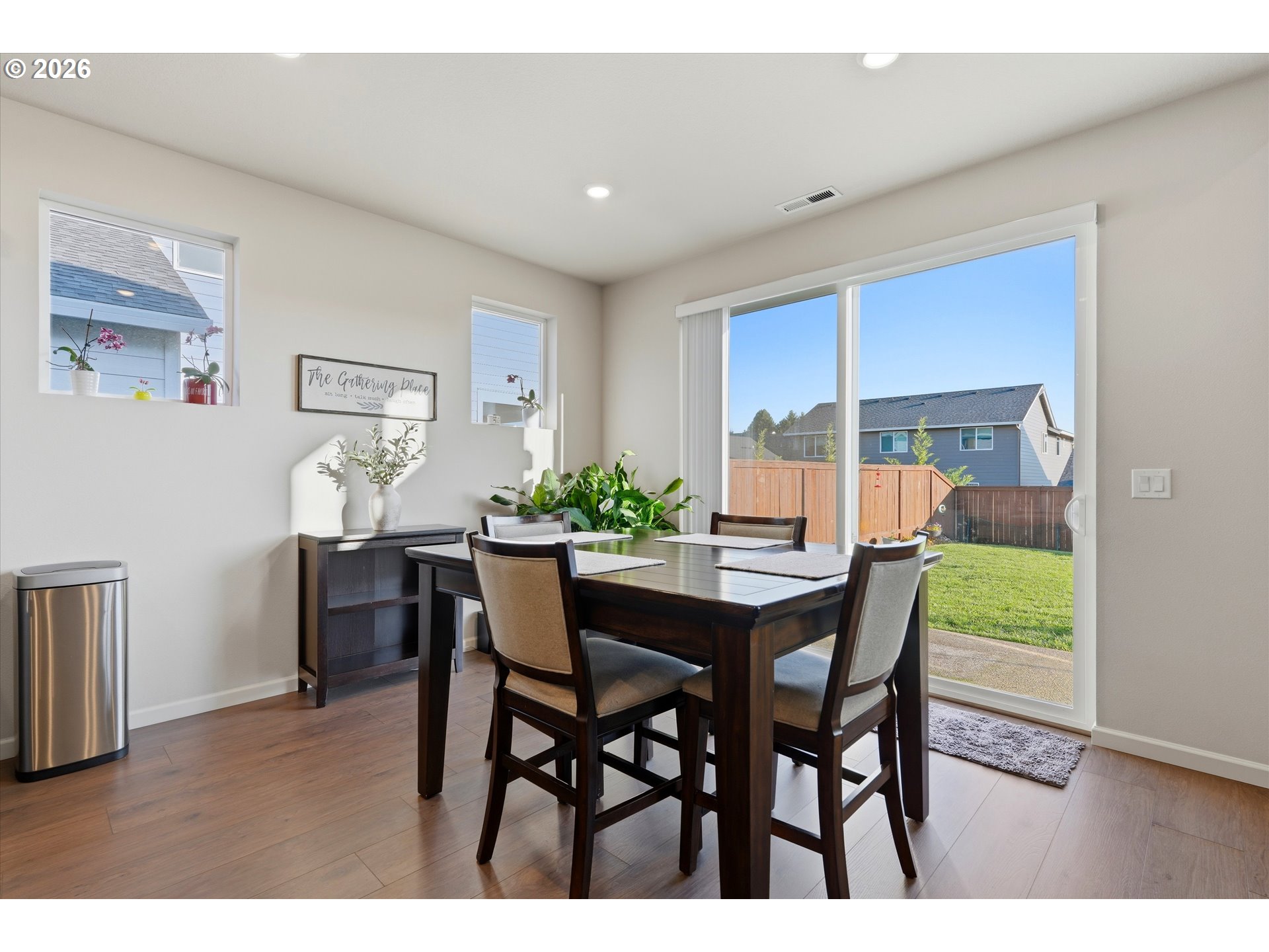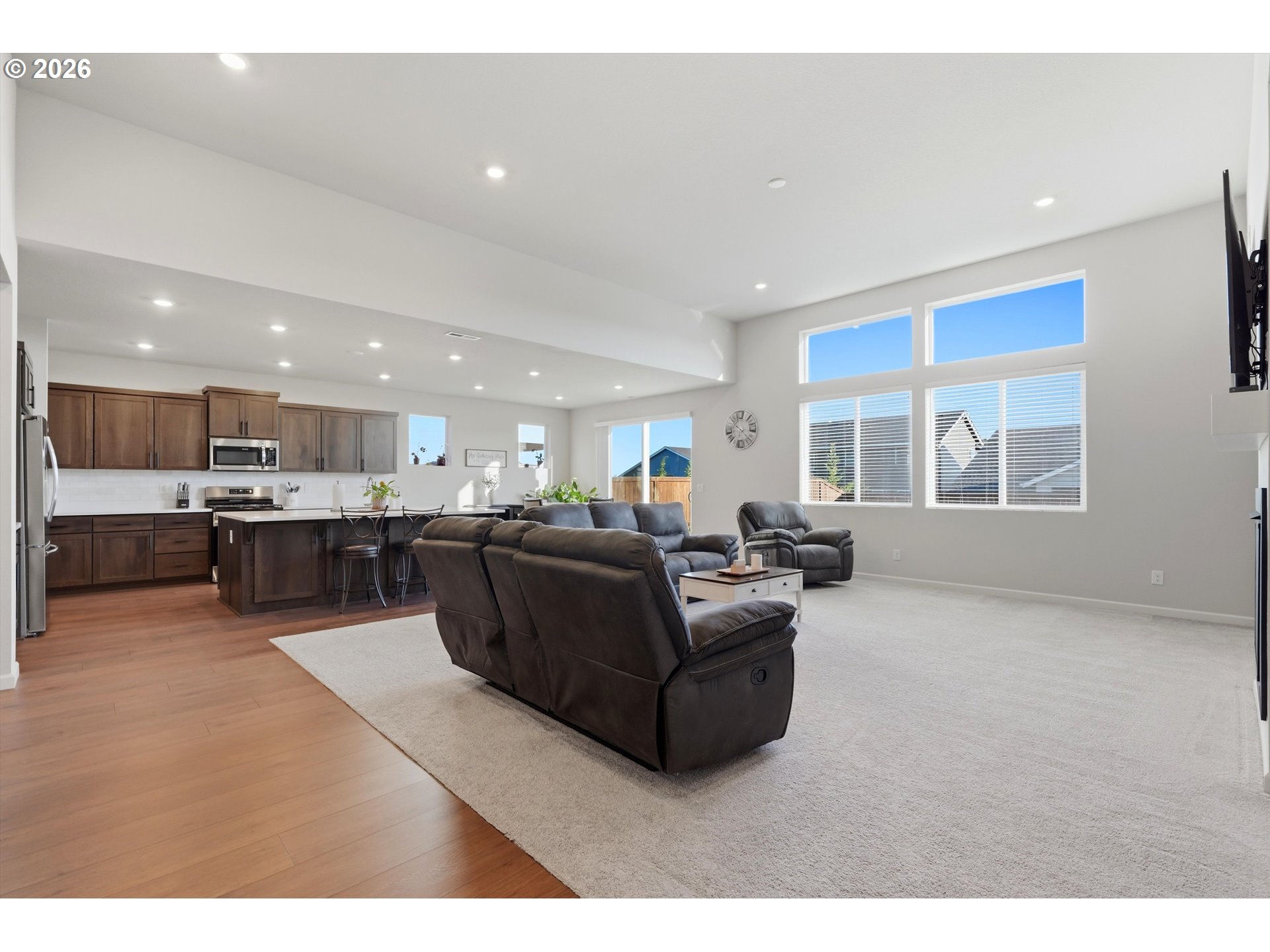 - Welcome to this beautifully designed 2023-built home in North Plains, offering the perfect blend of modern comfort, functionality, and style. Located in the highly desirable Brynhill community, this home is just moments from the elementary school, library, and numerous parks—making it an ideal setting for both convenience and everyday living. This single-level Deschutes floor plan features approximately 2,398 square feet of thoughtfully designed living space, with 3 bedrooms and 2.5 bathrooms. The open-concept layout seamlessly connects the kitchen, dining, and great room—creating an ideal space for both everyday living and entertaining. At the heart of the home, the oversized kitchen island with quartz countertops provides the perfect gathering space, complemented by abundant cabinetry and a clean, modern design. The great room is filled with natural light and enhanced by soaring 12-foot ceilings, giving the home a bright and spacious feel. The private primary suite offers a relaxing retreat, complete with a spa-like bathroom, quartz countertops, and a generous walk-in closet. Two additional bedrooms provide flexibility for guests, family, or a home office, while a dedicated office nook adds the perfect space for remote work, homework, or organization. Step outside to enjoy a large lot with an expansive backyard—perfect for entertaining, gardening, or simply unwinding. The 3-car garage adds convenience and extra storage, making this home as practical as it is beautiful.? Built in 2023, 3 bedrooms | 2.5 bathrooms, Approx. 2,398 sq ft, 3-car garage, Large lot + spacious backyard, Office nook / flex workspace, Open-concept living with 12’ ceilings. Located in a growing and vibrant community, this home offers the perfect balance of peaceful living with easy access to nearby amenities. This is a home that truly combines space, style, and comfort—ready for its next chapter.