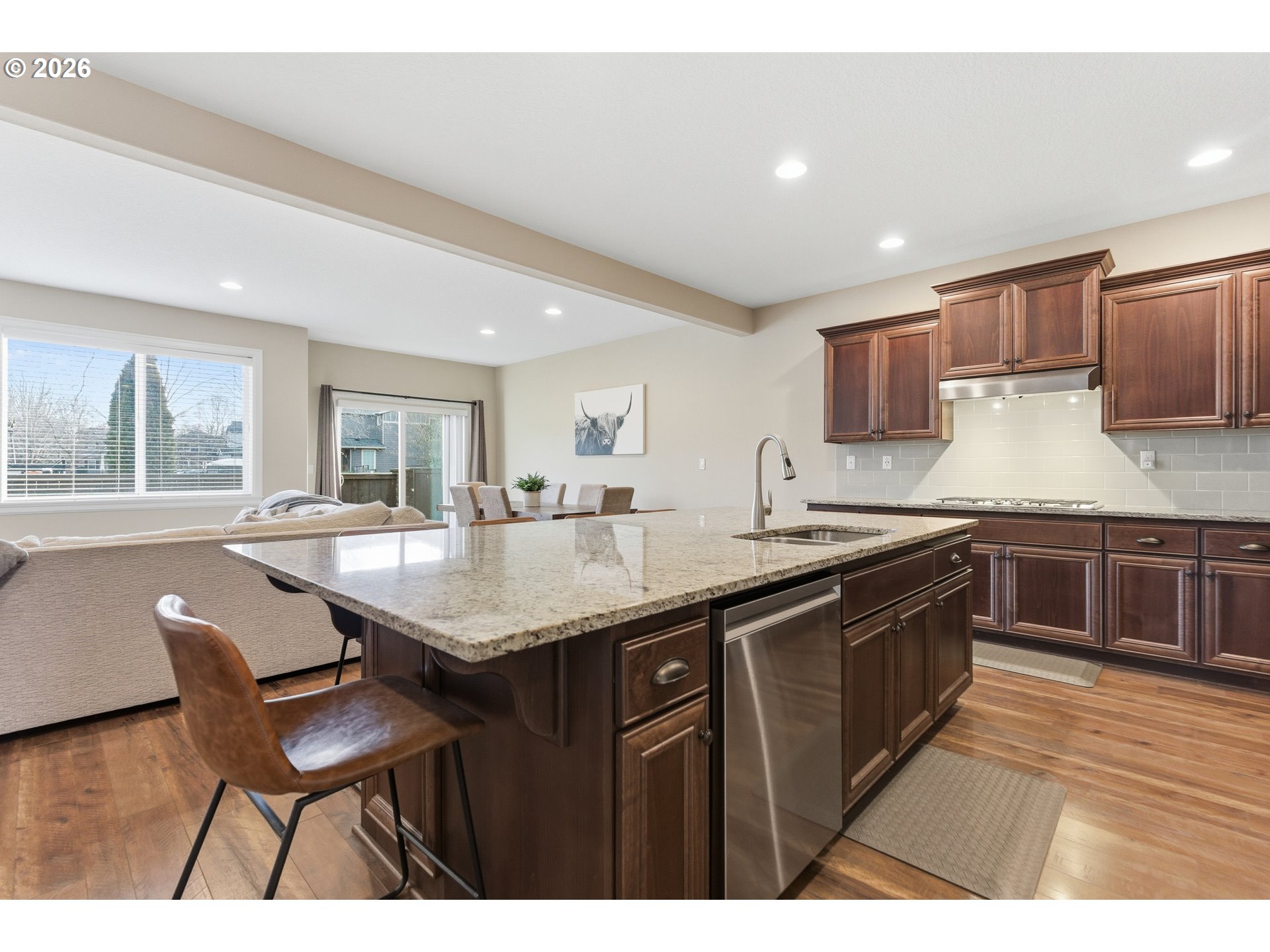 - Move-in ready and thoughtfully designed, this home offers an open and spacious layout ideal for everyday living and entertaining. The heart of the home is the oversized eat-in kitchen island, complemented by granite countertops, stainless steel appliances, a large pantry, and abundant counter space and cabinetry for exceptional storage. The living area is anchored by a gas fireplace, creating a warm and inviting atmosphere. The primary suite provides a comfortable retreat with a soaking tub, walk-in shower, and an expansive walk-in closet featuring added storage. Two additional bedrooms are conveniently located near a full bath and dedicated laundry area. A third-floor bonus space offers flexibility for a home office, media room, or guest space. Additional highlights include air conditioning, garage storage, and a fully fenced backyard—perfect for relaxing or entertaining outdoors. A well-balanced blend of space, function, and comfort throughout. [Home Energy Score = 8. HES Report at https://rpt.greenbuildingregistry.com/hes/OR10243649]