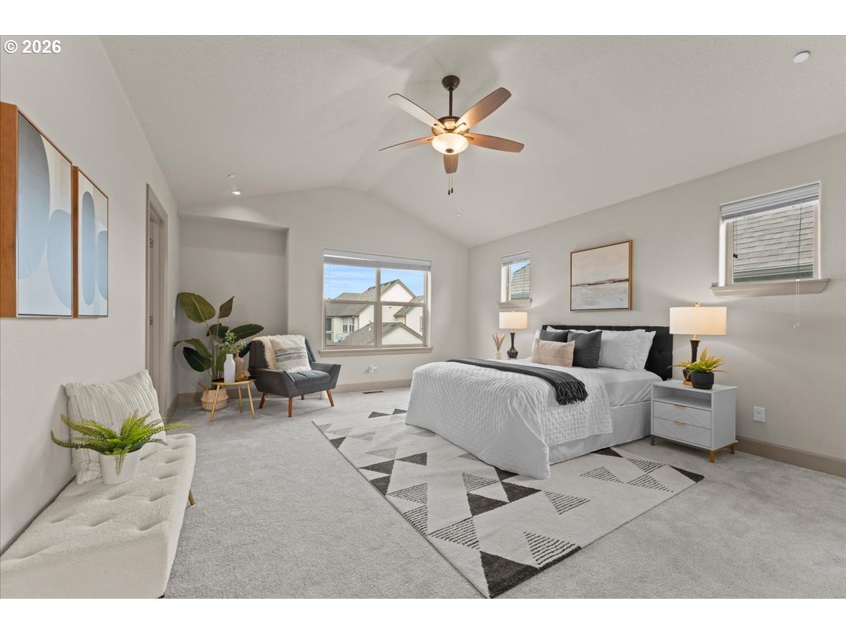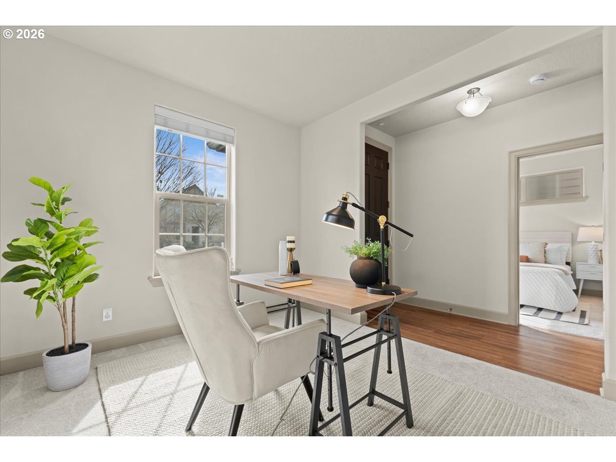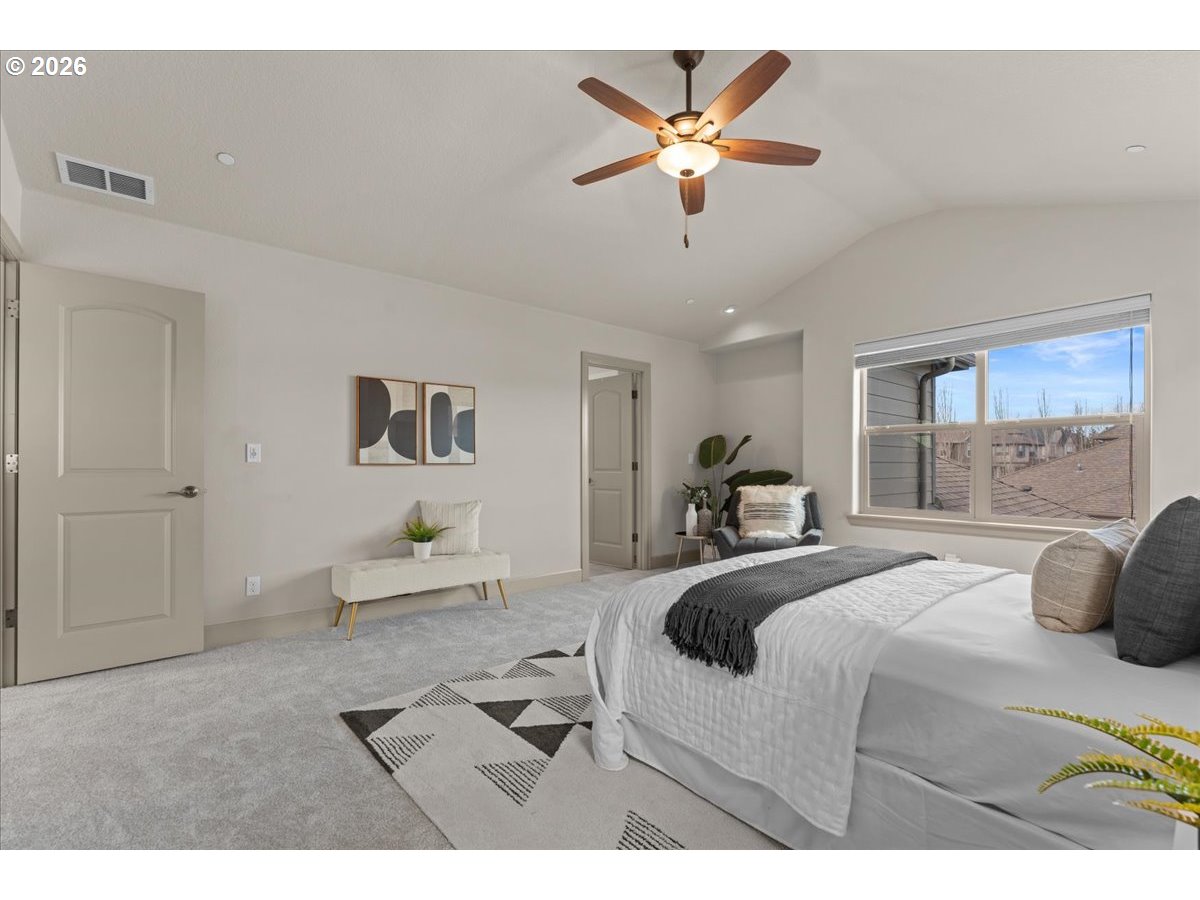 - MAIN LEVEL BEDROOM W/ ATTACHED FULL BATHROOM! NEW CARPET (2026)! Located in Villebois, this 2015 Legend Home offers a highly versatile and functional floor plan including 4 bedrooms, 3 bathrooms, and main floor flex room perfect for a home office, den or play room. The open-concept main floor seamlessly connects the kitchen, dining, and living areas, anchored by a cozy gas fireplace. The main-level bedroom with an attached full bath provides ideal flexibility for guests, multigenerational living, or a private office. Upstairs, the spacious primary suite features vaulted ceilings, a well-appointed en suite bath with soaking tub, separate shower, linen closet and a generous walk-in closet. Two more bedrooms and a conveniently located laundry room complete the upper floor. On clear, sunny days, enjoy views of Mount Hood from one of the upstairs bedrooms.Designed with modern convenience in mind, the kitchen features soft close drawers and hinges, a touch activated faucet, expansive counter space, and a full size pantry. Ideally situated just steps from Lowrie Primary School with easy access to neighborhood parks and scenic walking paths, this home combines comfort, flexibility, and an exceptional Villebois location.